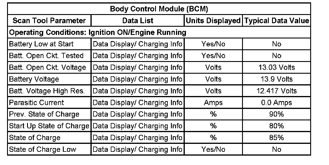 Scan Tool Data List