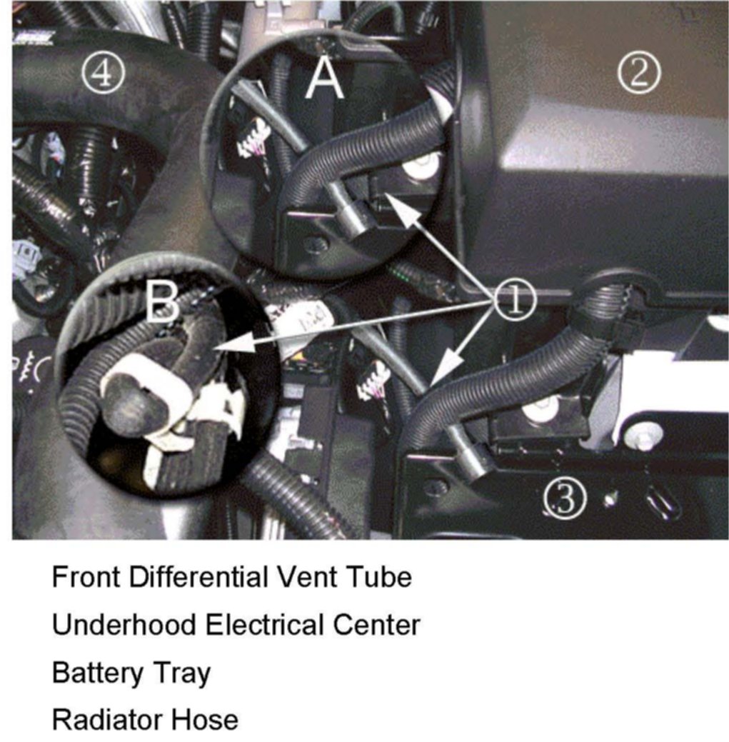 If the front differential vent tube is kinked or folded over and taped (1B), remove the tape from the wiring bundle and then unfold the vent tube to ensure proper vent tube operation. Proceed to step 4.