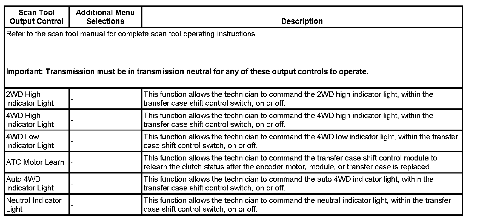 Scan Tool Output Controls:
