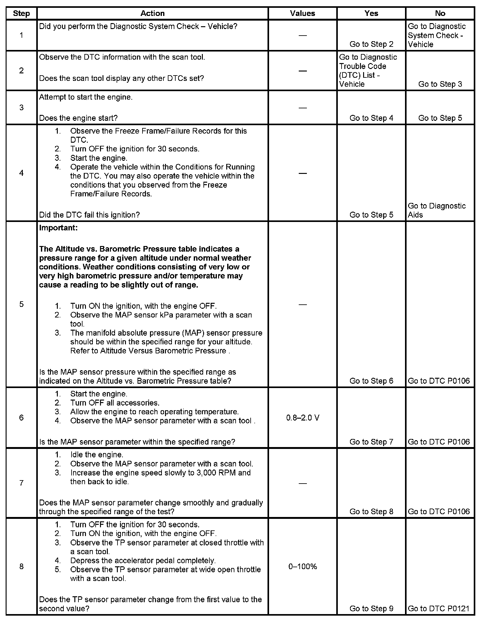 5. This step will determine if the MAP sensor pressure is within the proper range for a given altitude.