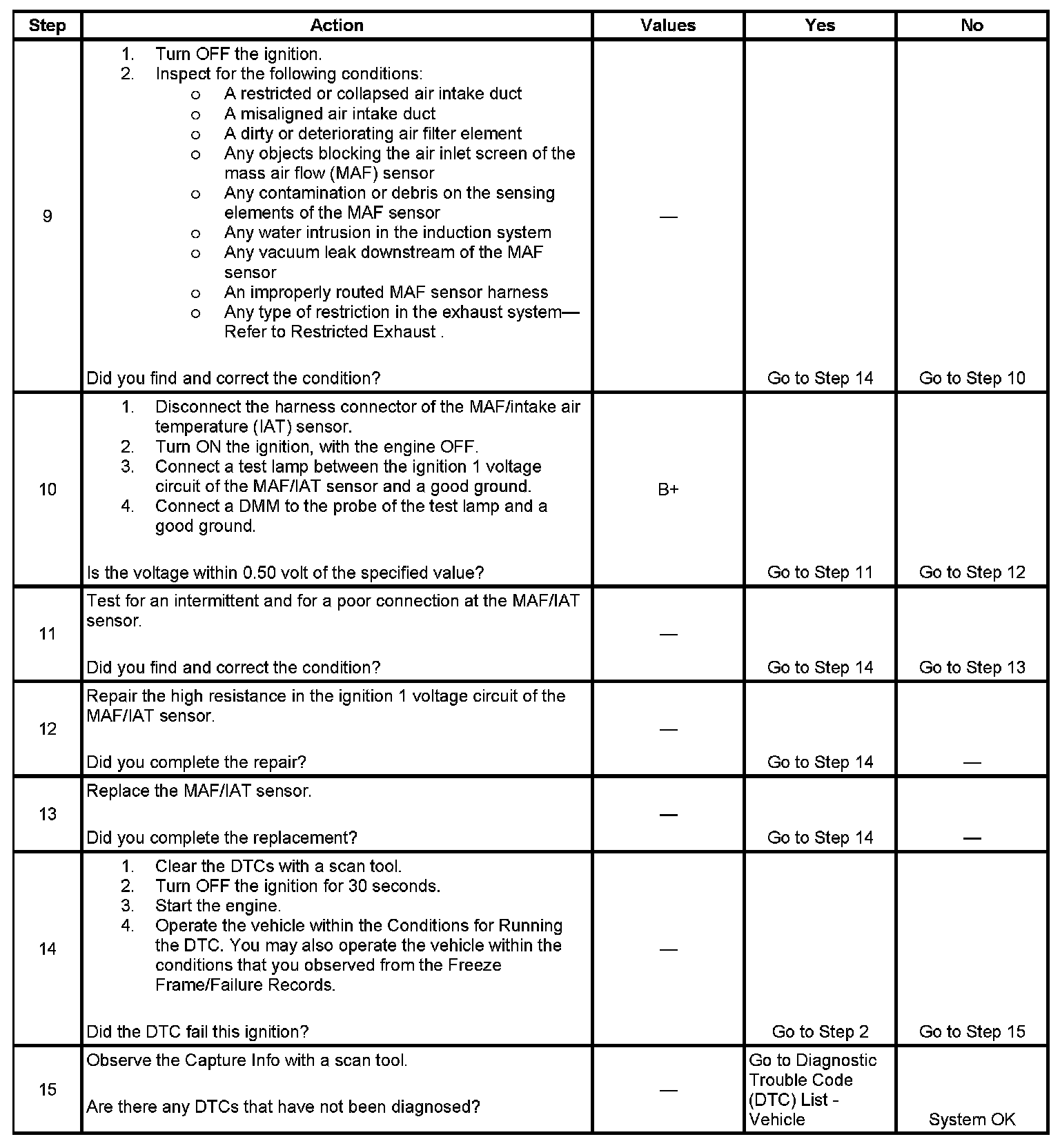 9. This step will determine if any mechanical faults have caused this DTC to set.