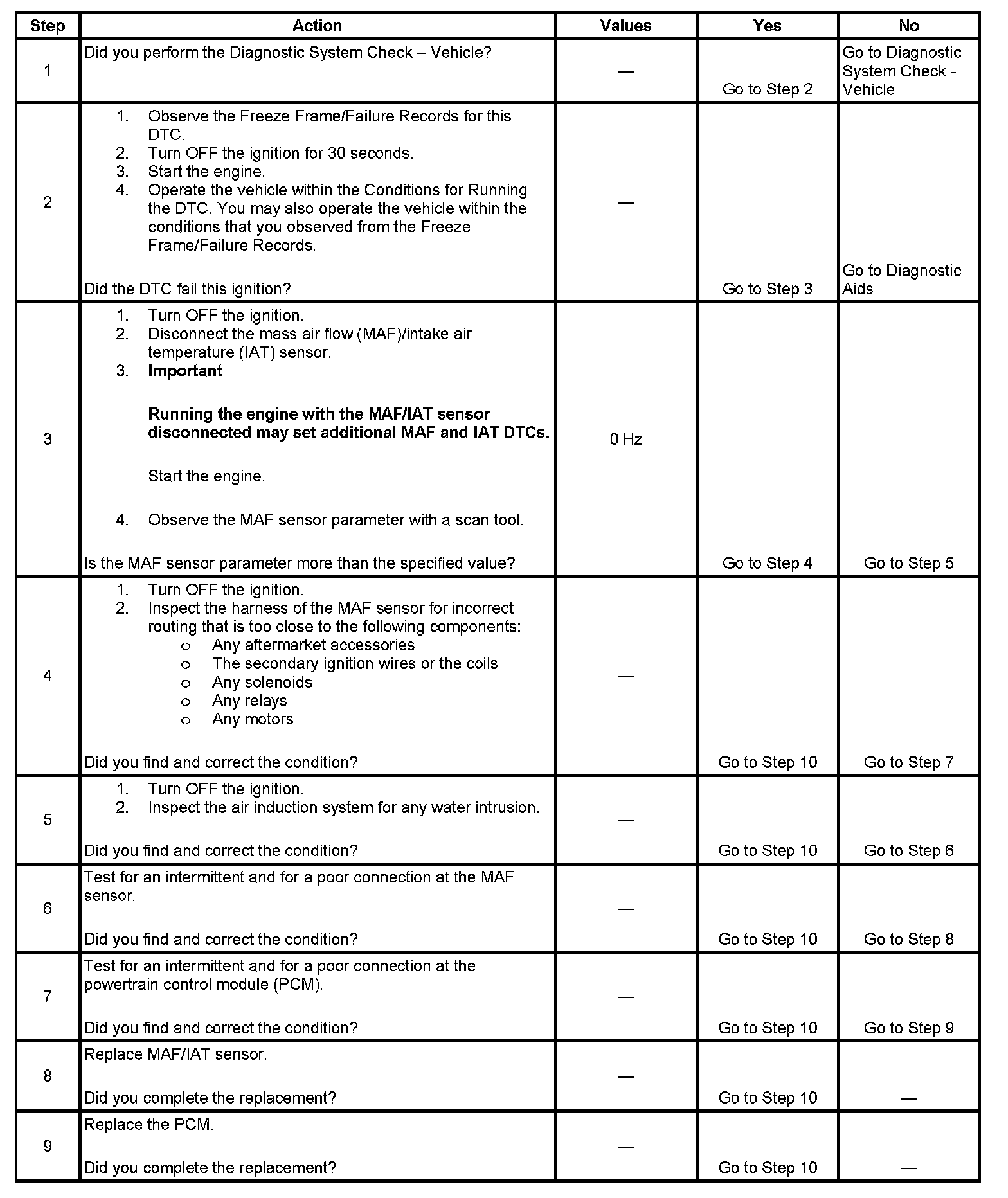 - Inspect the air induction system for any water intrusion. The water rapidly cools the hot sensing elements in the sensor, causing a false indication of excessive air flow. Any water that reaches the MAF sensor will skew the sensor, and may cause this DTC to set.