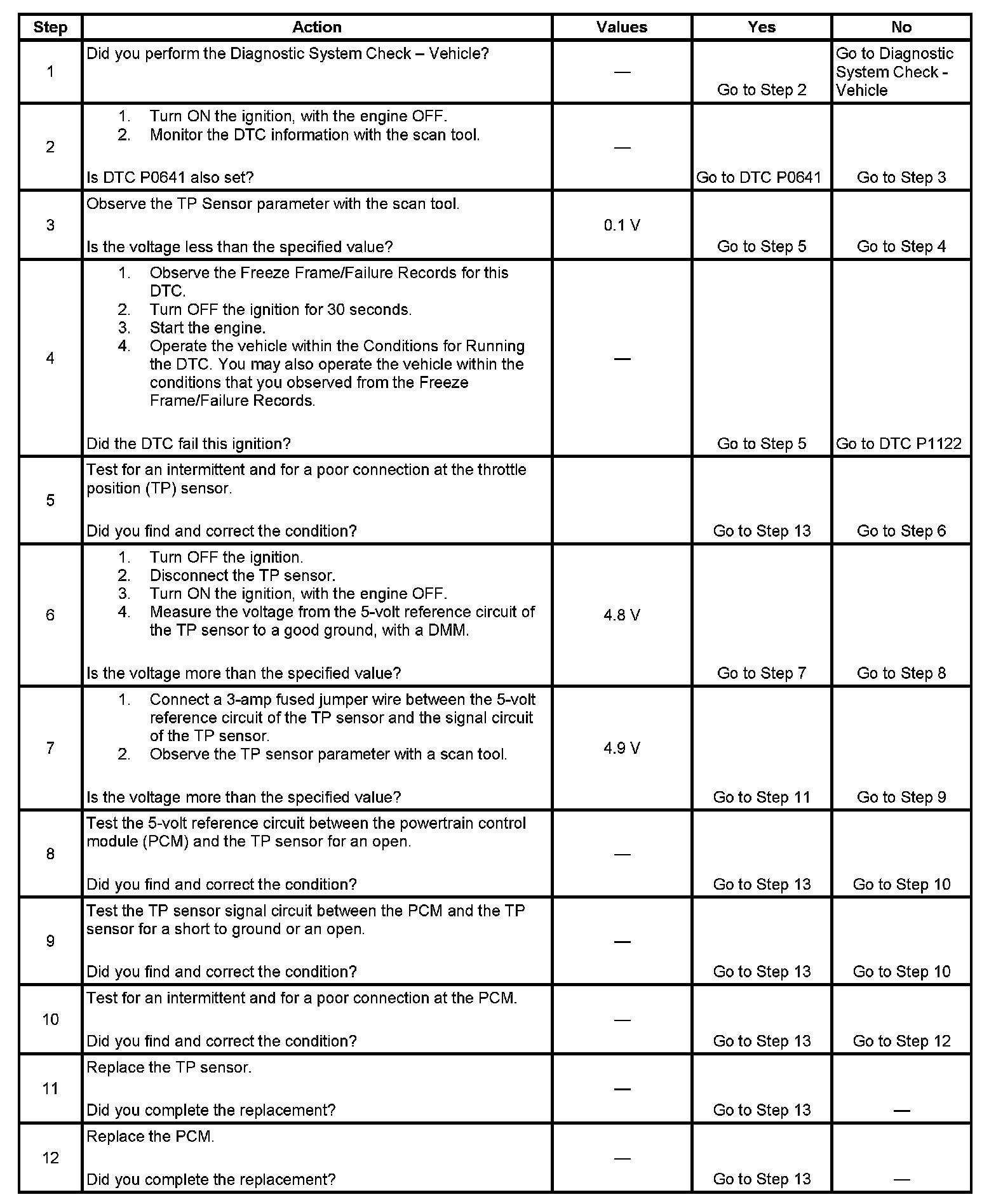 DTC P0122 Throttle Position (TP) Sensor Circuit Low Voltage