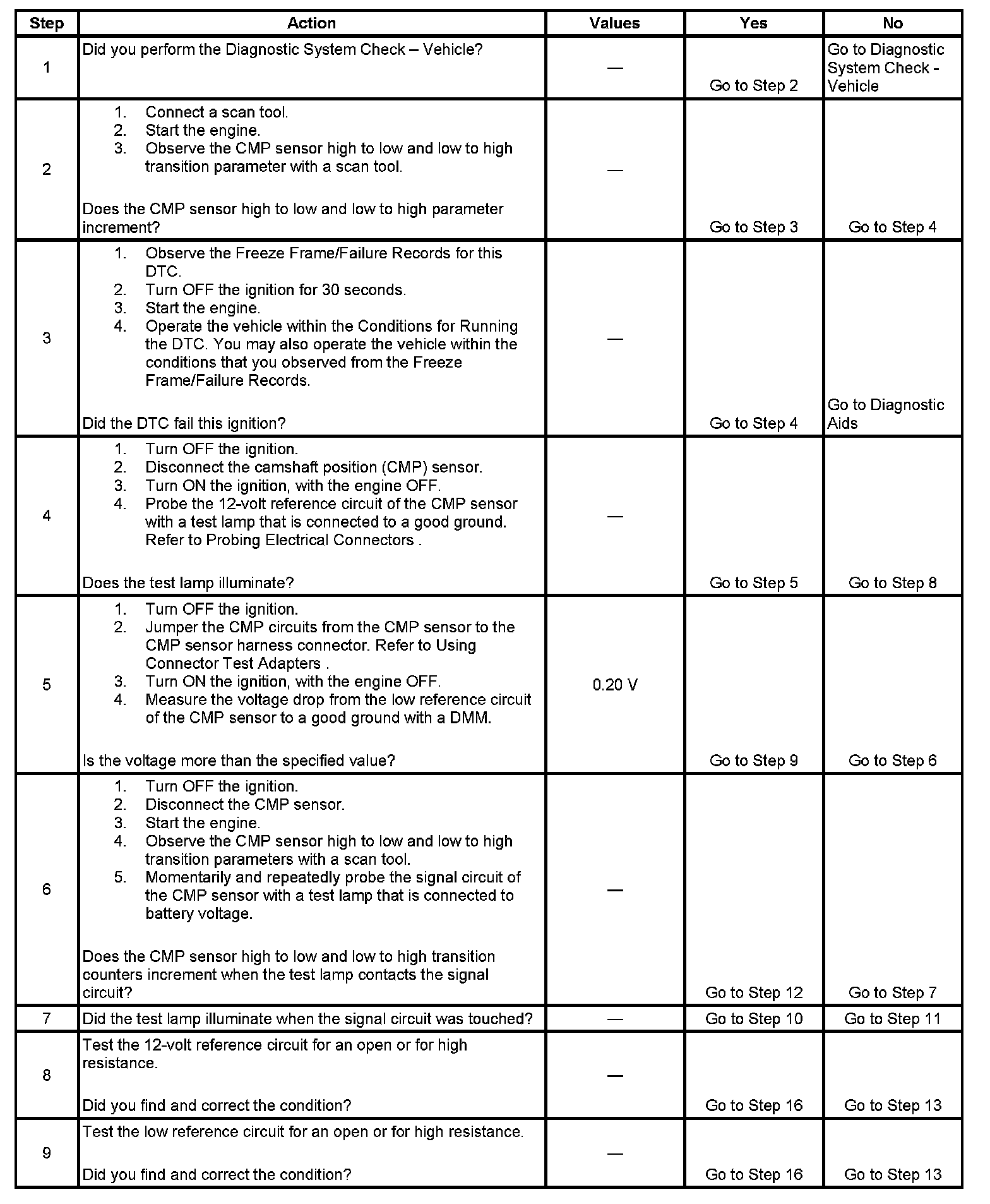 The CMP sensor reference pulse is not detected once every 2 crankshaft revolutions.