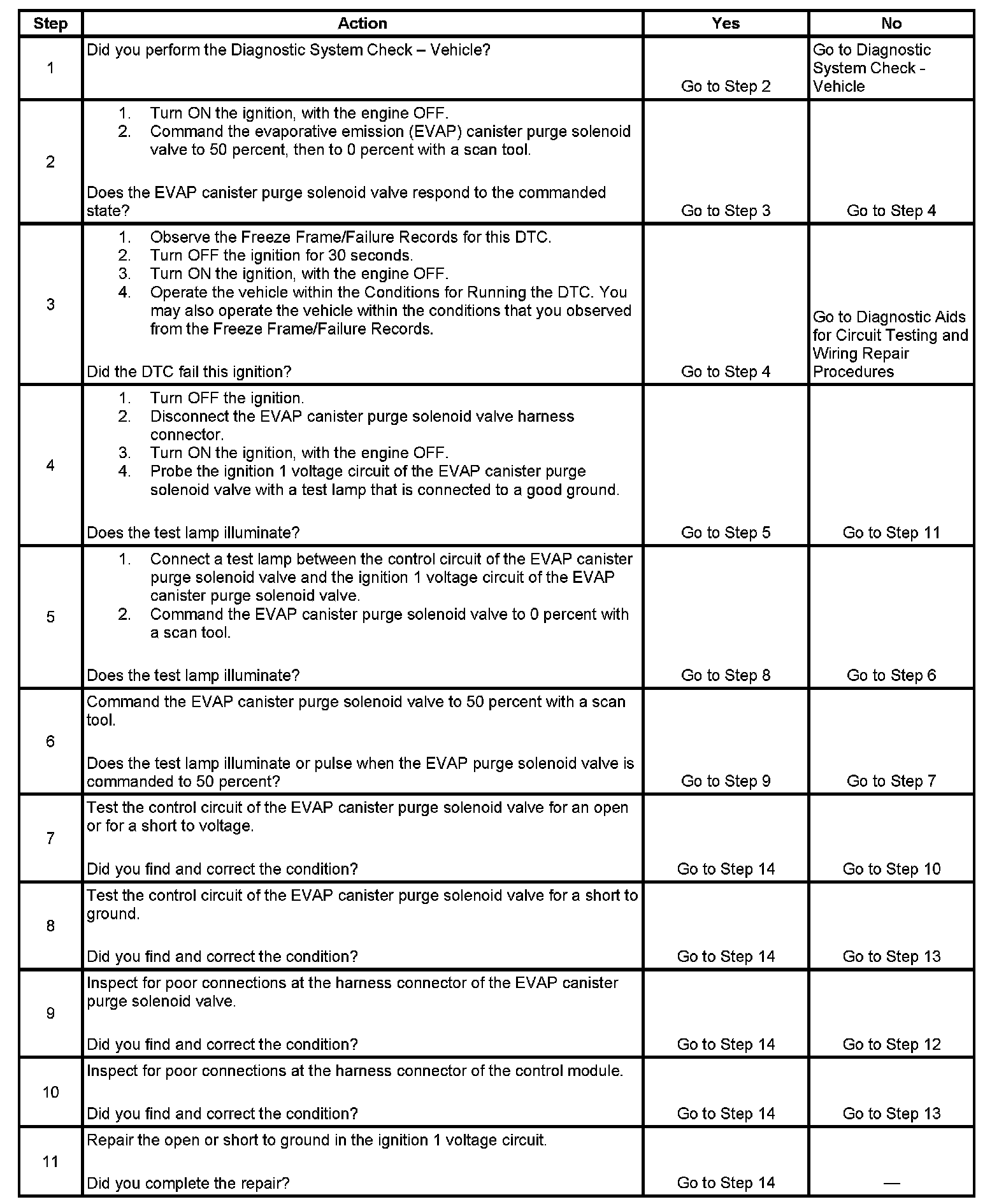 6. This step tests if a ground is constantly being applied to the EVAP canister purge solenoid valve.