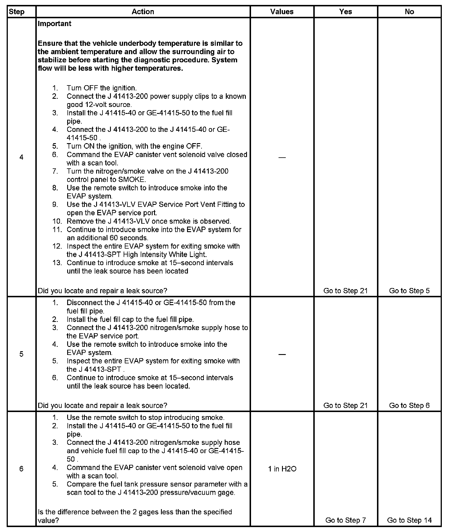 - To help locate intermittent leaks, use the J 41413-200 Evaporative Emissions System Tester (EEST) to introduce smoke into the EVAP system. Move all EVAP components while observing smoke with the J 41413-SPT High Intensity White Light. Introducing smoke in 15-second intervals will allow less pressure into the EVAP system. When the system is less pressurized, the smoke will sometimes escape in a more condensed manner.