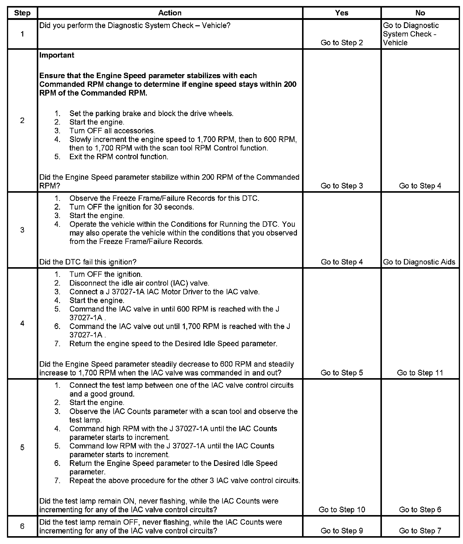 5. This test will determine the ability of the PCM and IAC valve control circuits to control the IAC valve.