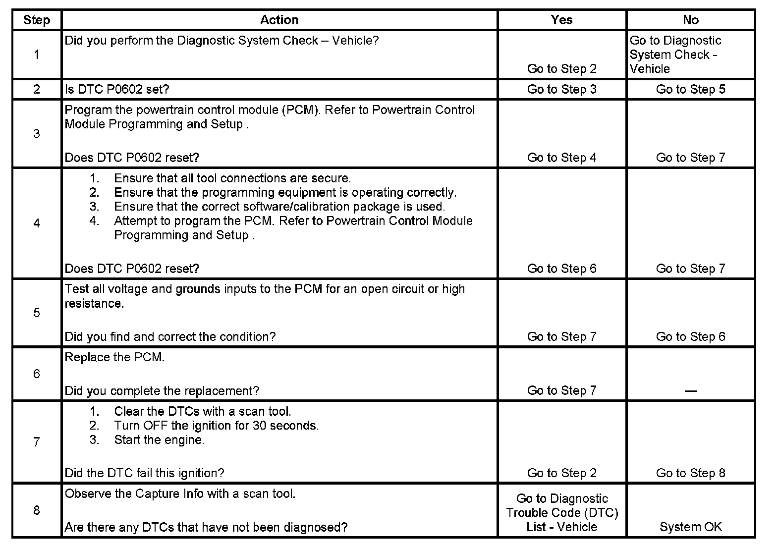2. A DTC P0602 indicates the PCM is not programmed.