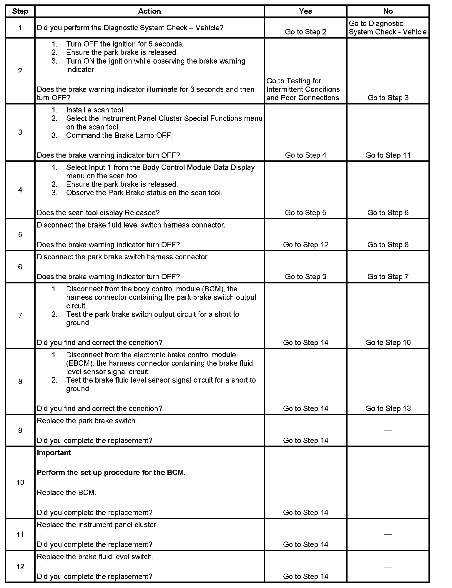 Brake Warning Indicator Always On