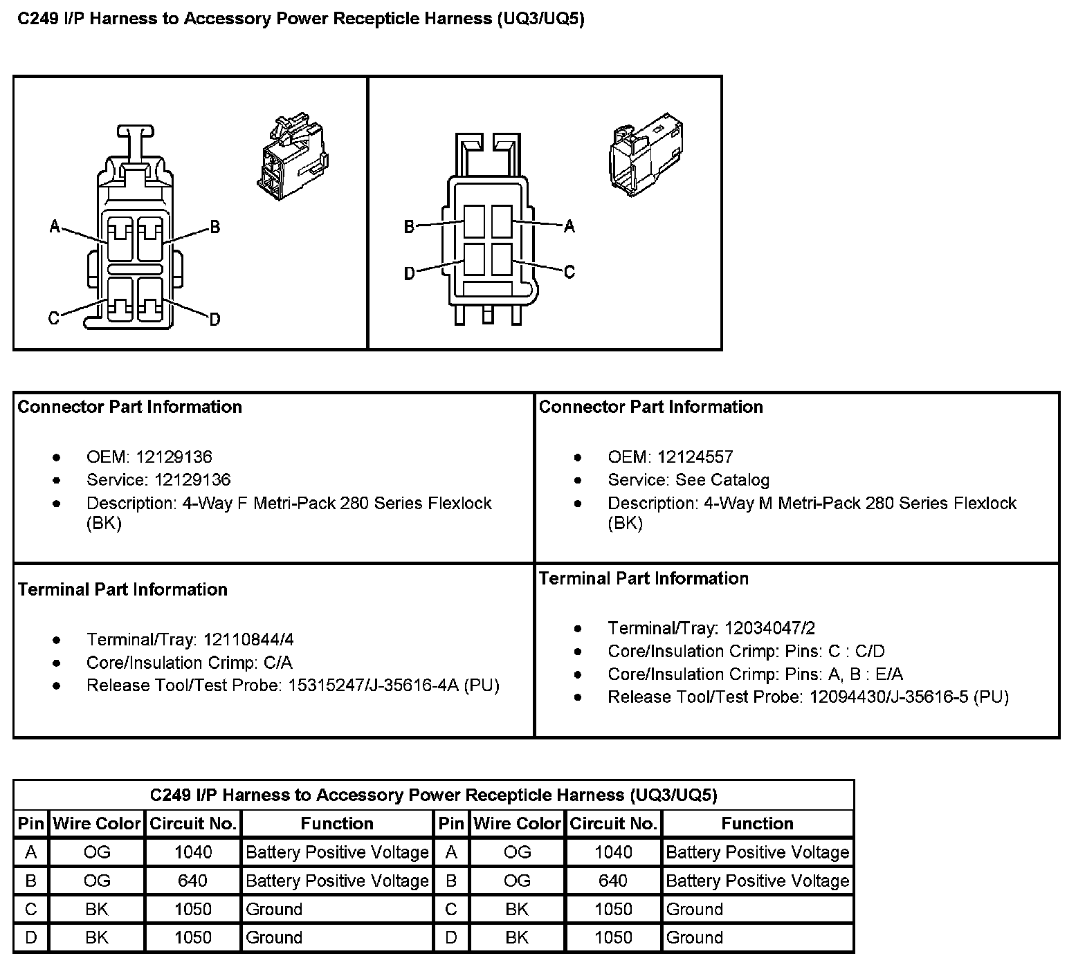 C249 I/P Harness To Accessory Power Recepticle Harness (with RPO Code UQ3/UQ5):
