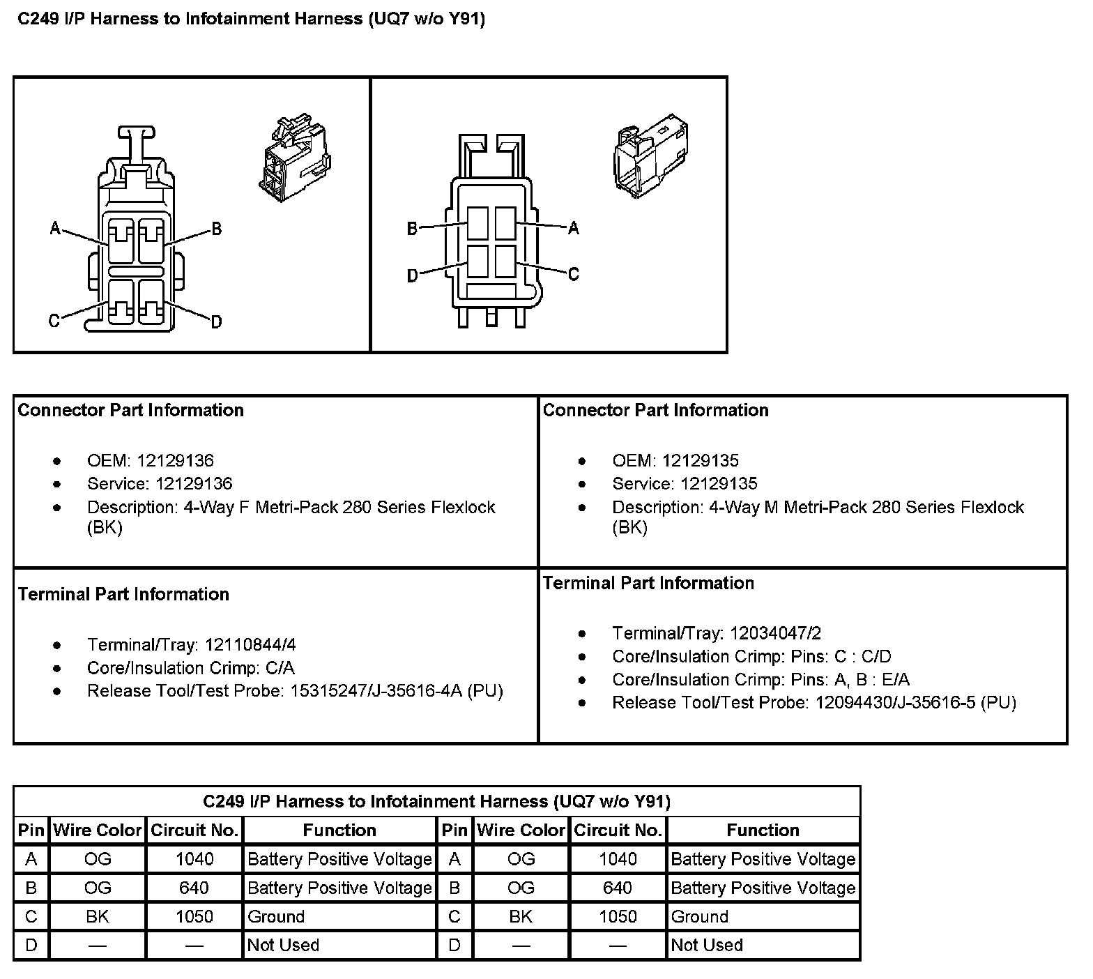 C249 I/P Harness To Infotainment Harness (With RPO Code UQ7 Without RPO Code Y91):