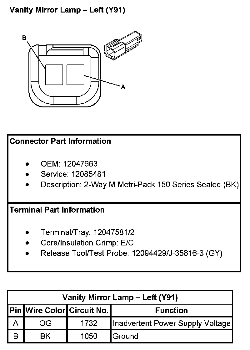 Vanity Mirror Lamp - Left (With RPO Code Y91):