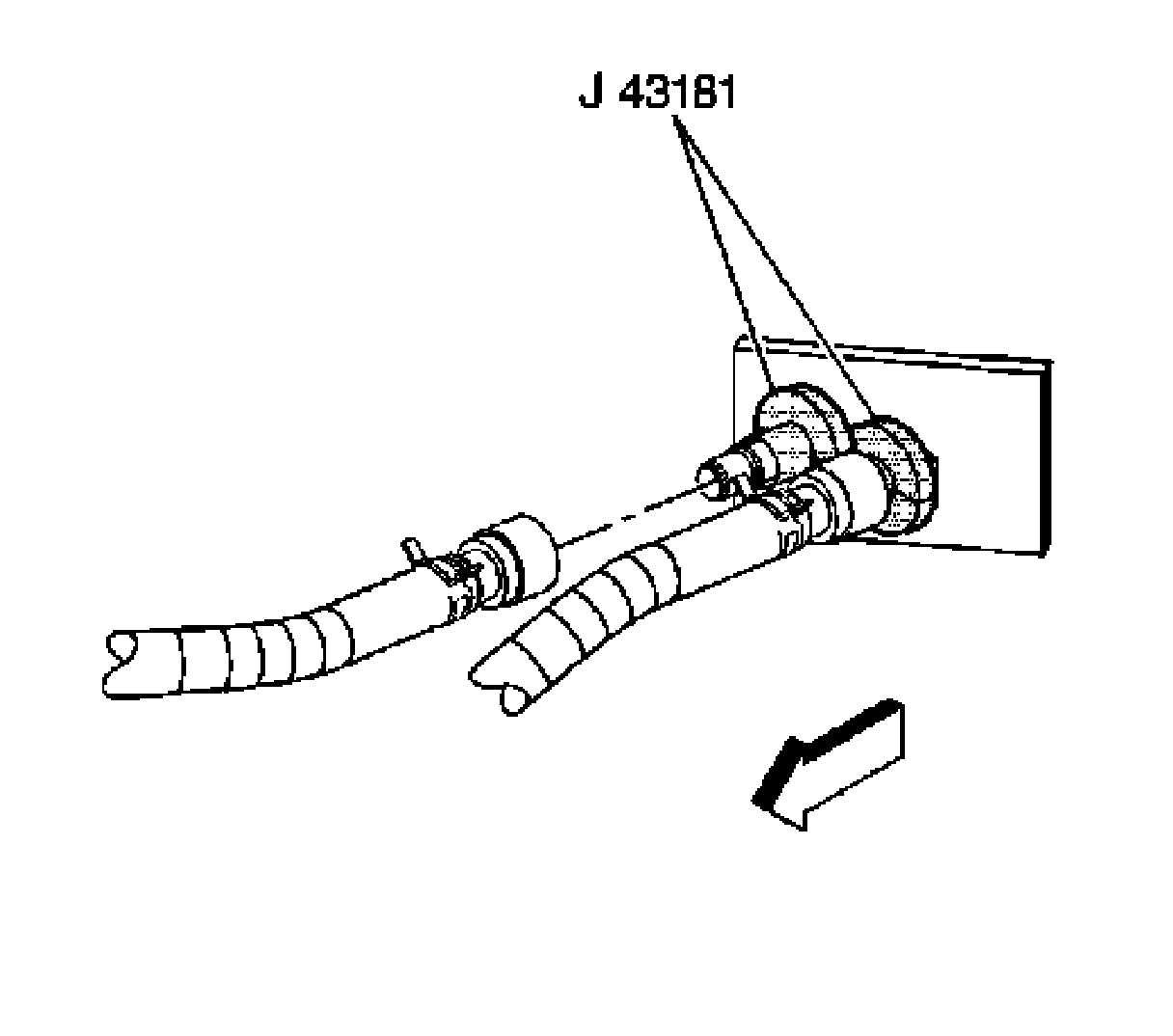 4. Using the J 43181 disconnect the surge tank outlet hose from the heater core.