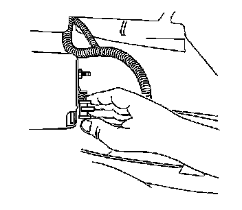 5. Reach under the rear lower edge of the front fascia in order to access the fog lamp vertical adjustment screw on the rear of the fog lamp.