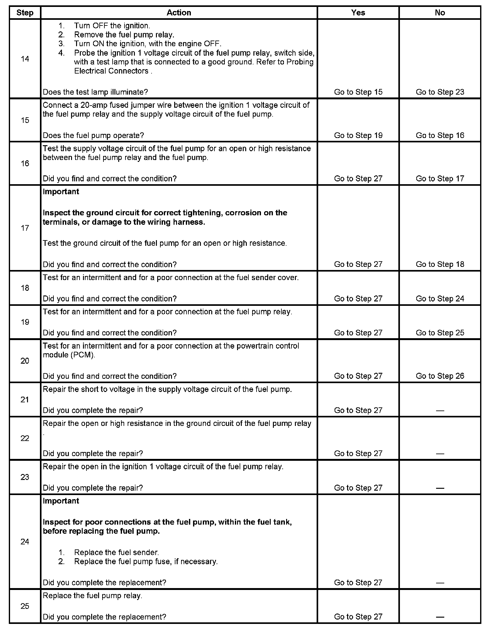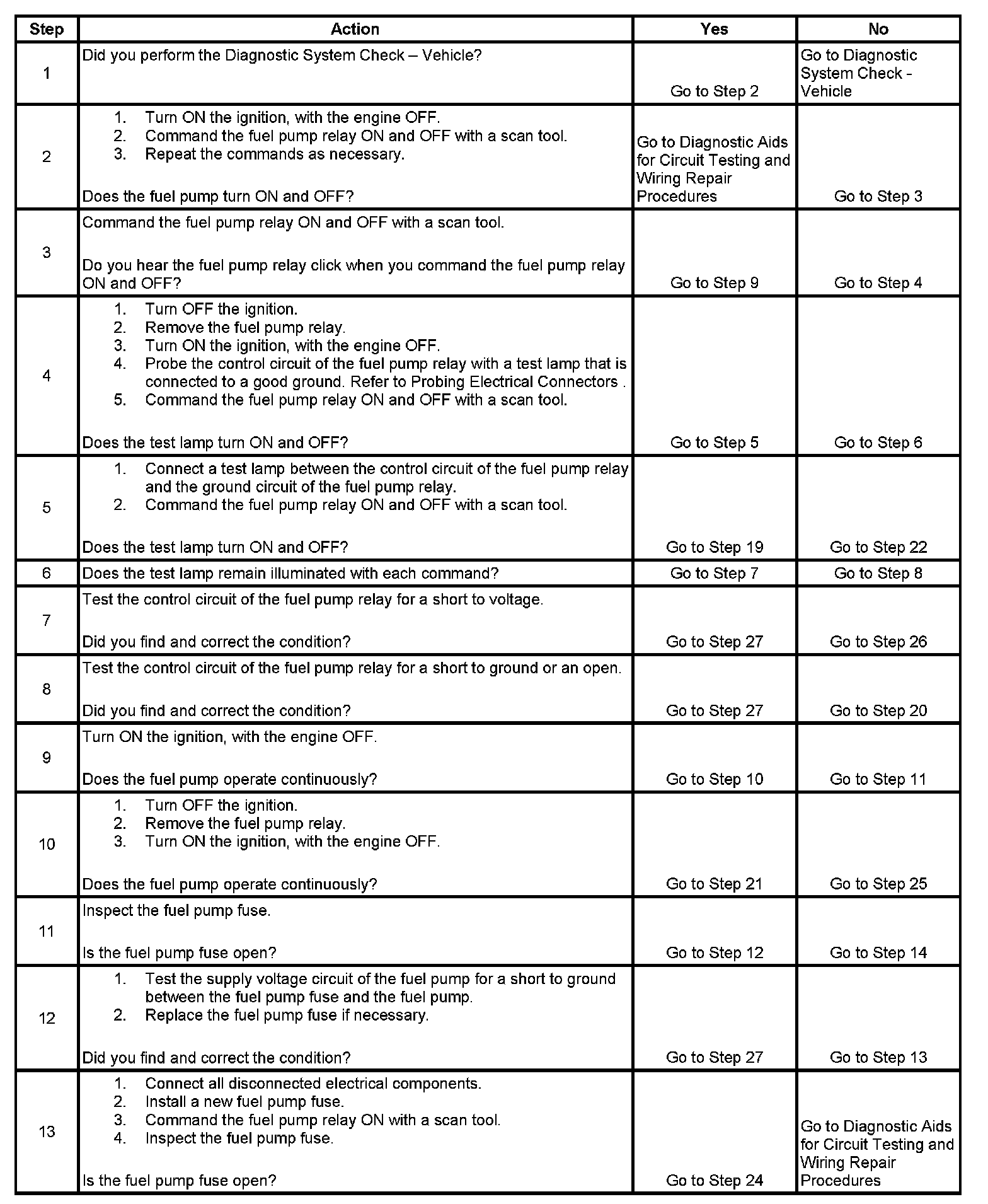 Fuel Pump Electrical Circuit Diagnosis
