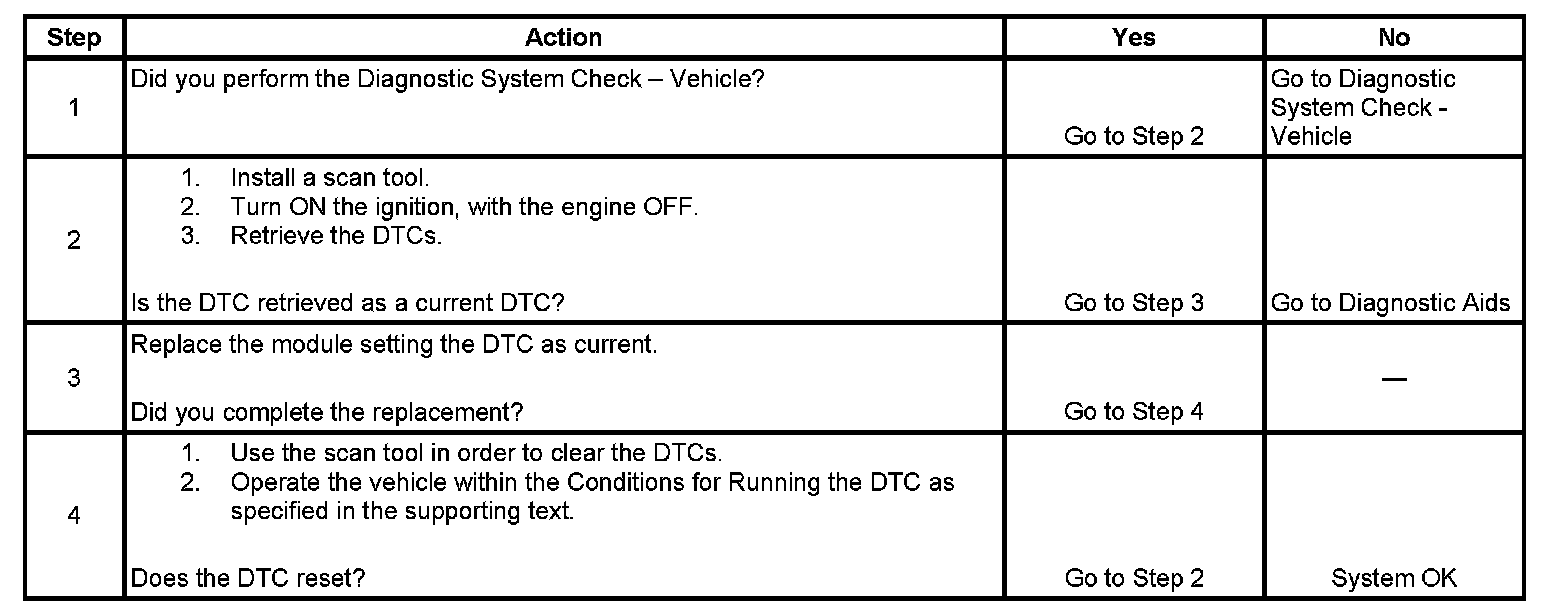 - If this DTC is retrieved as both a current and history DTC, replace the module.