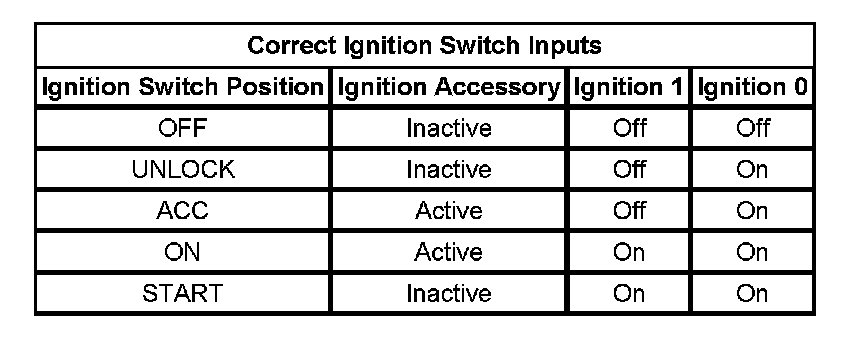 Correct Ignition Switch Inputs:
