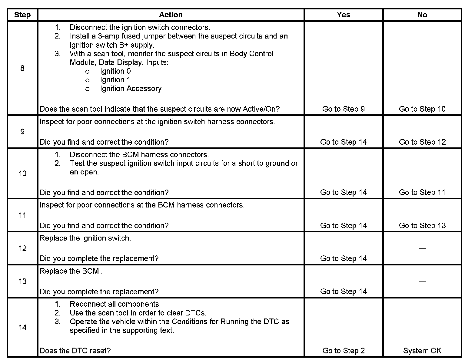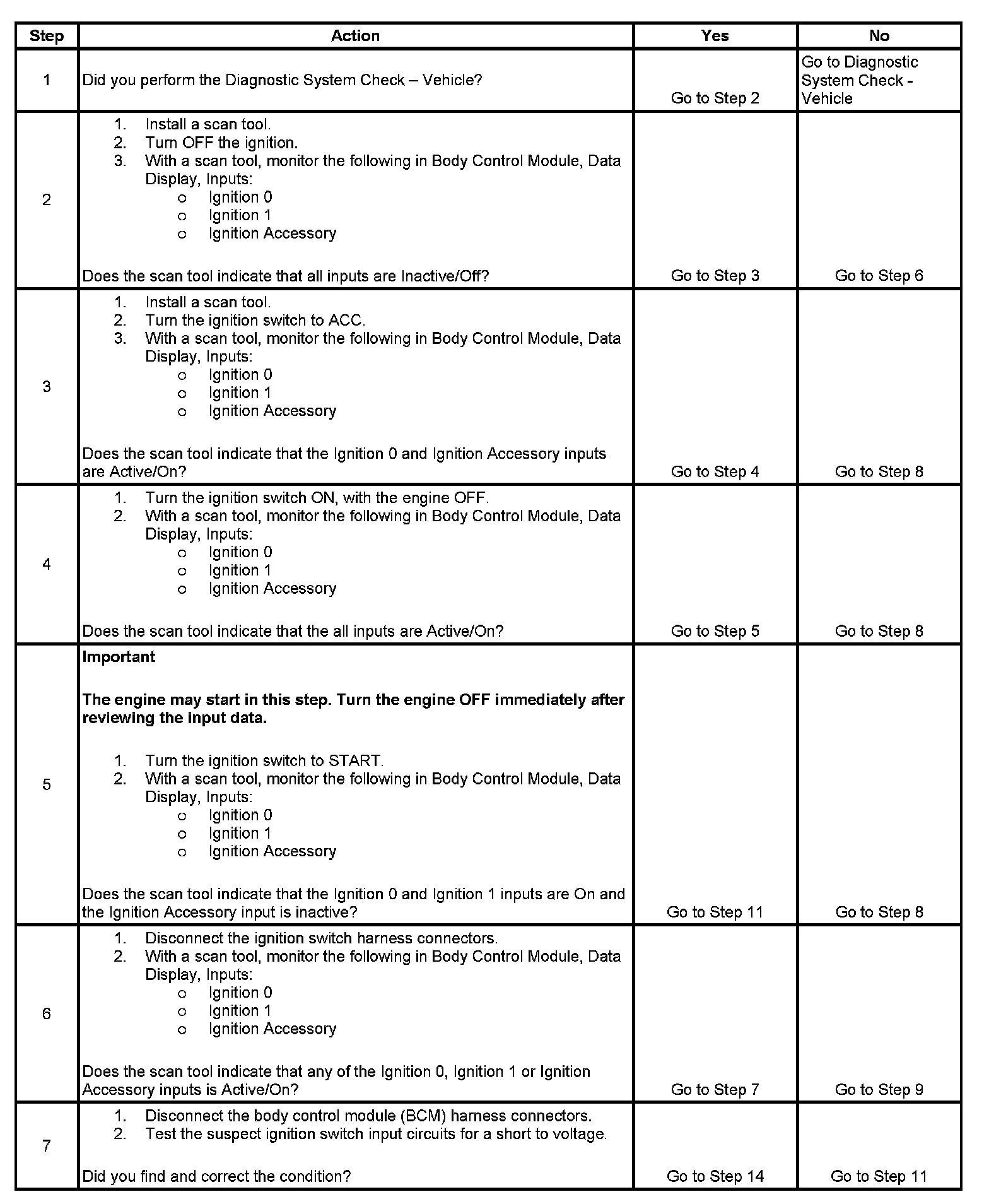 Incorrect Ignition Switch Inputs: