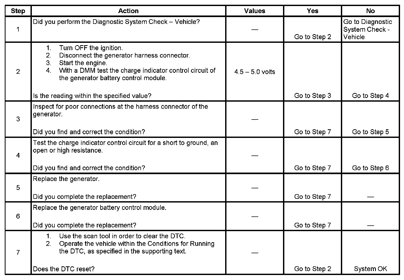 Important: You must cycle the ignition after clearing the DTC to turn OFF the DIC message of Charging System Failure and turn OFF the battery indicator.