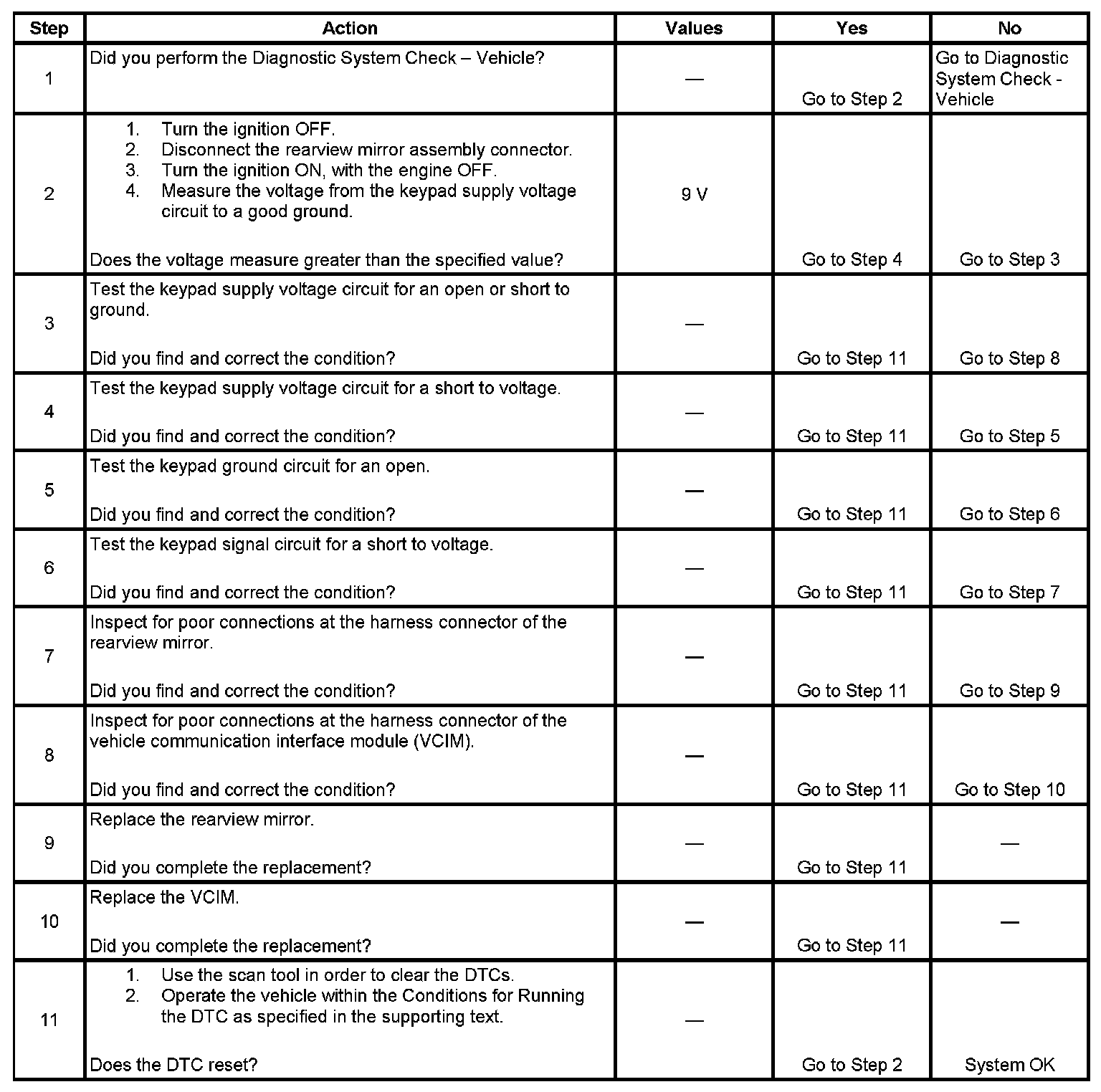 * The VCIM powers the button assembly through the keypad supply voltage circuit for 11.5 milliseconds, turns the power off, then waits for 50 milliseconds and sees a voltage value greater than 1.8 volts on this circuit.