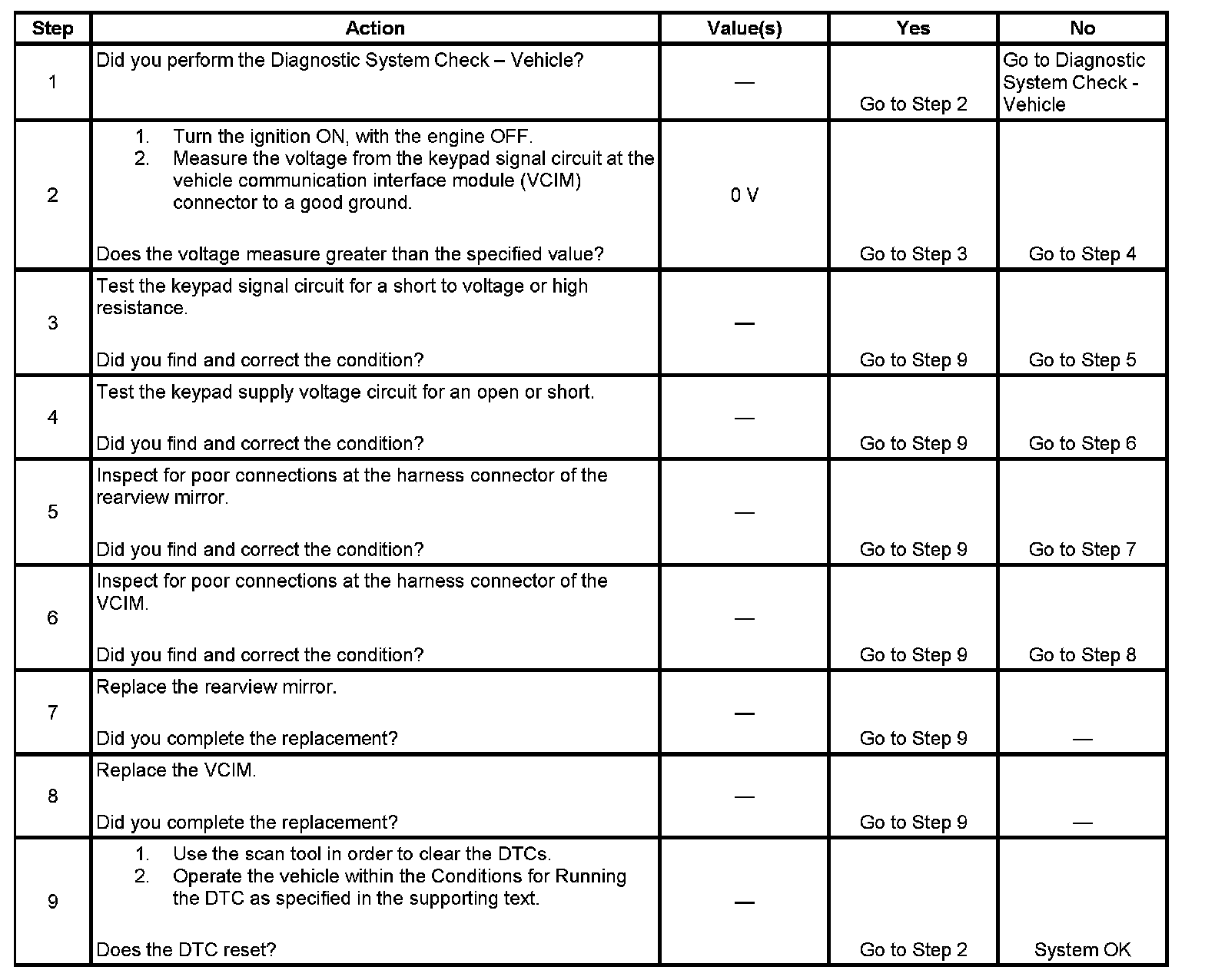 2. This step tests the at rest state of the keypad signal circuit.