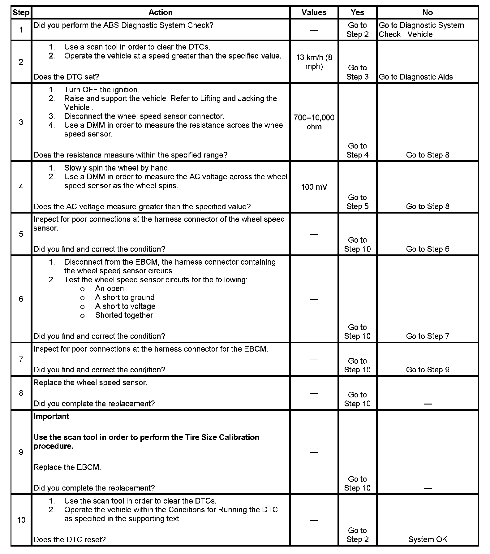 ^ The EBCM disables the ABS and may disable the dynamic rear proportion (DRP) if more than one wheel speed sensor DTC is set.
