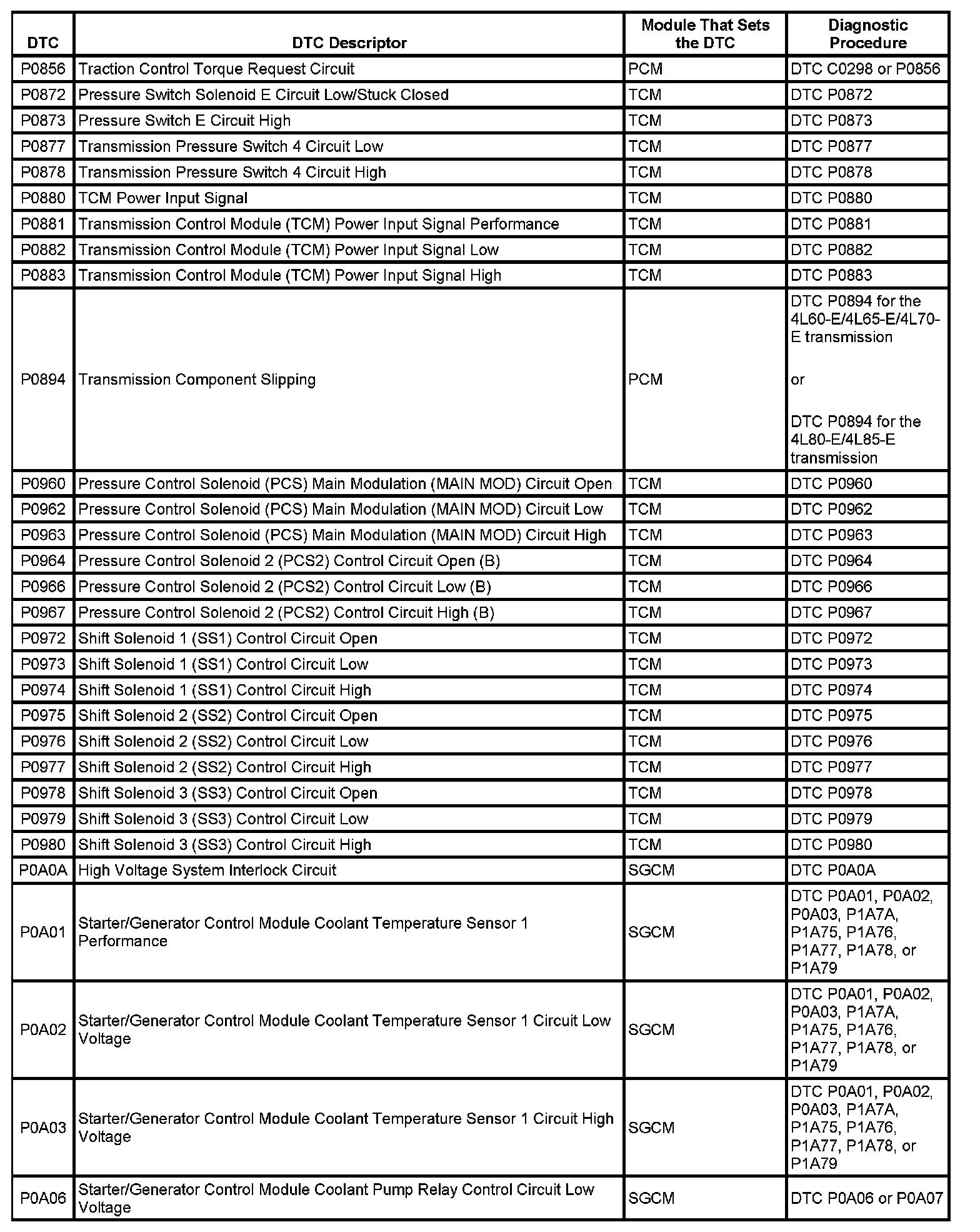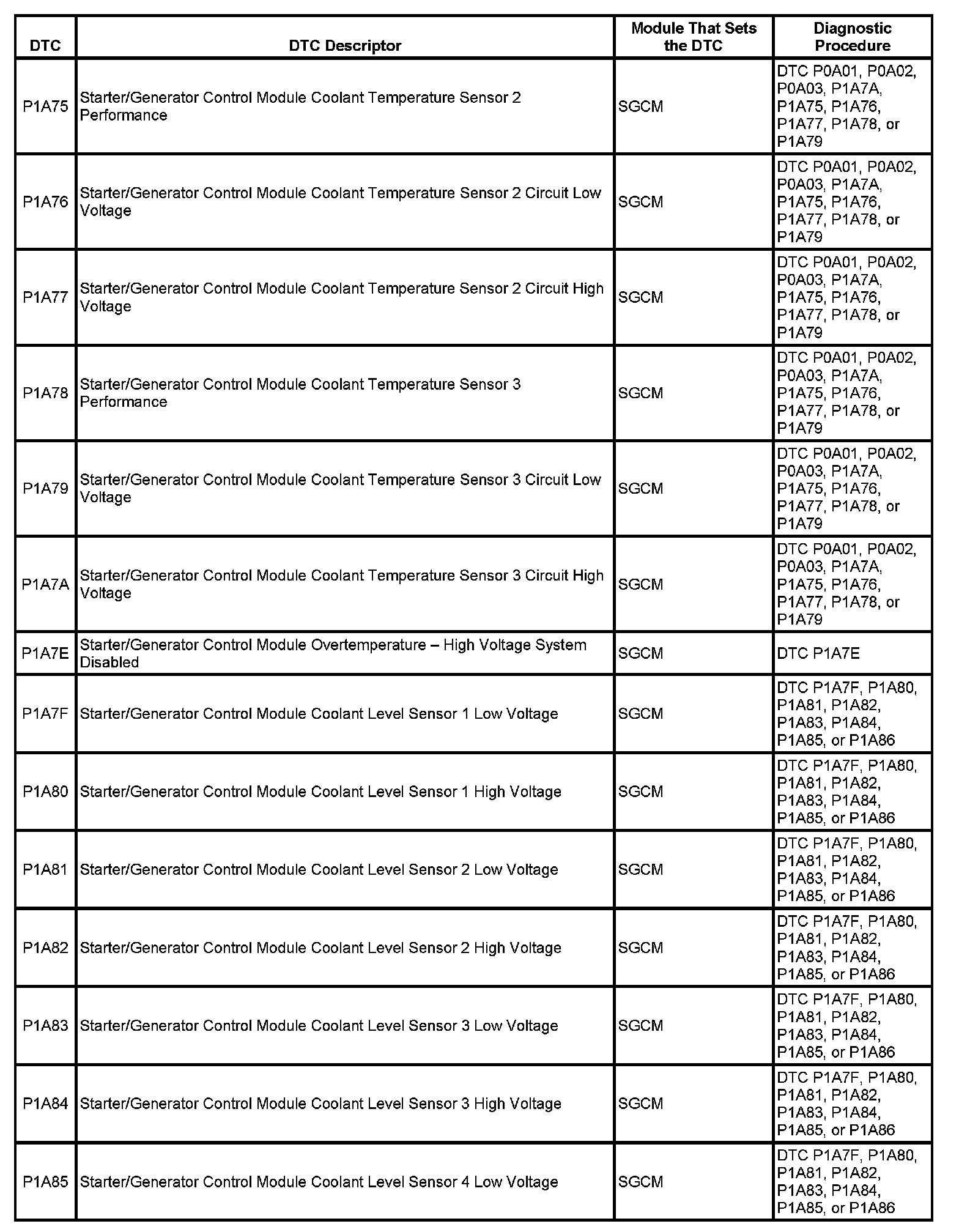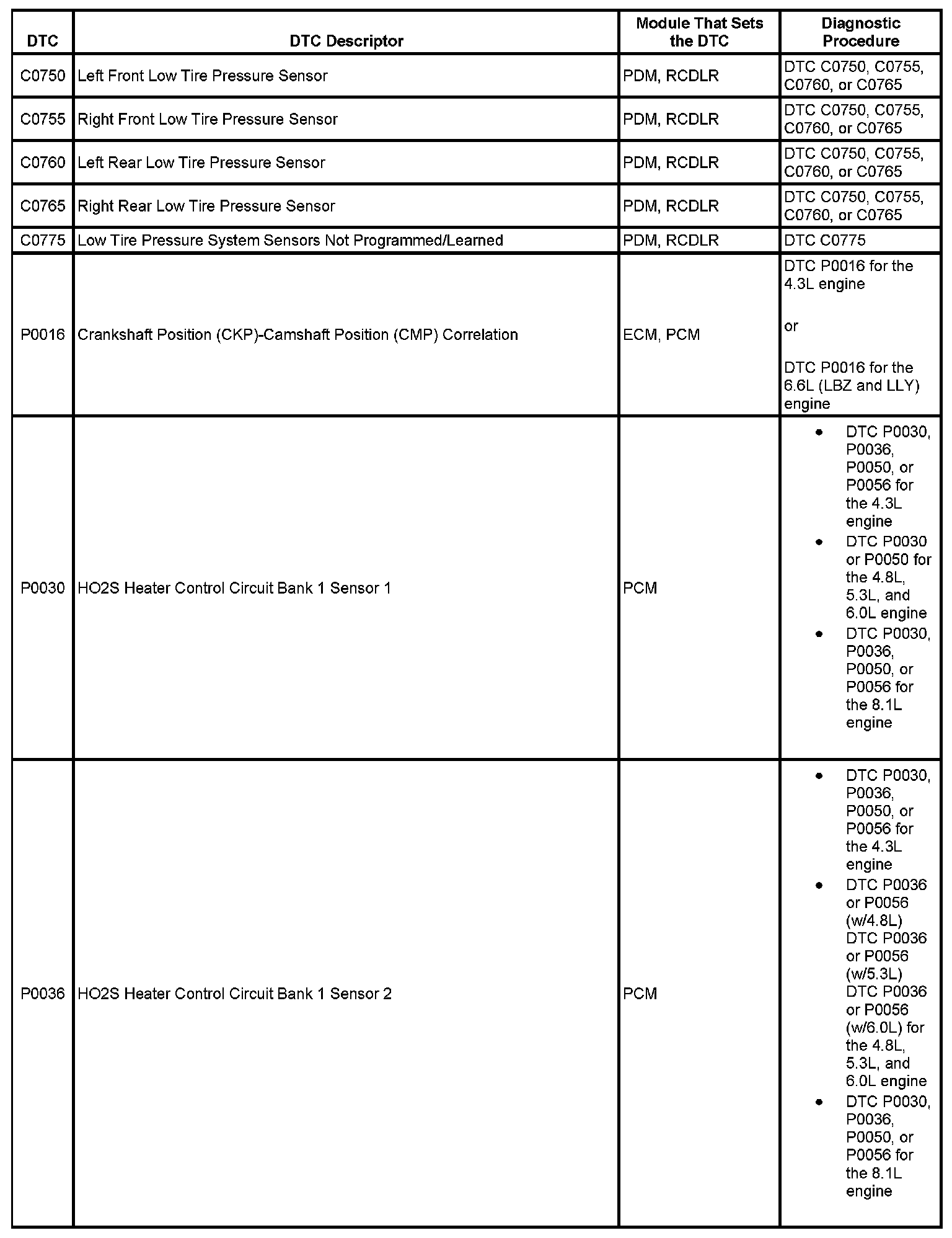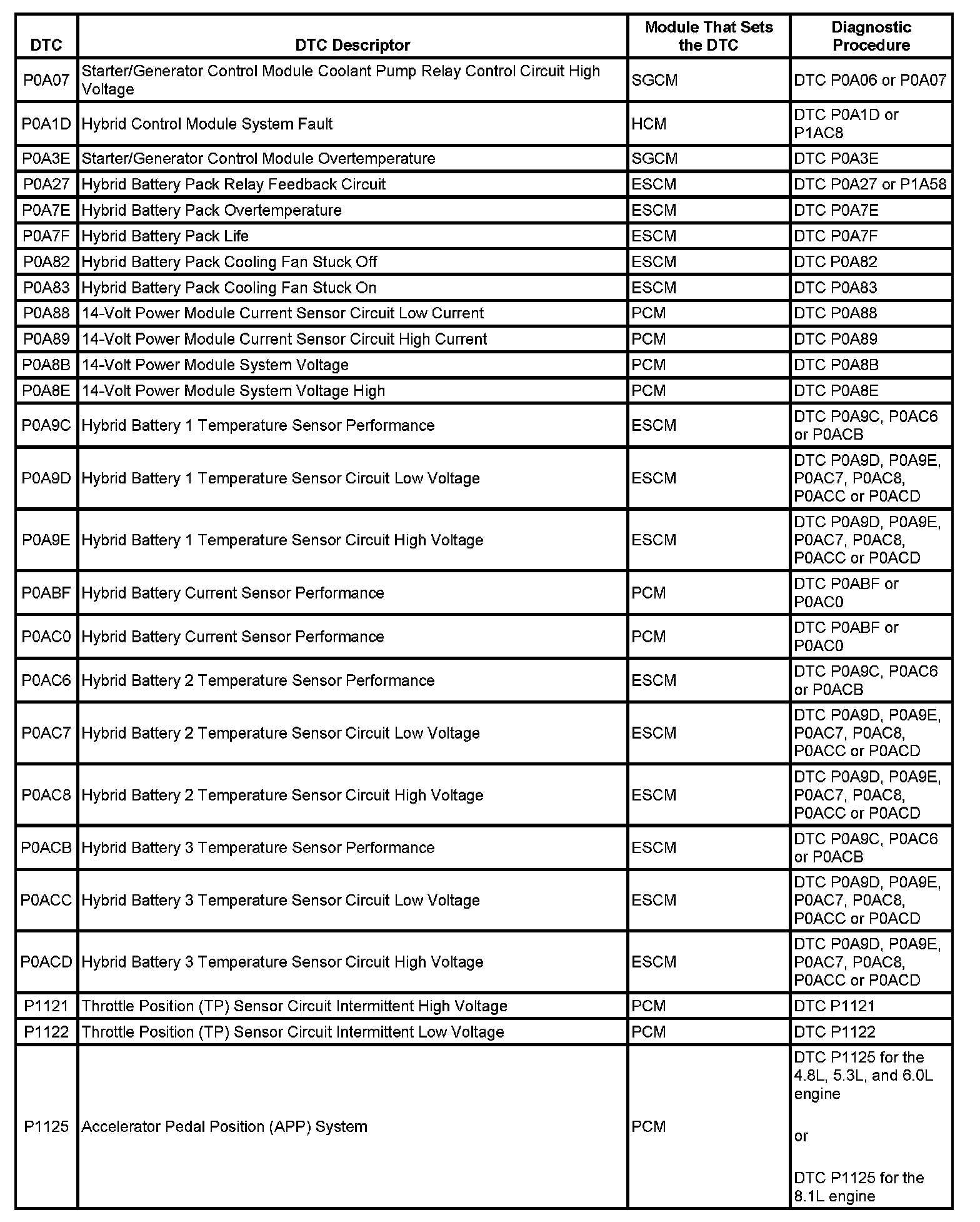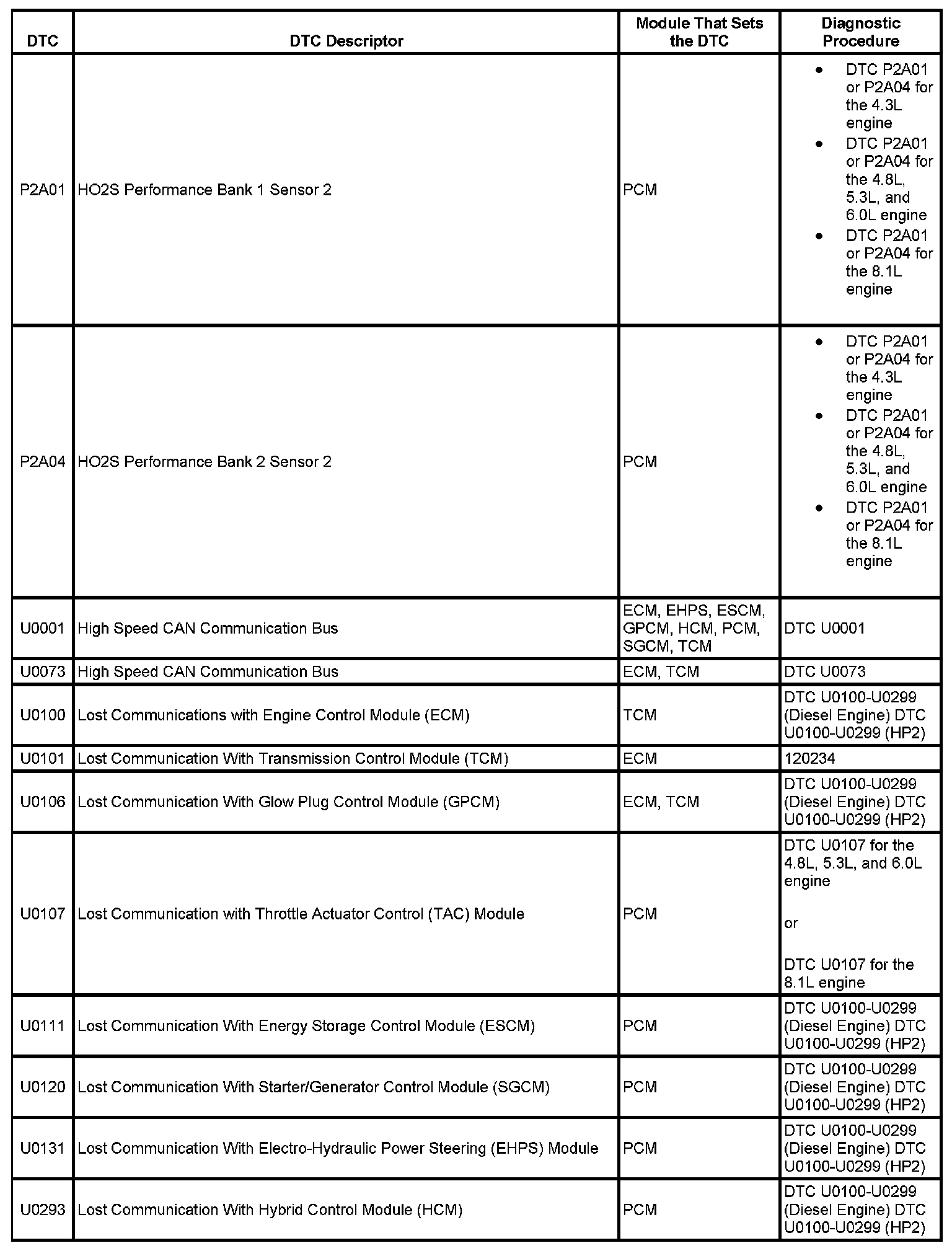 This master DTC list includes all applicable DTCs in alphanumeric order with descriptors.