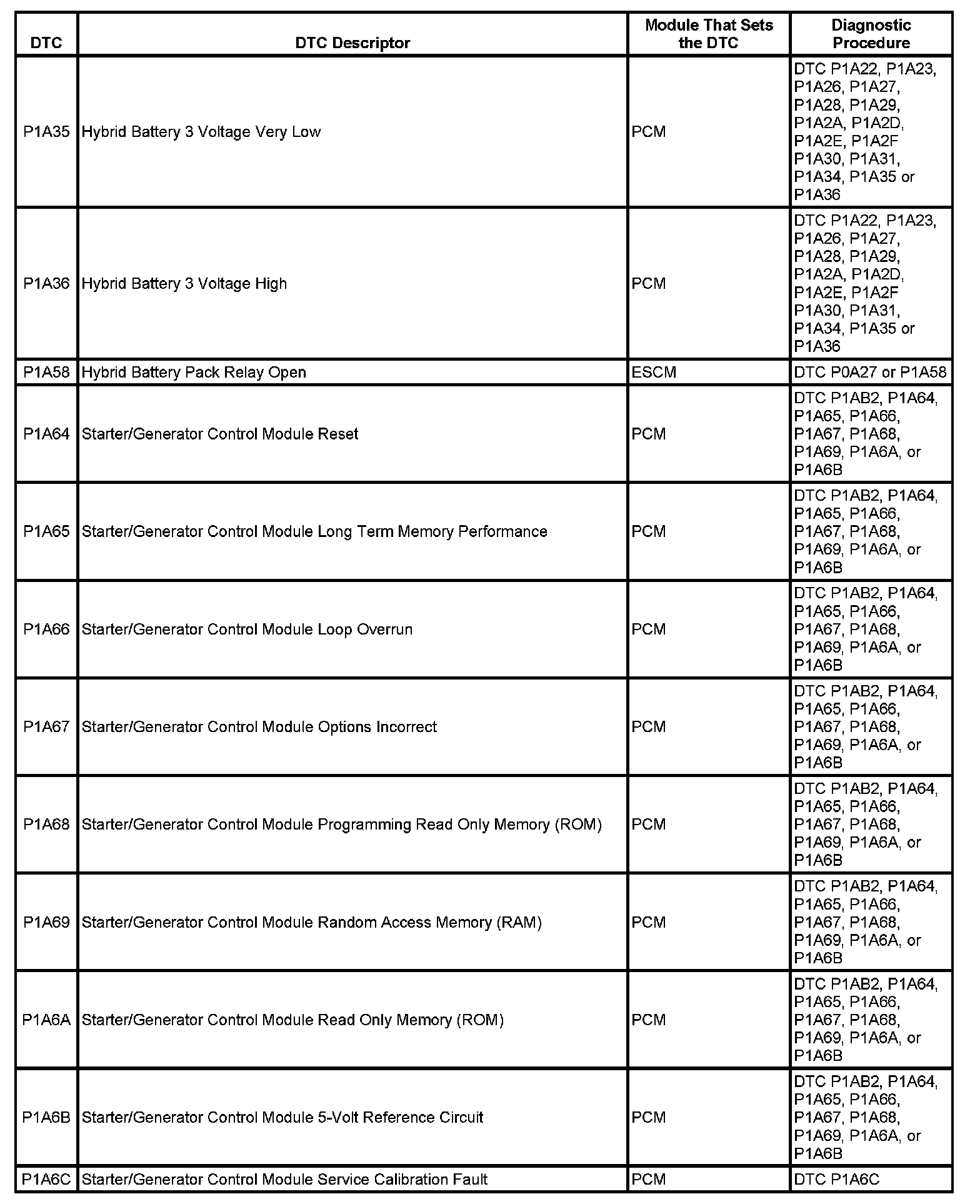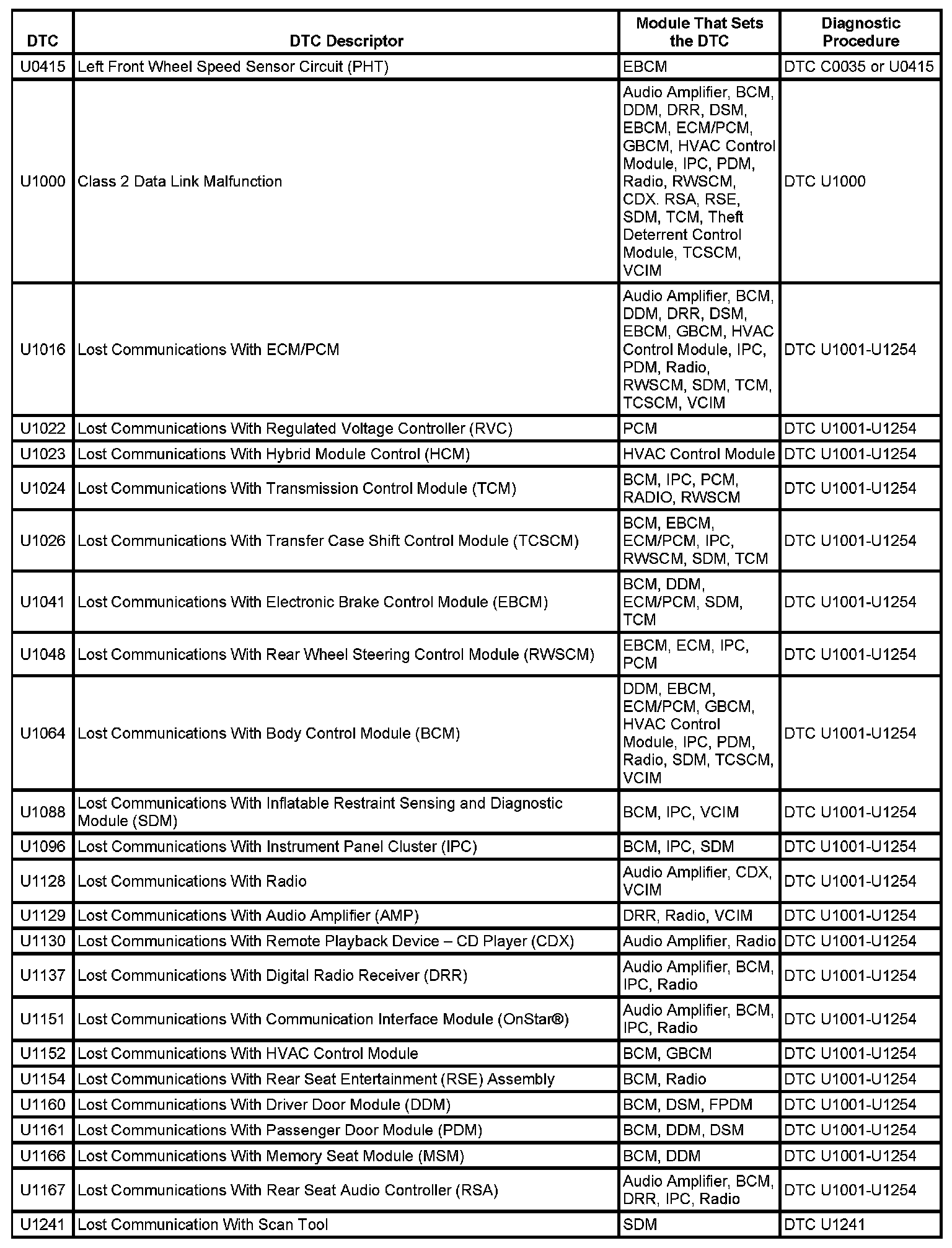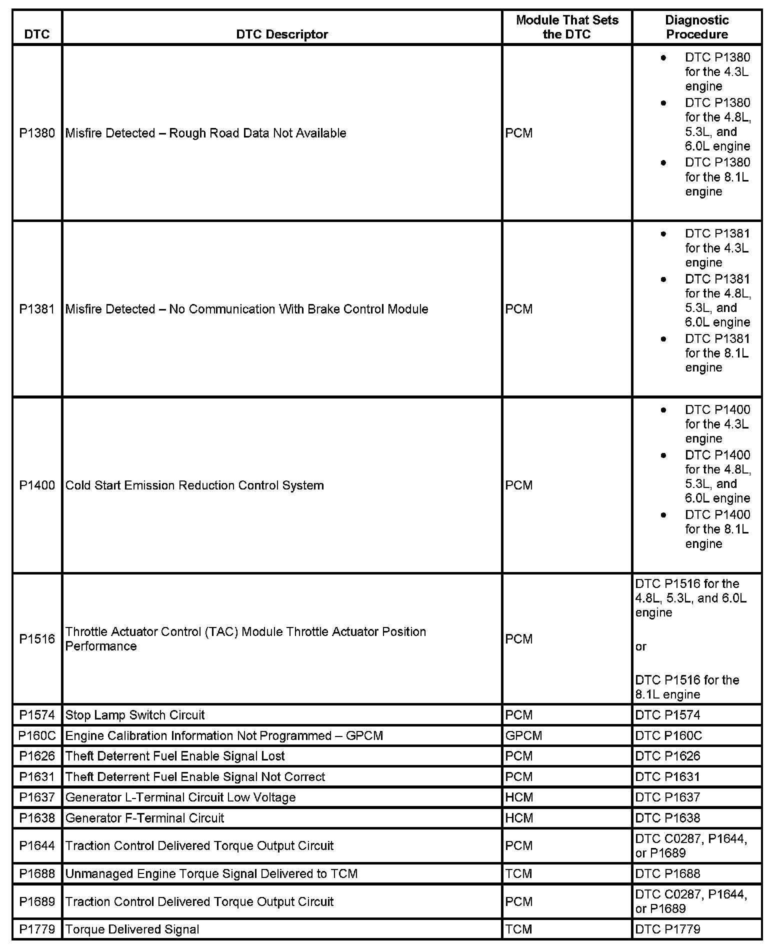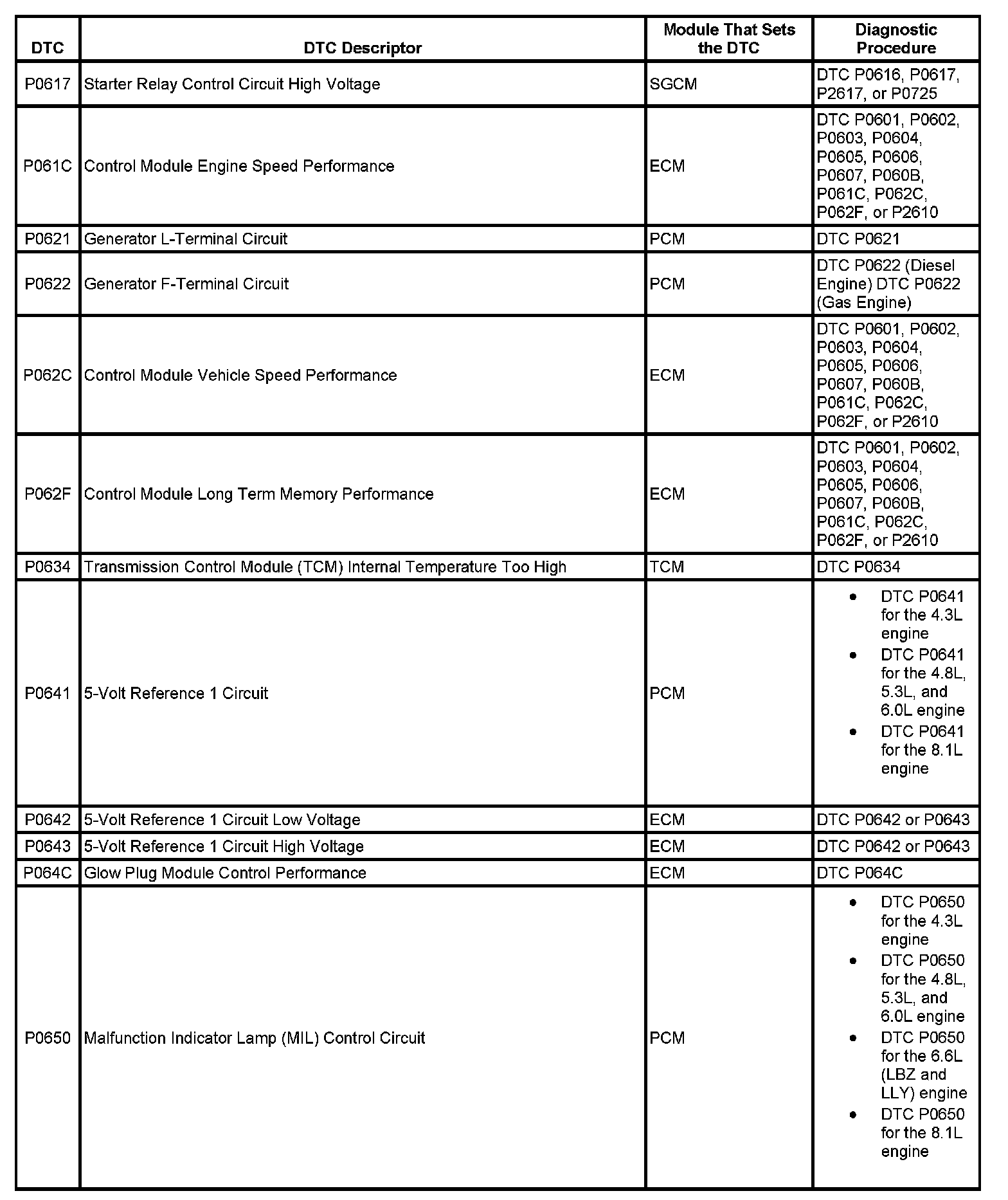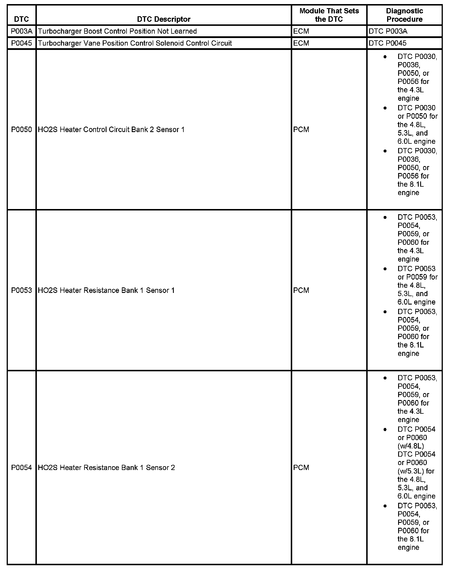 This master DTC list includes all applicable DTCs in alphanumeric order with descriptors.