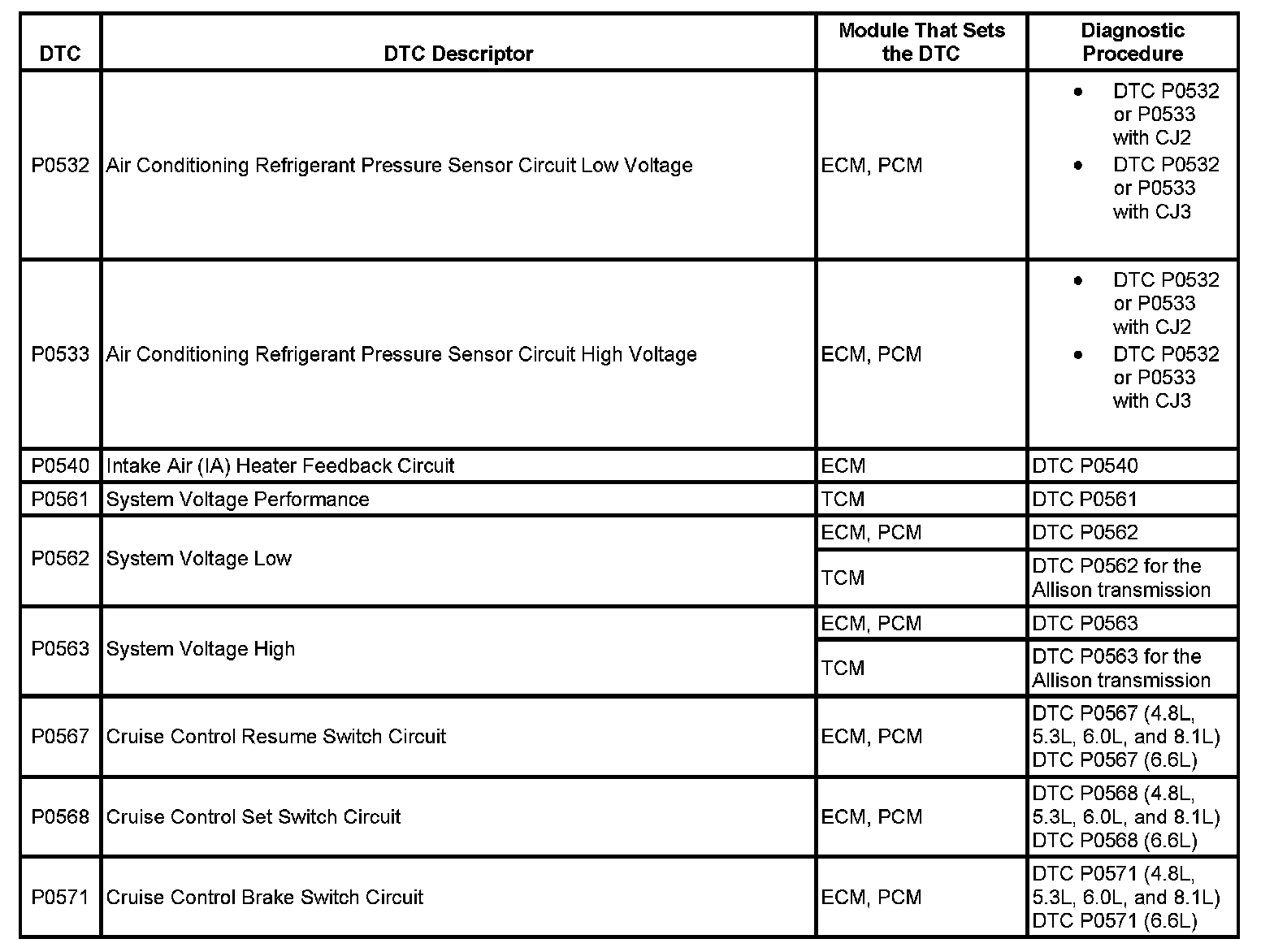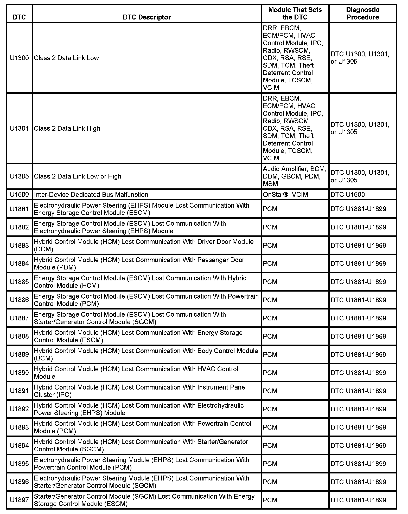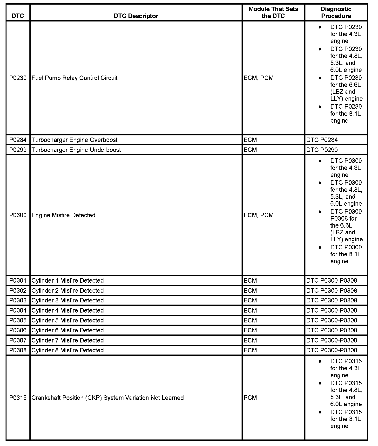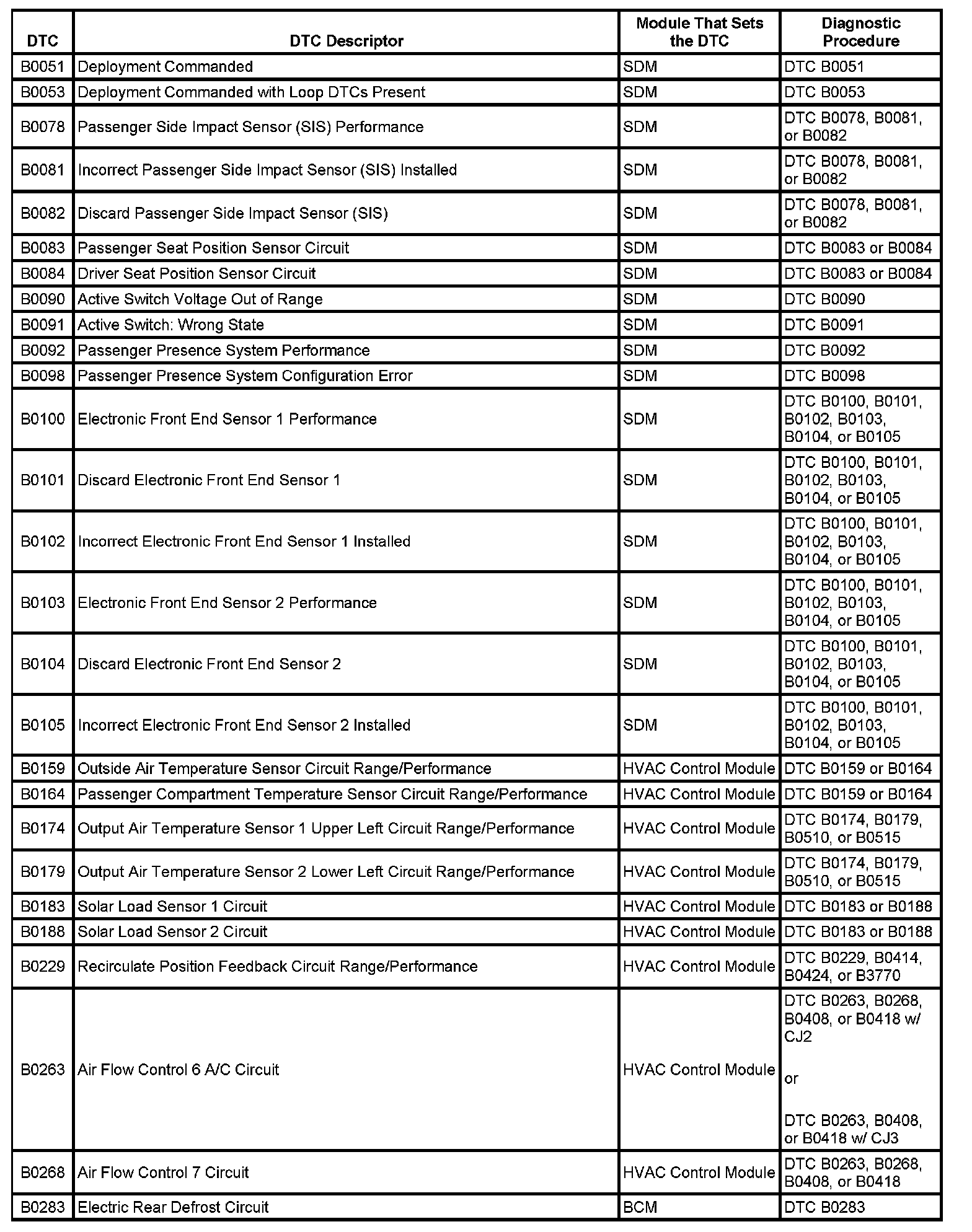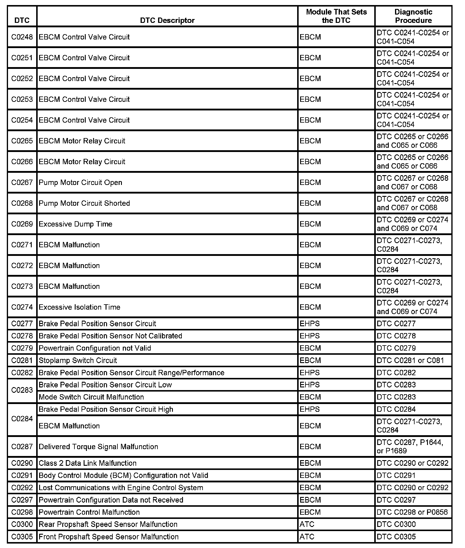 This master DTC list includes all applicable DTCs in alphanumeric order with descriptors.