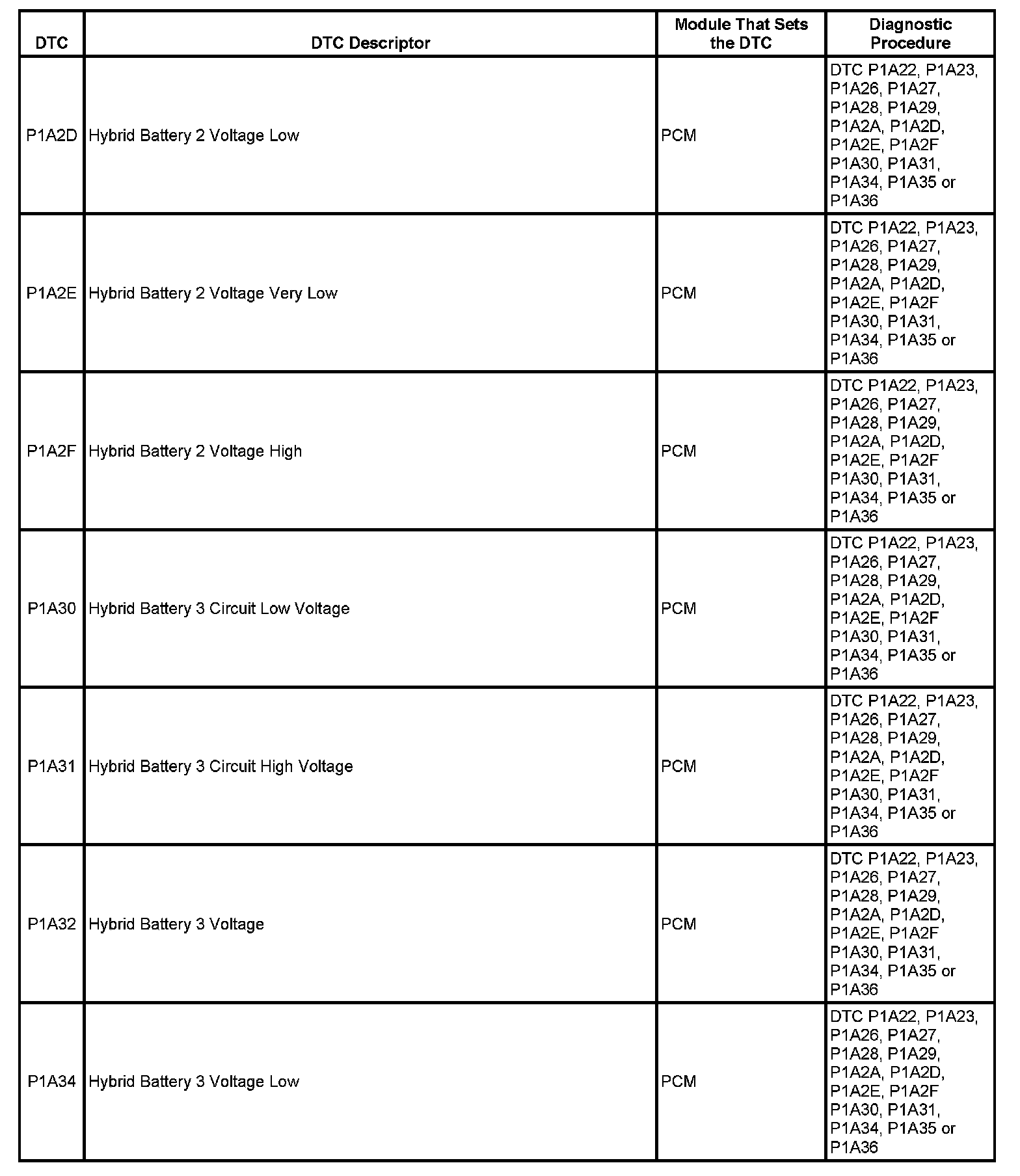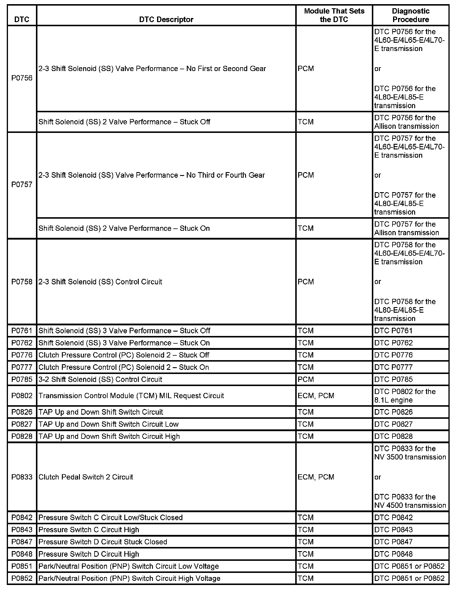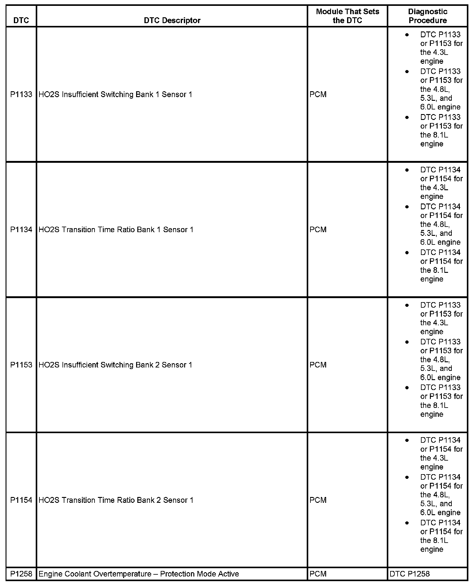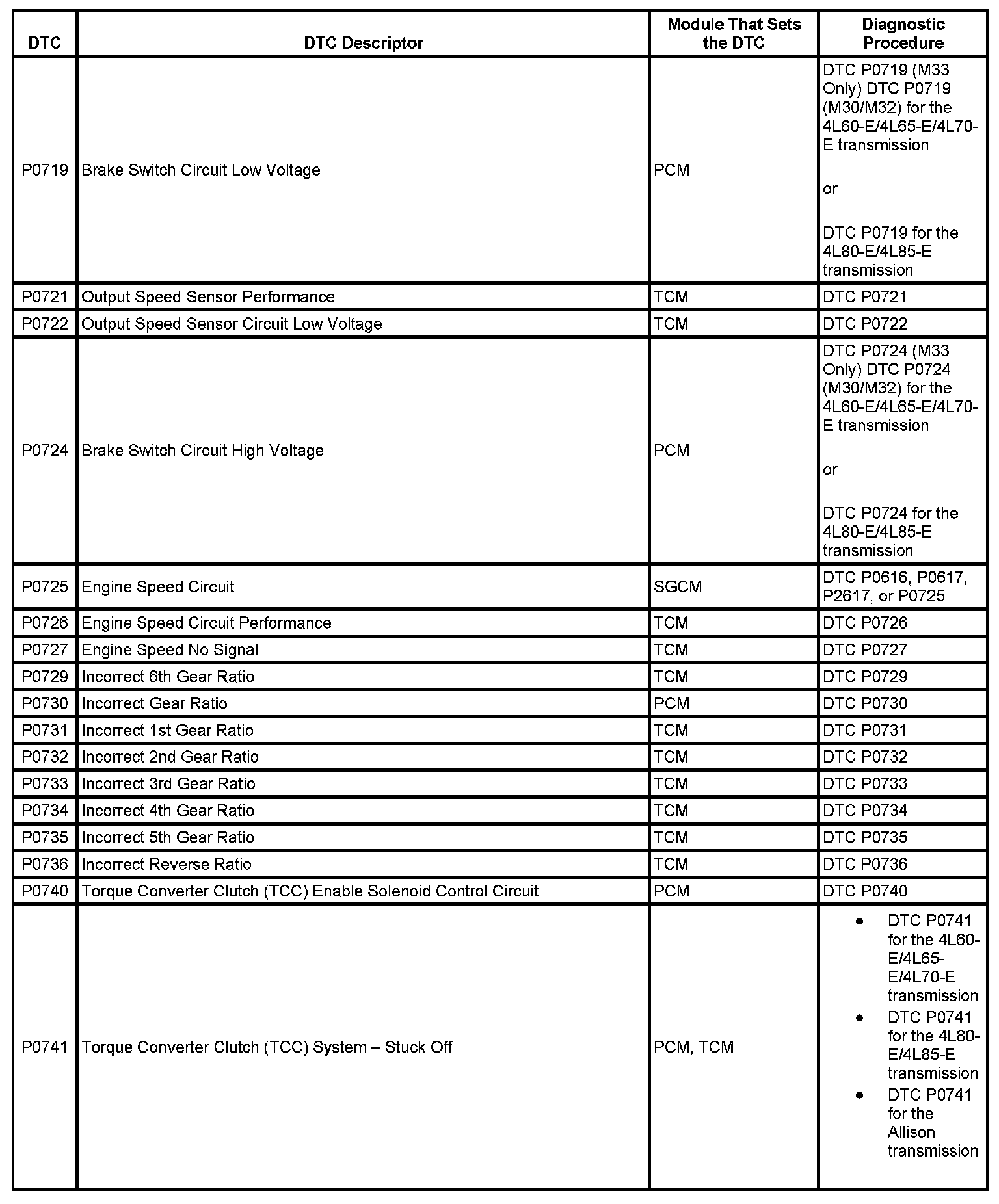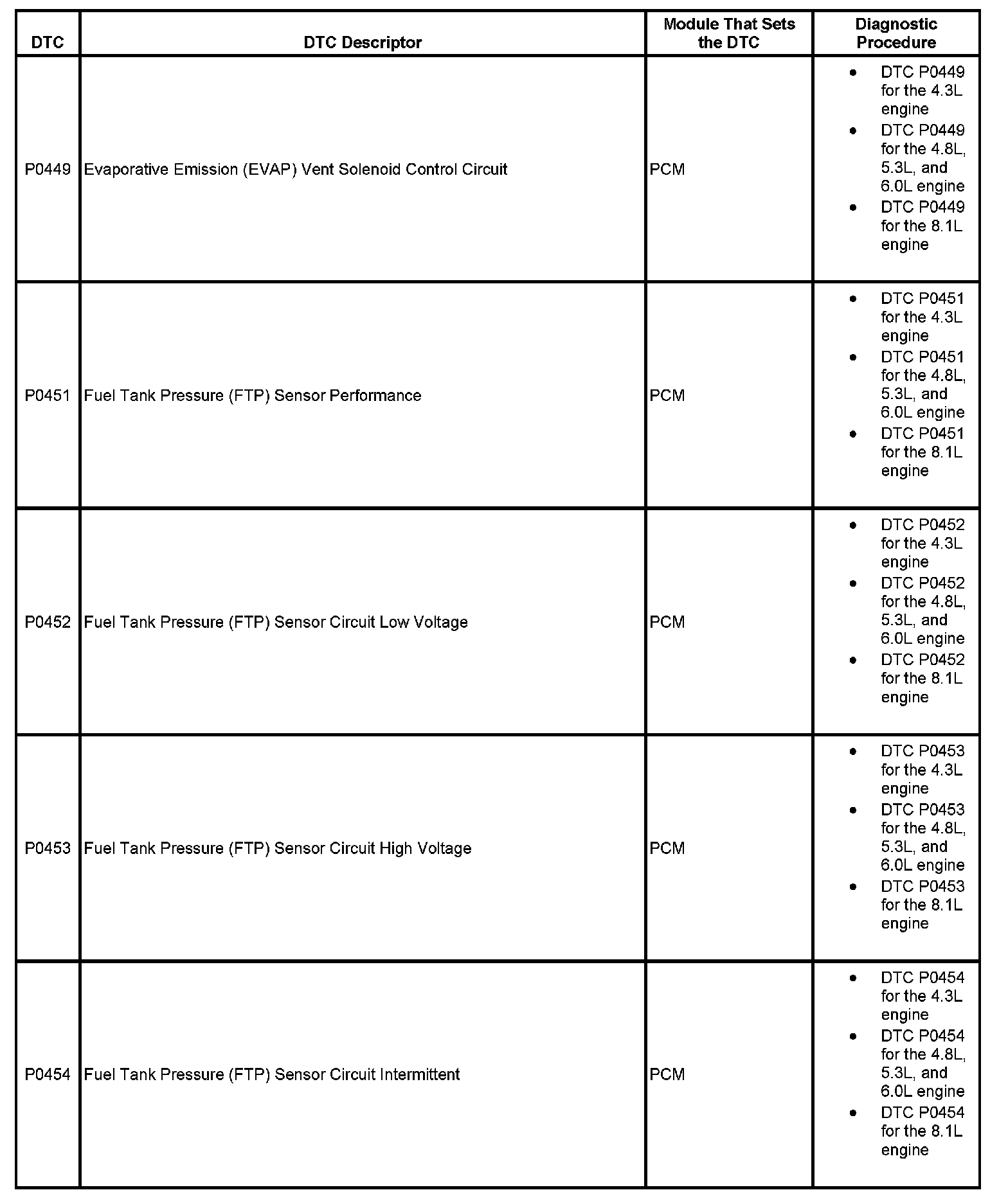 This master DTC list includes all applicable DTCs in alphanumeric order with descriptors.