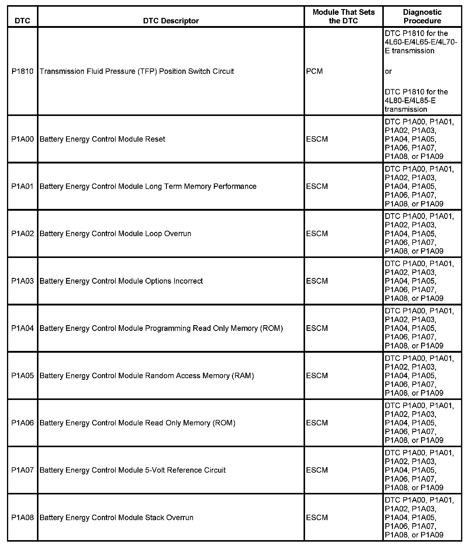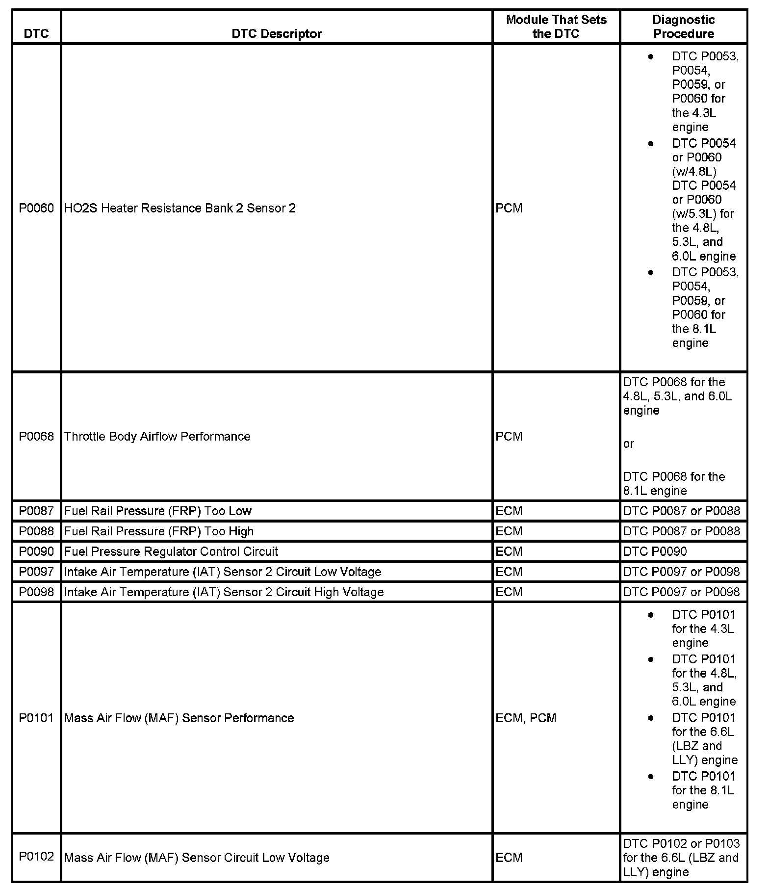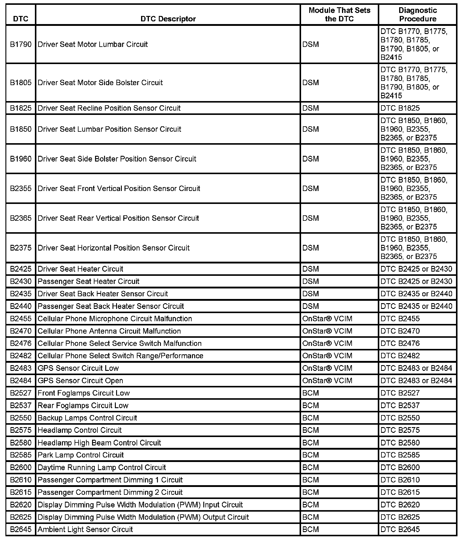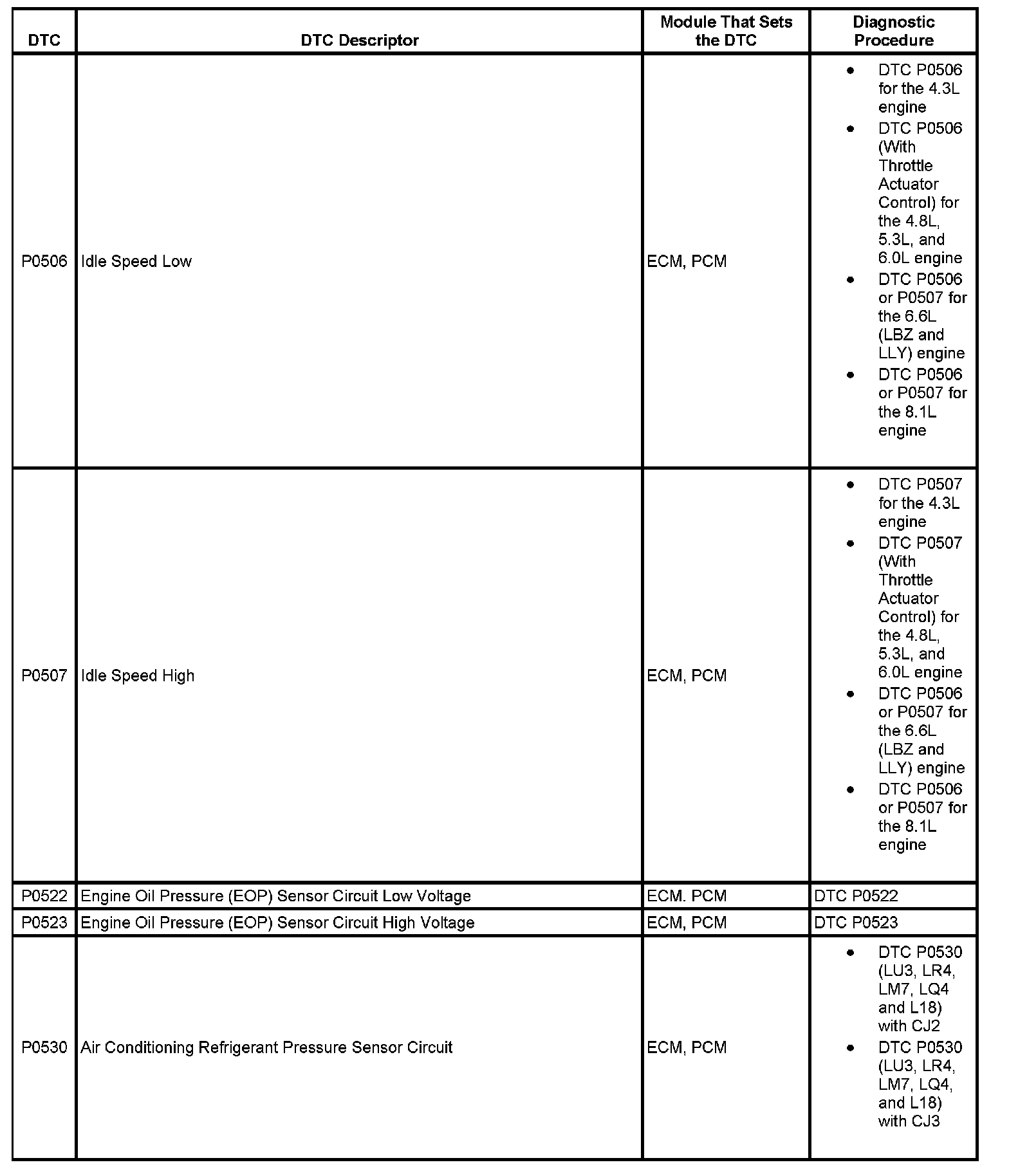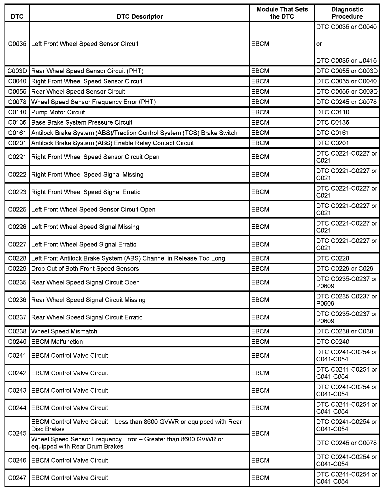 This master DTC list includes all applicable DTCs in alphanumeric order with descriptors.