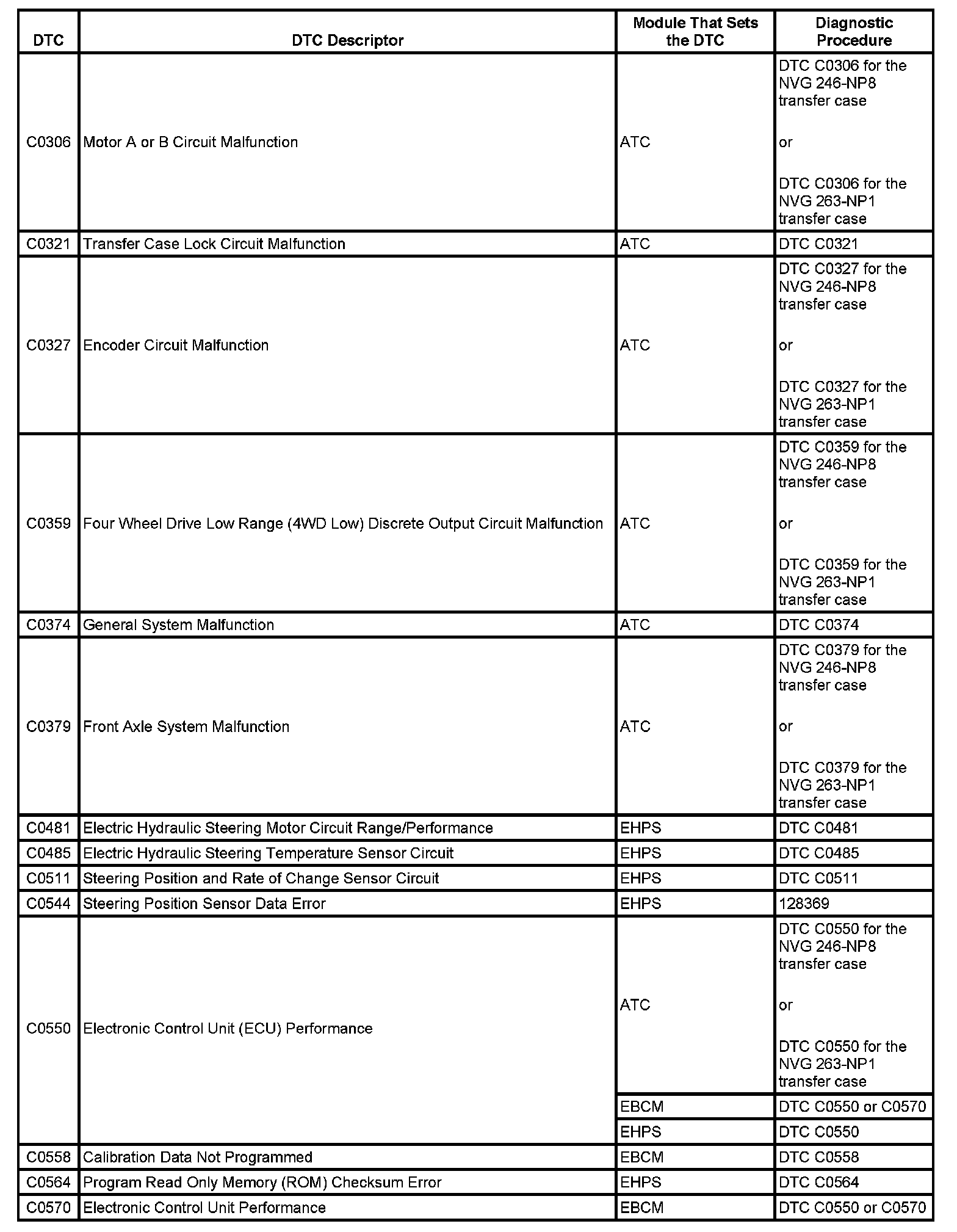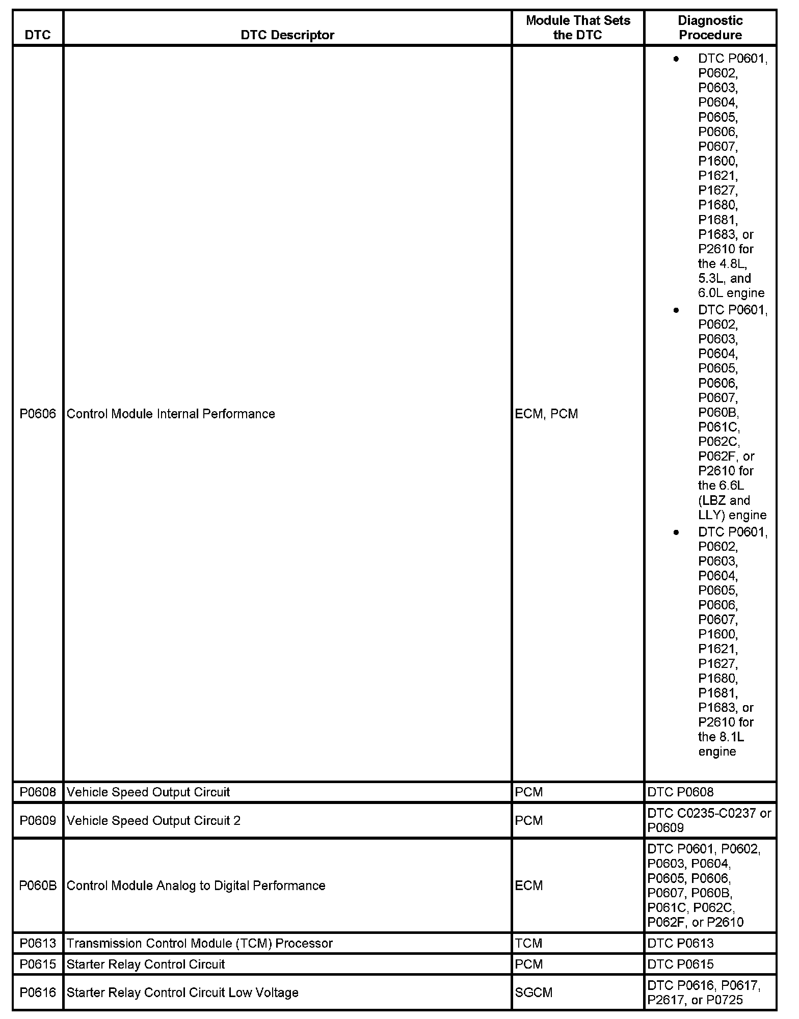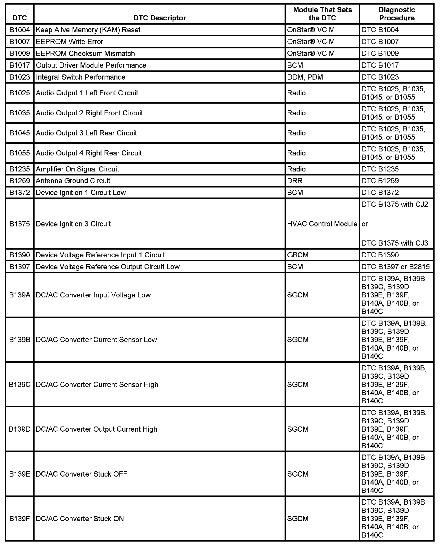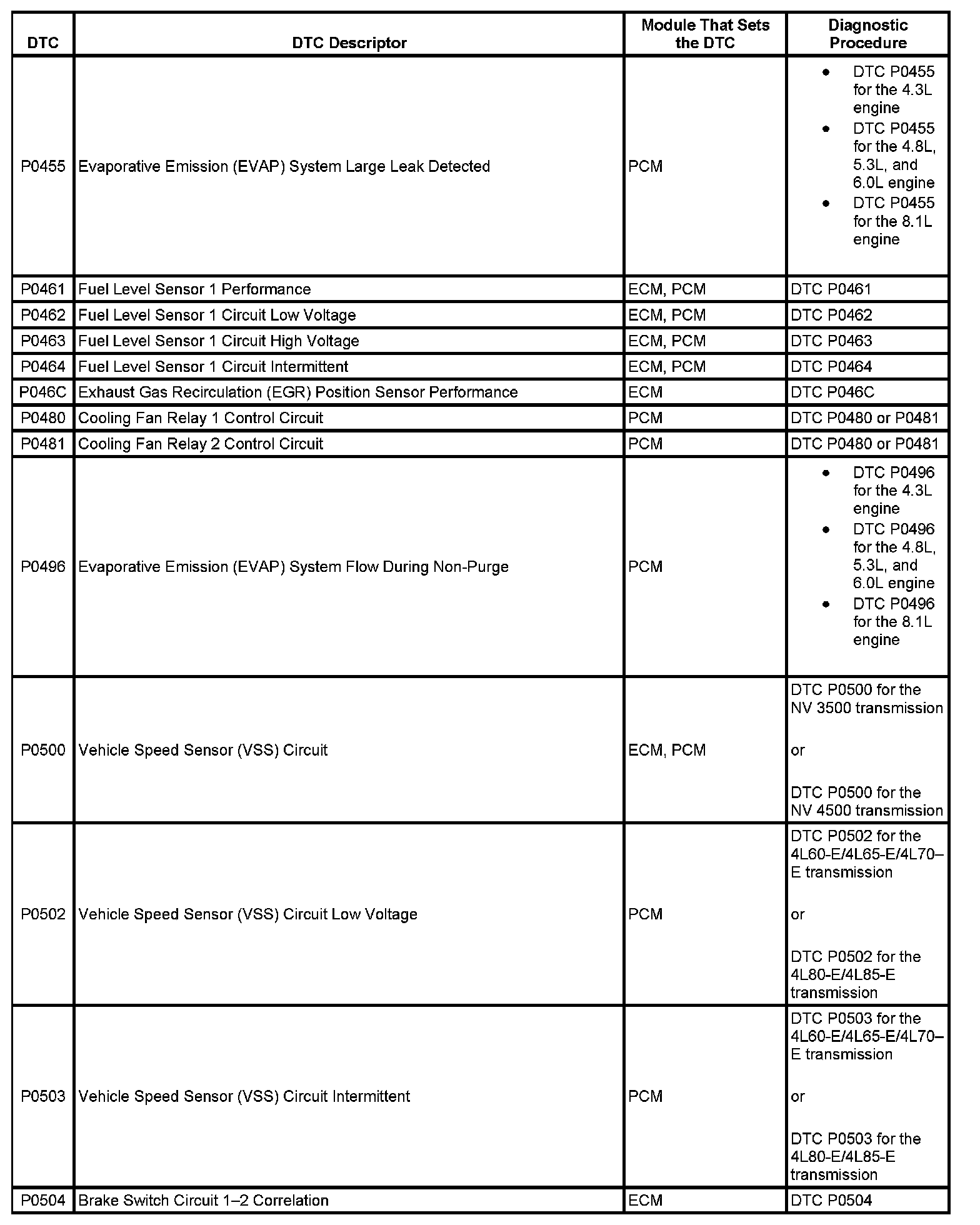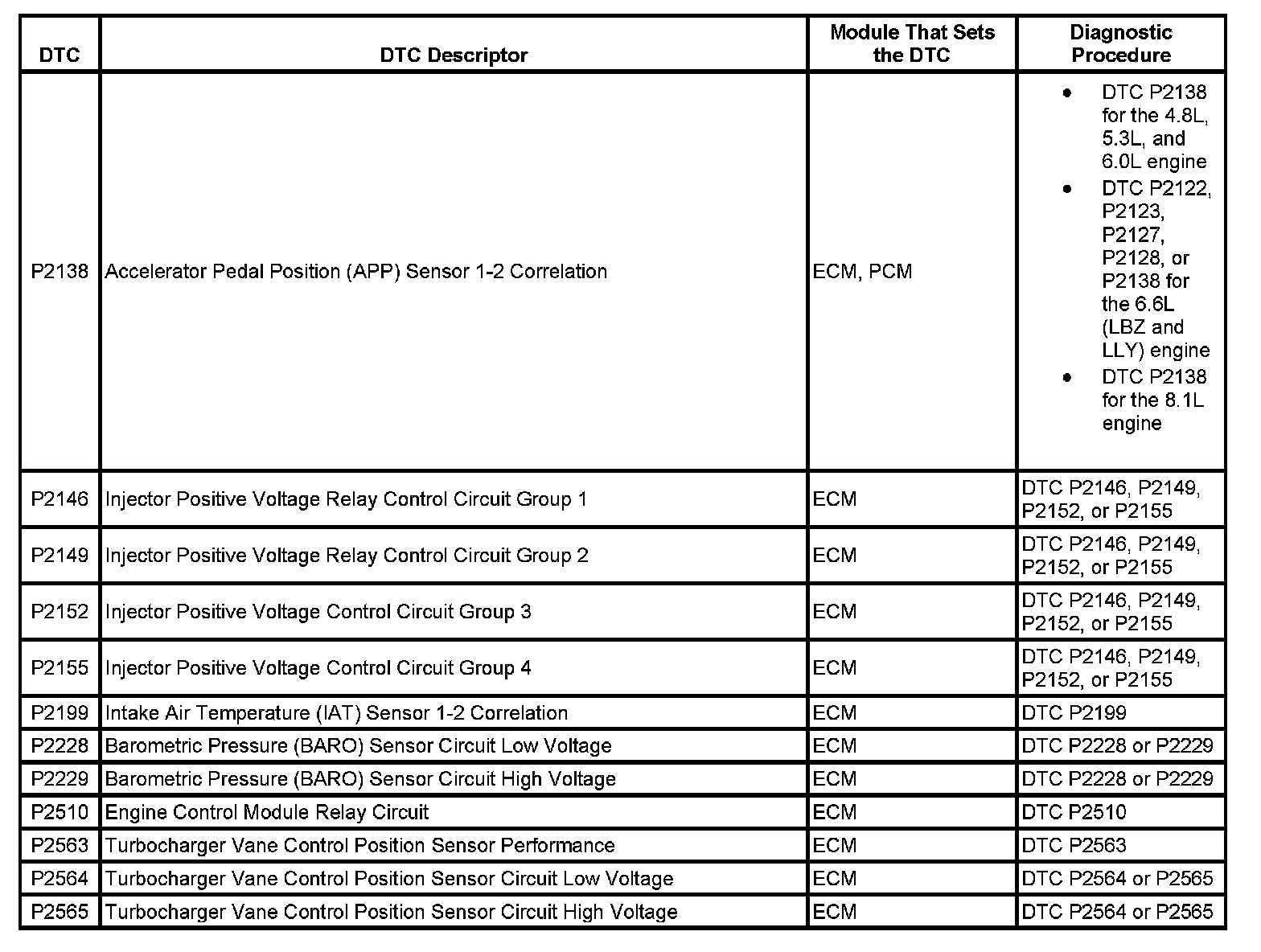 This master DTC list includes all applicable DTCs in alphanumeric order with descriptors.