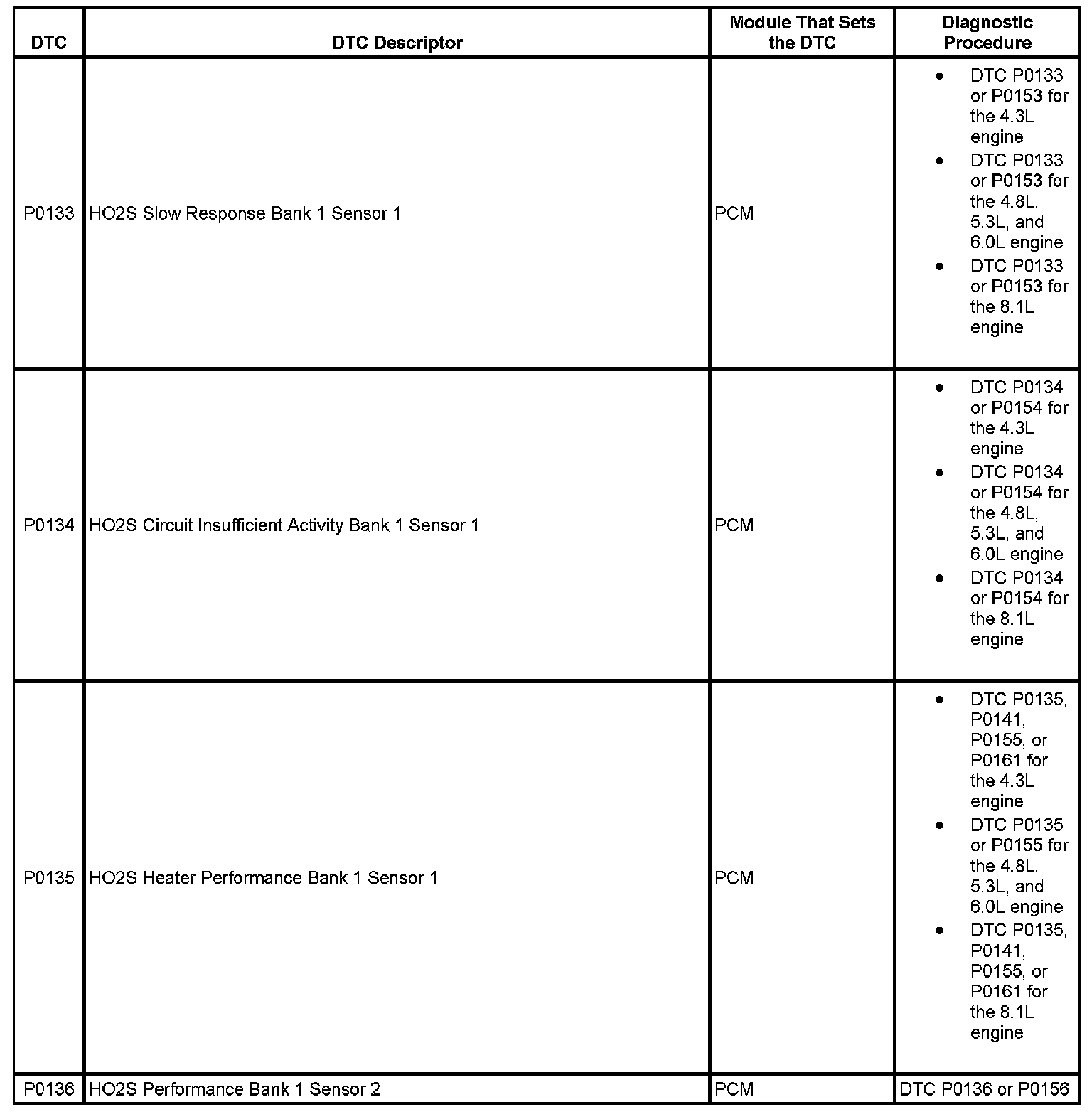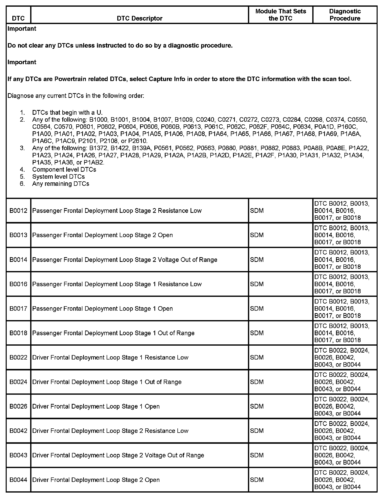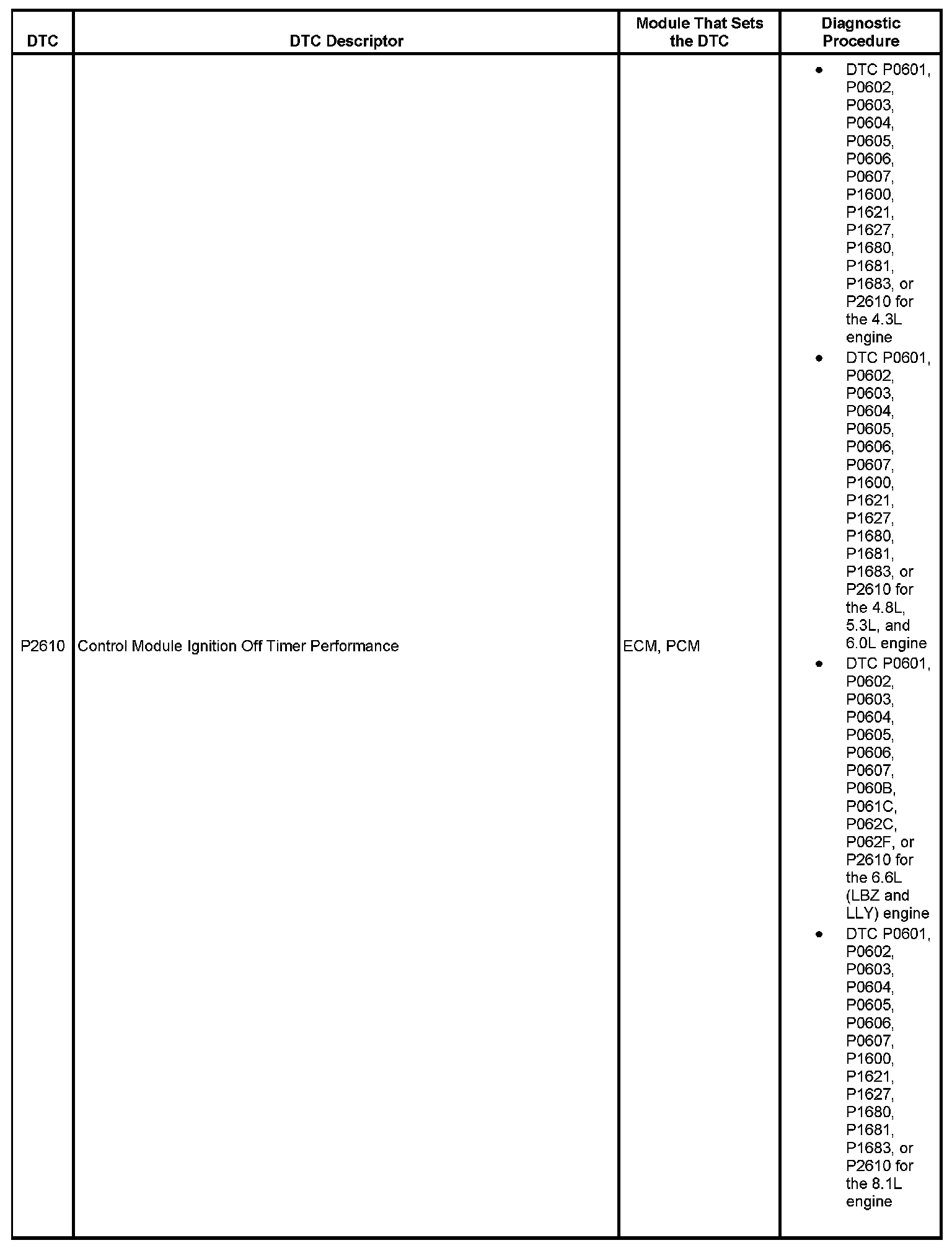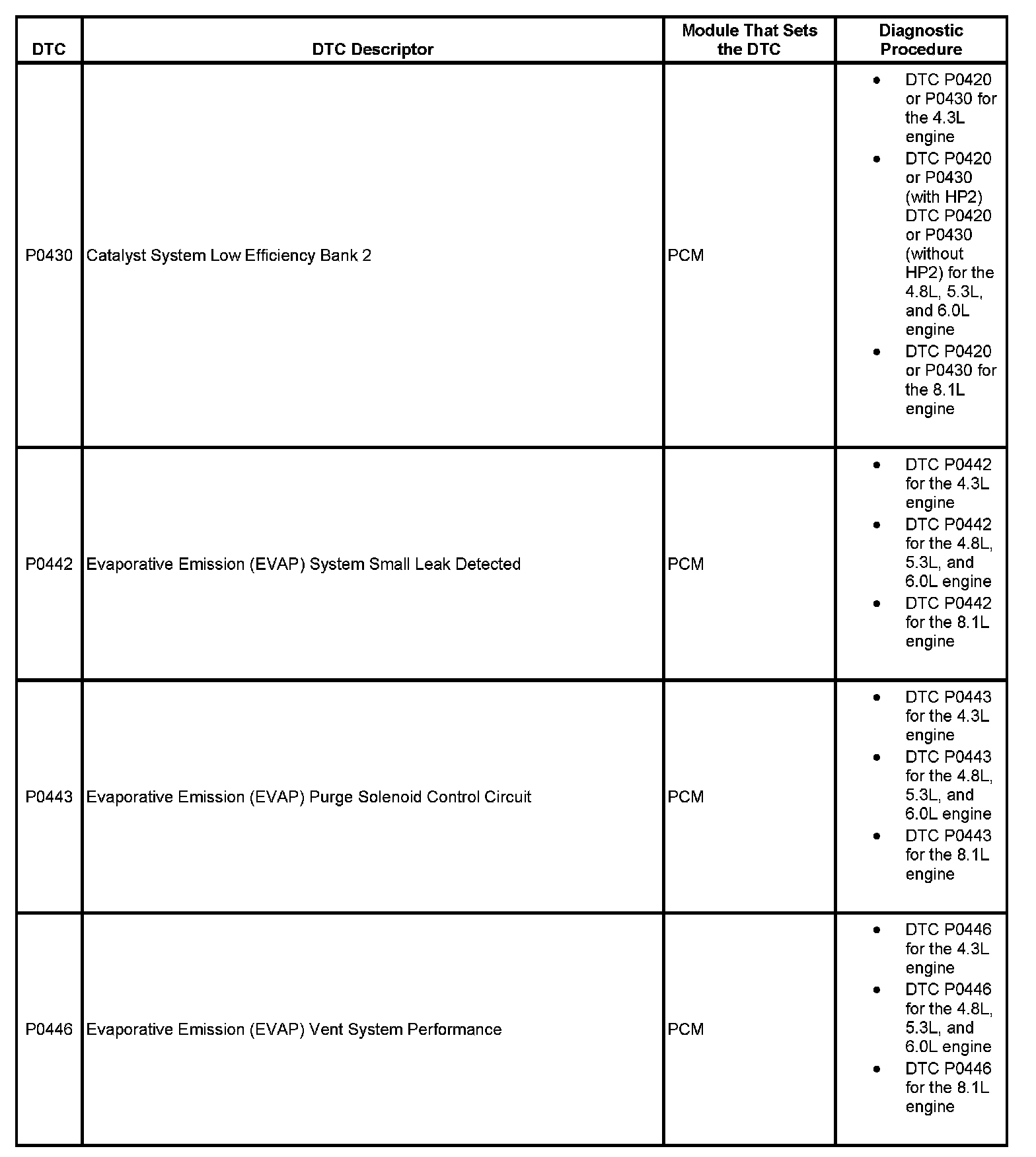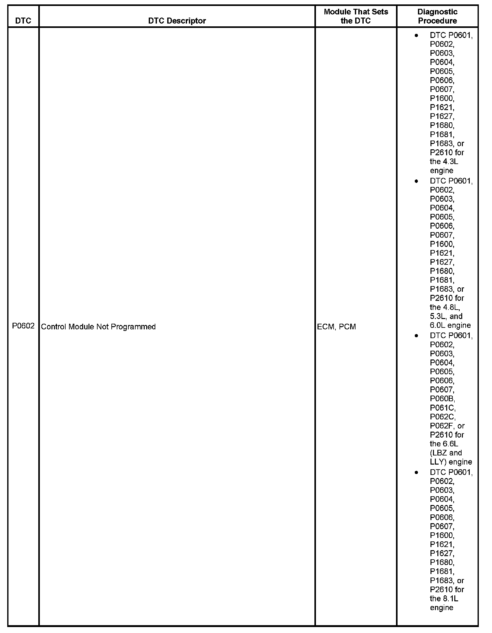 This master DTC list includes all applicable DTCs in alphanumeric order with descriptors.