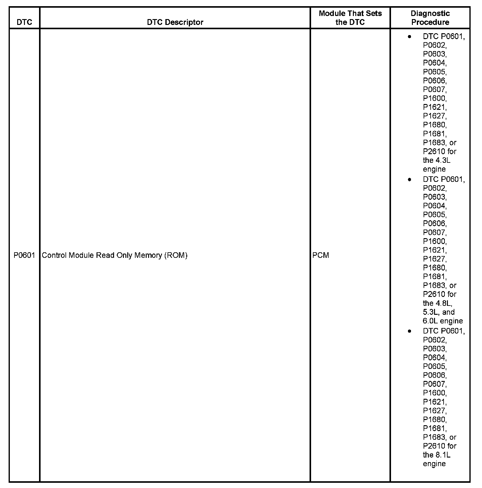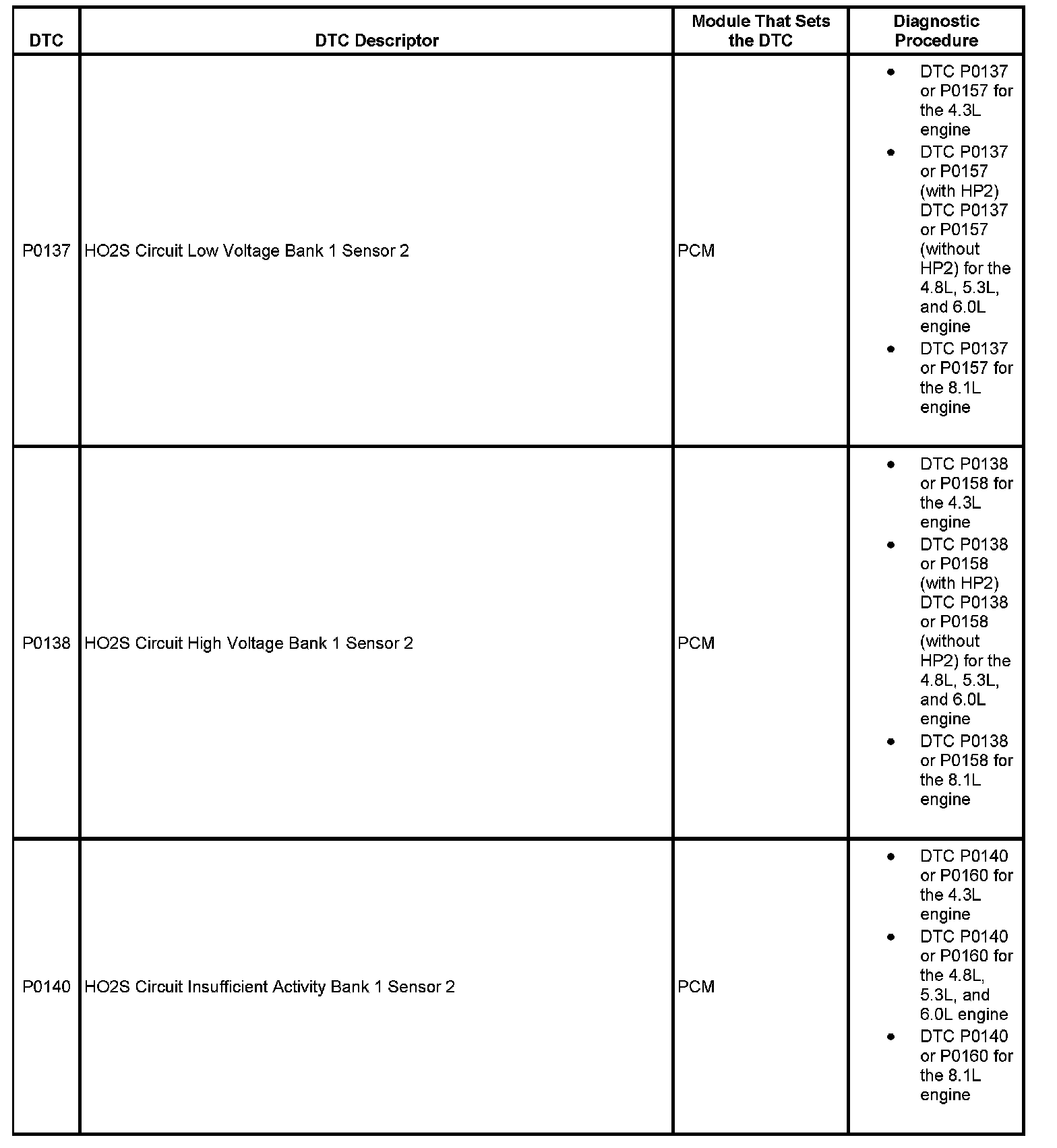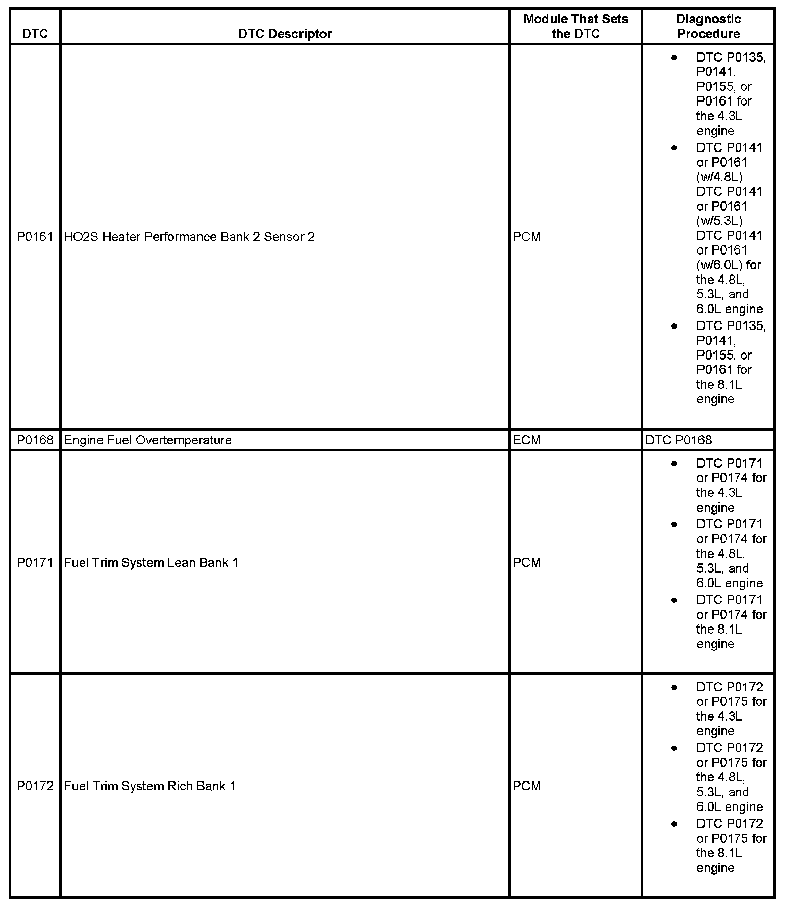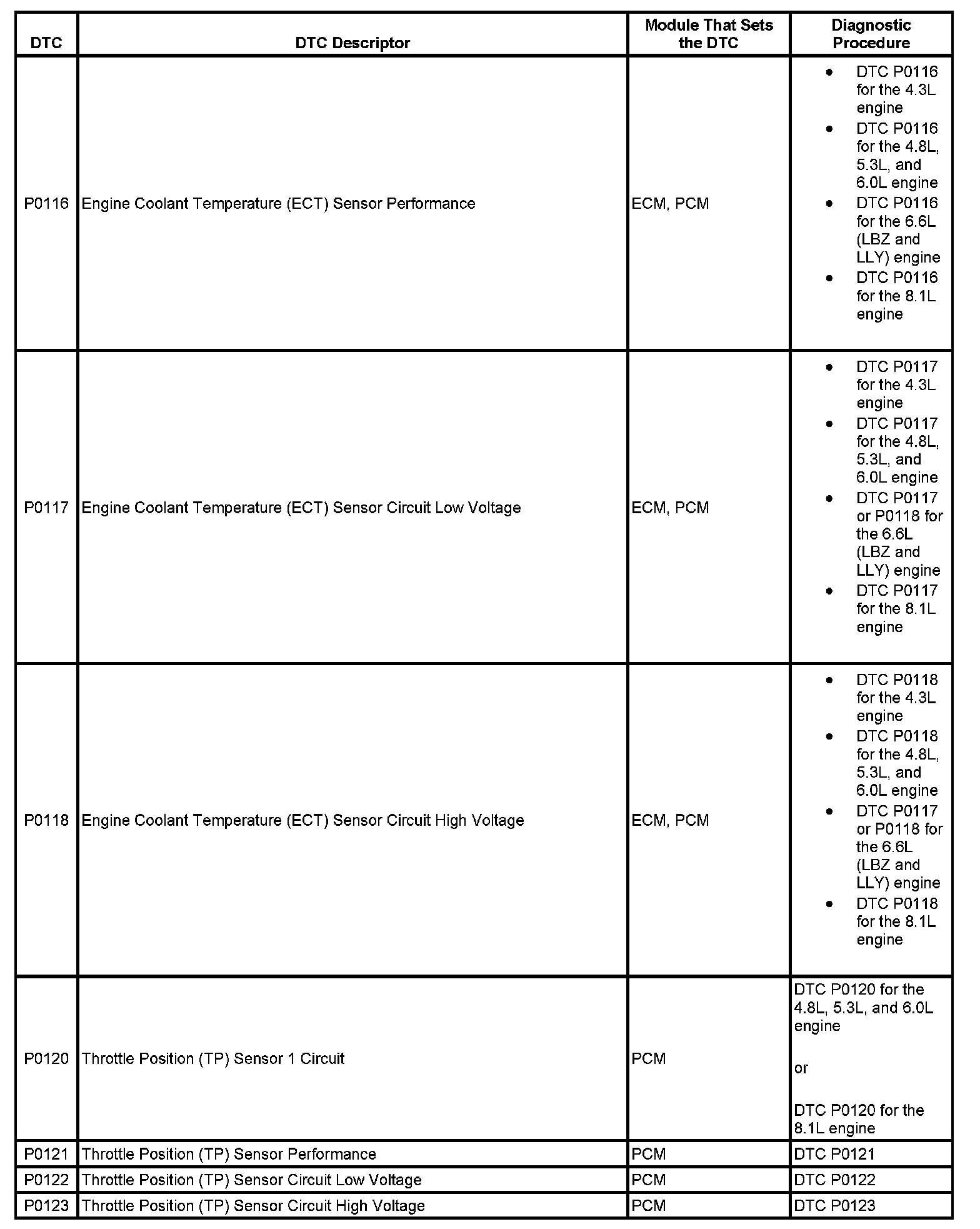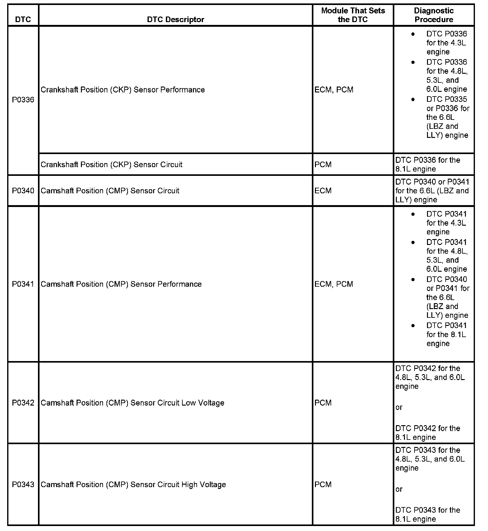 This master DTC list includes all applicable DTCs in alphanumeric order with descriptors.