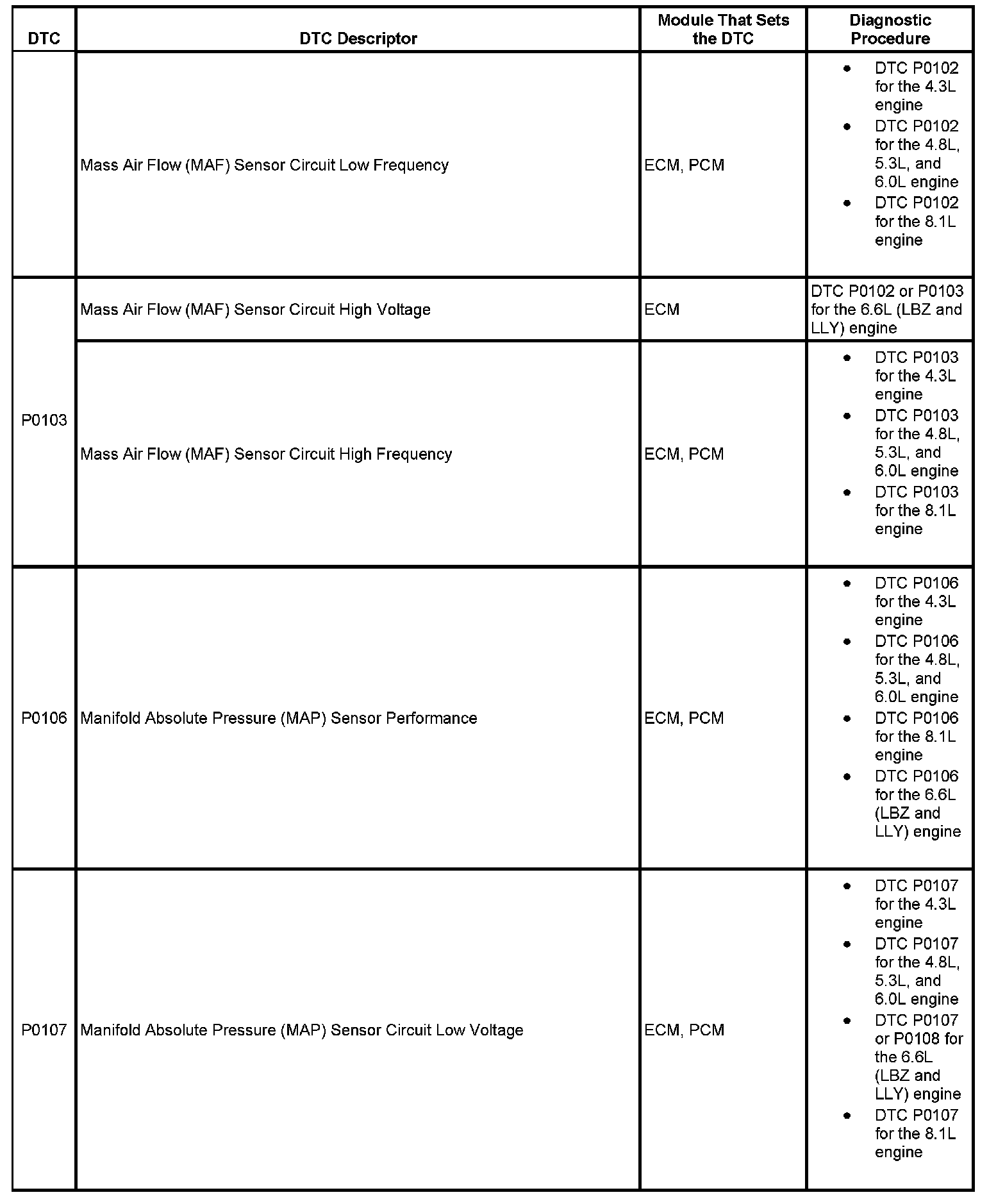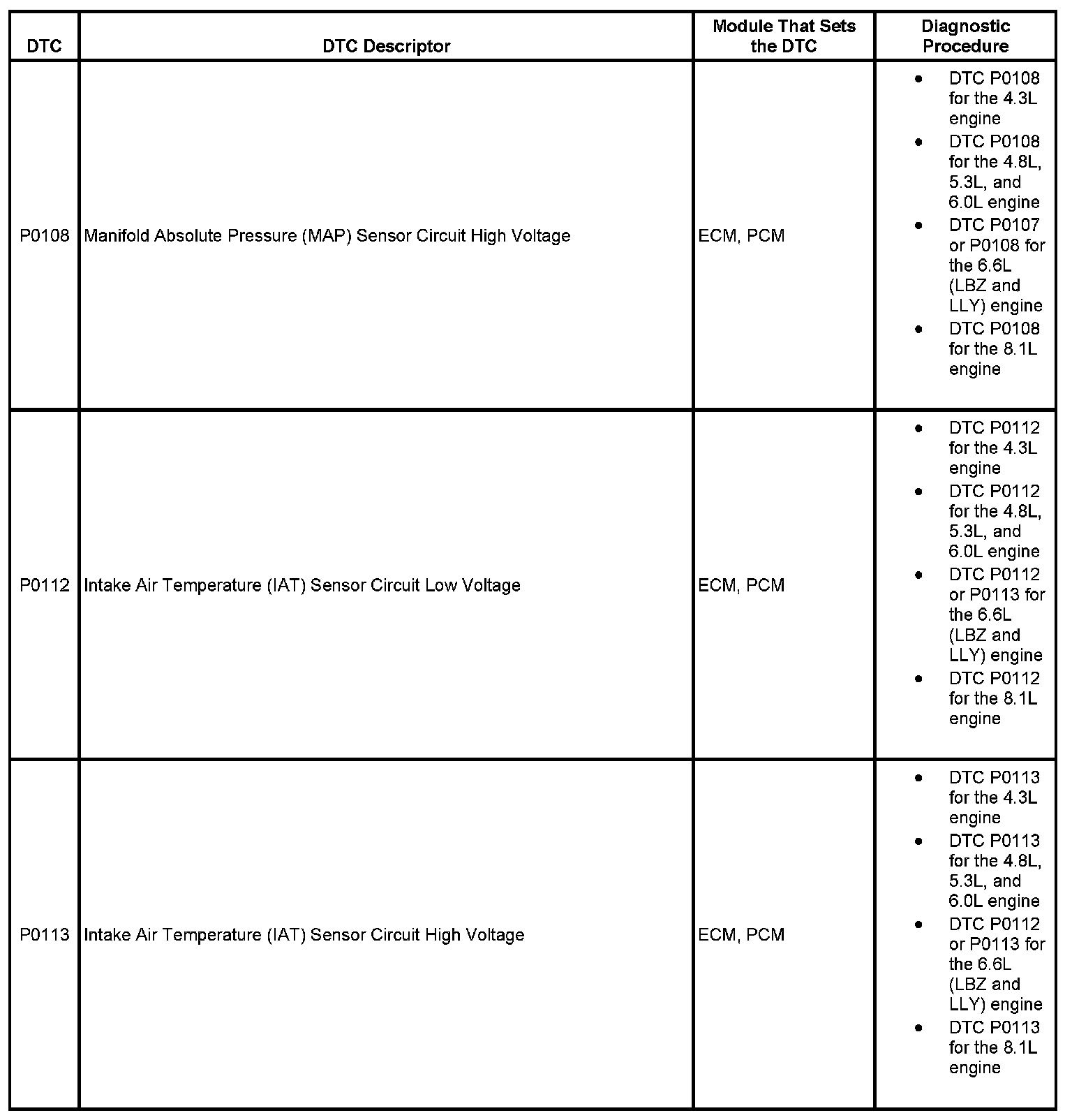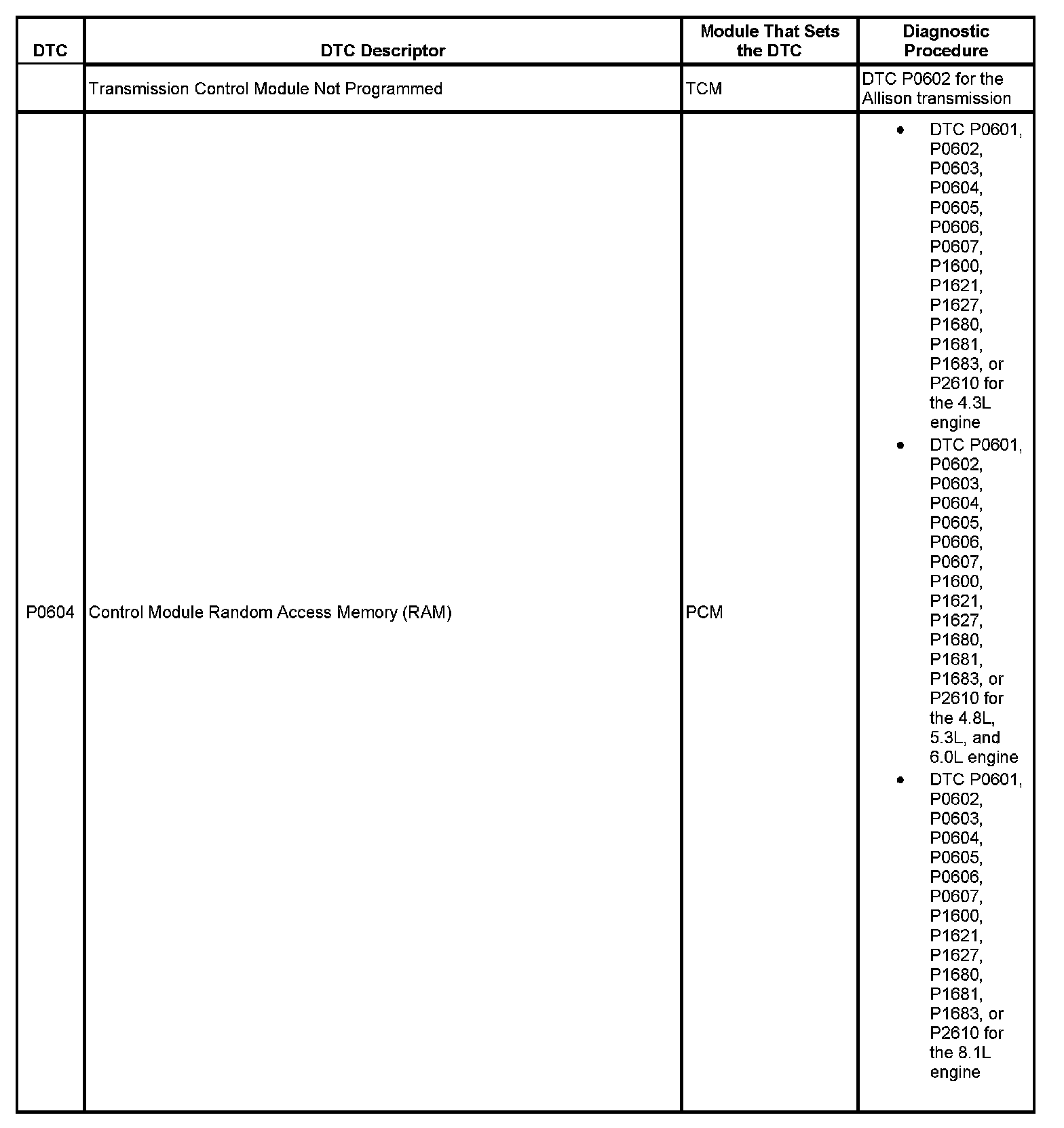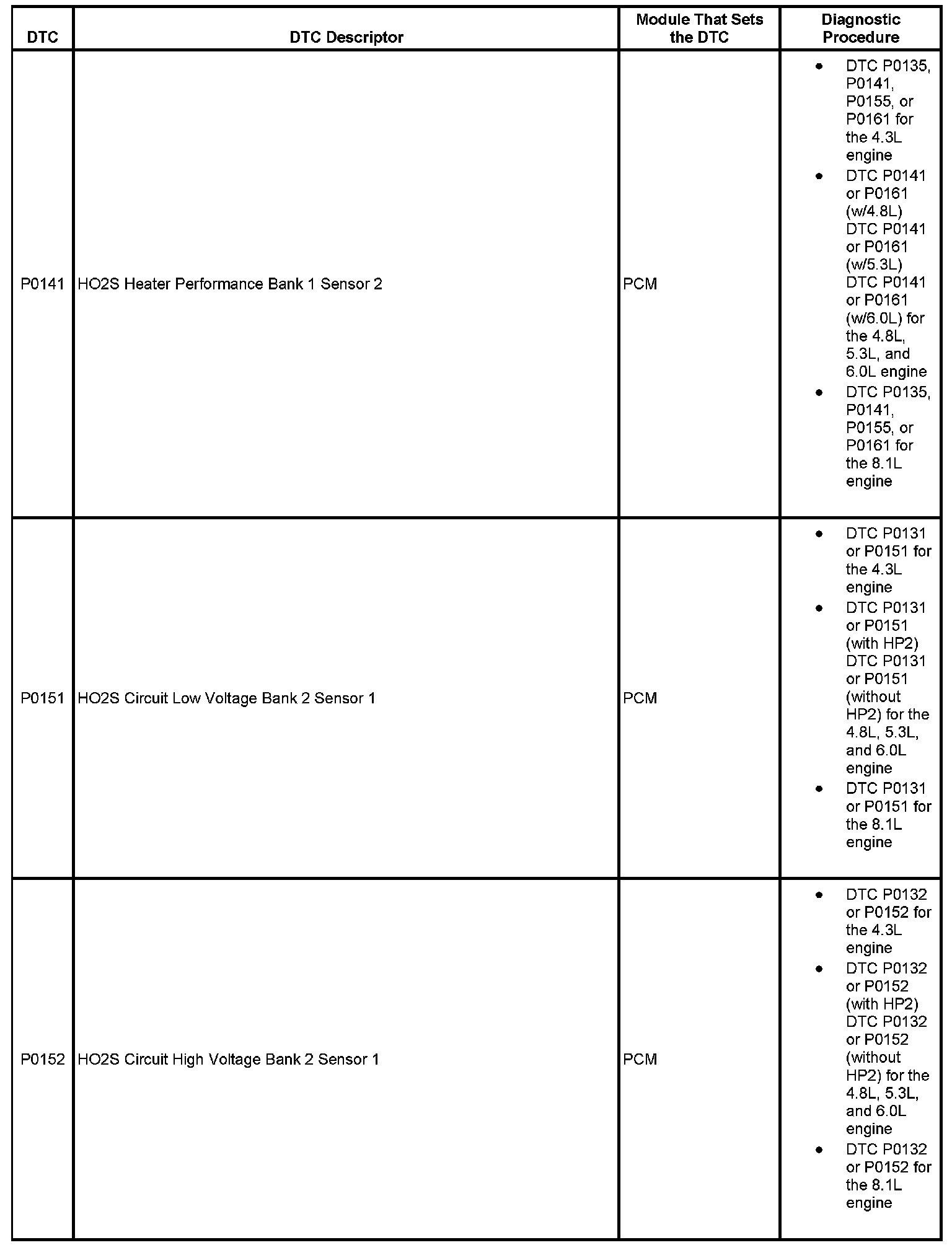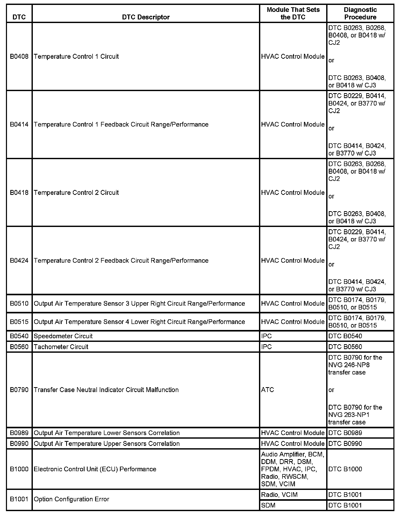 This master DTC list includes all applicable DTCs in alphanumeric order with descriptors.