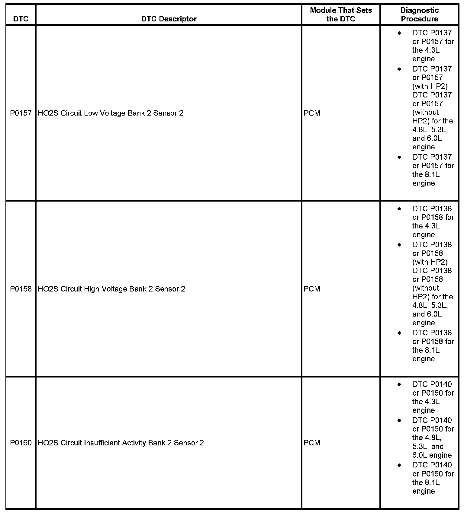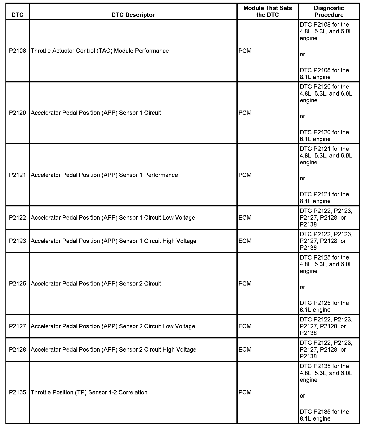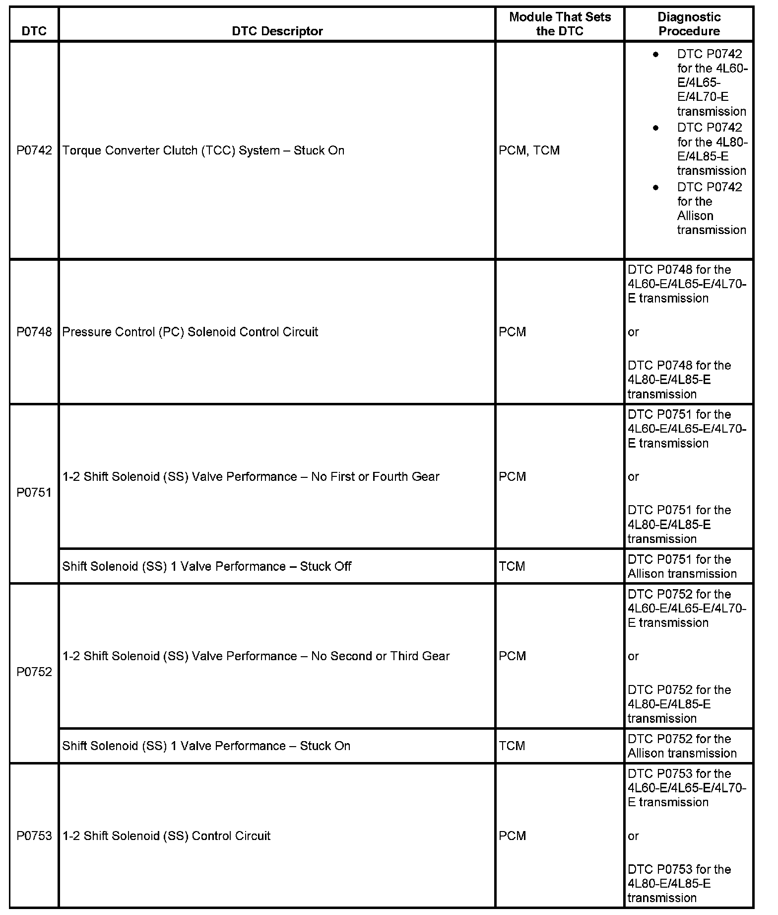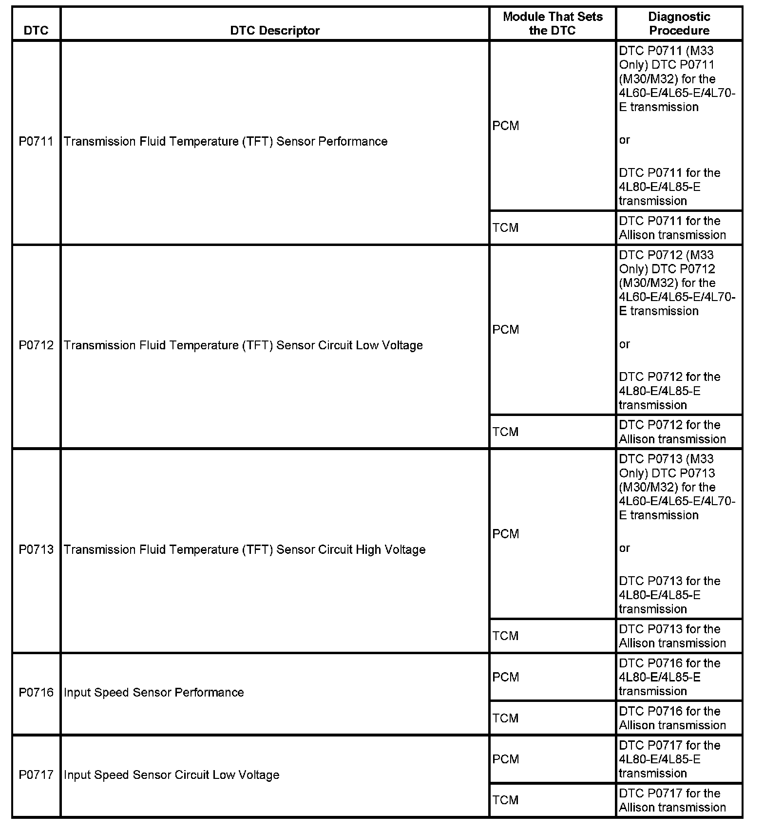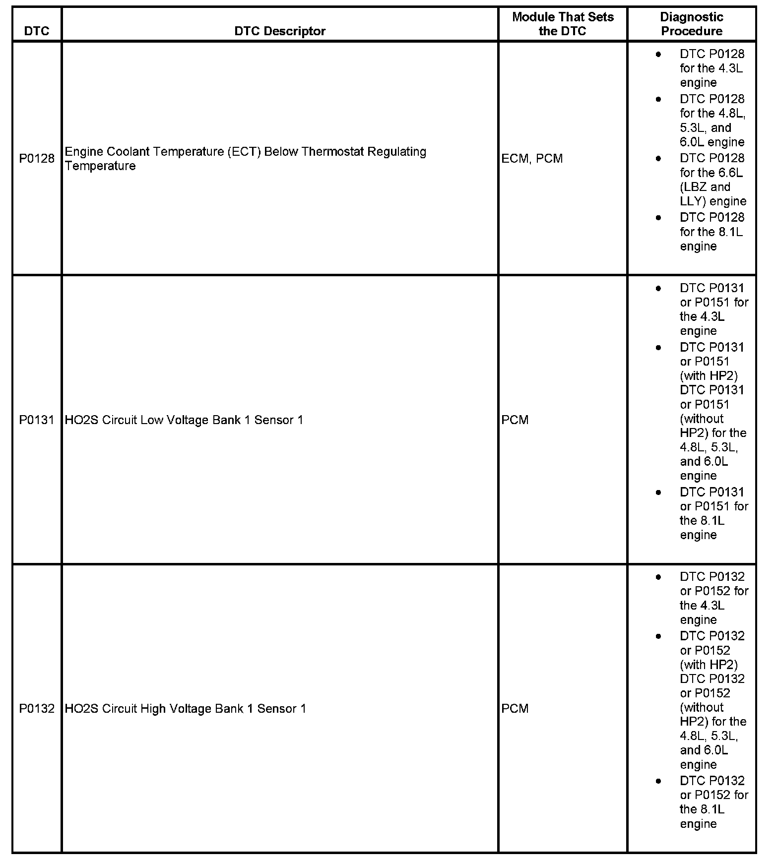 This master DTC list includes all applicable DTCs in alphanumeric order with descriptors.