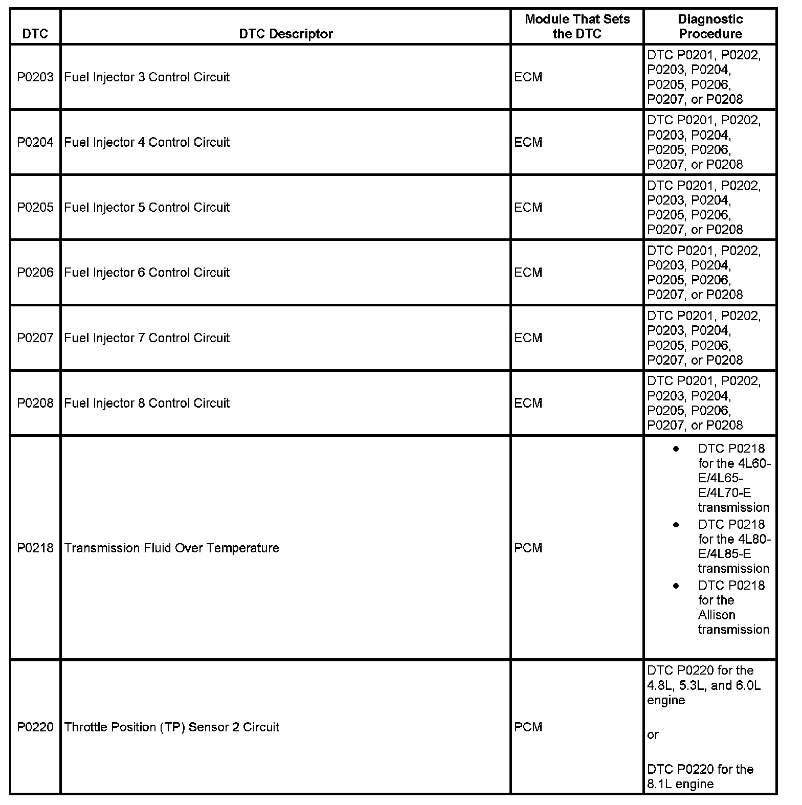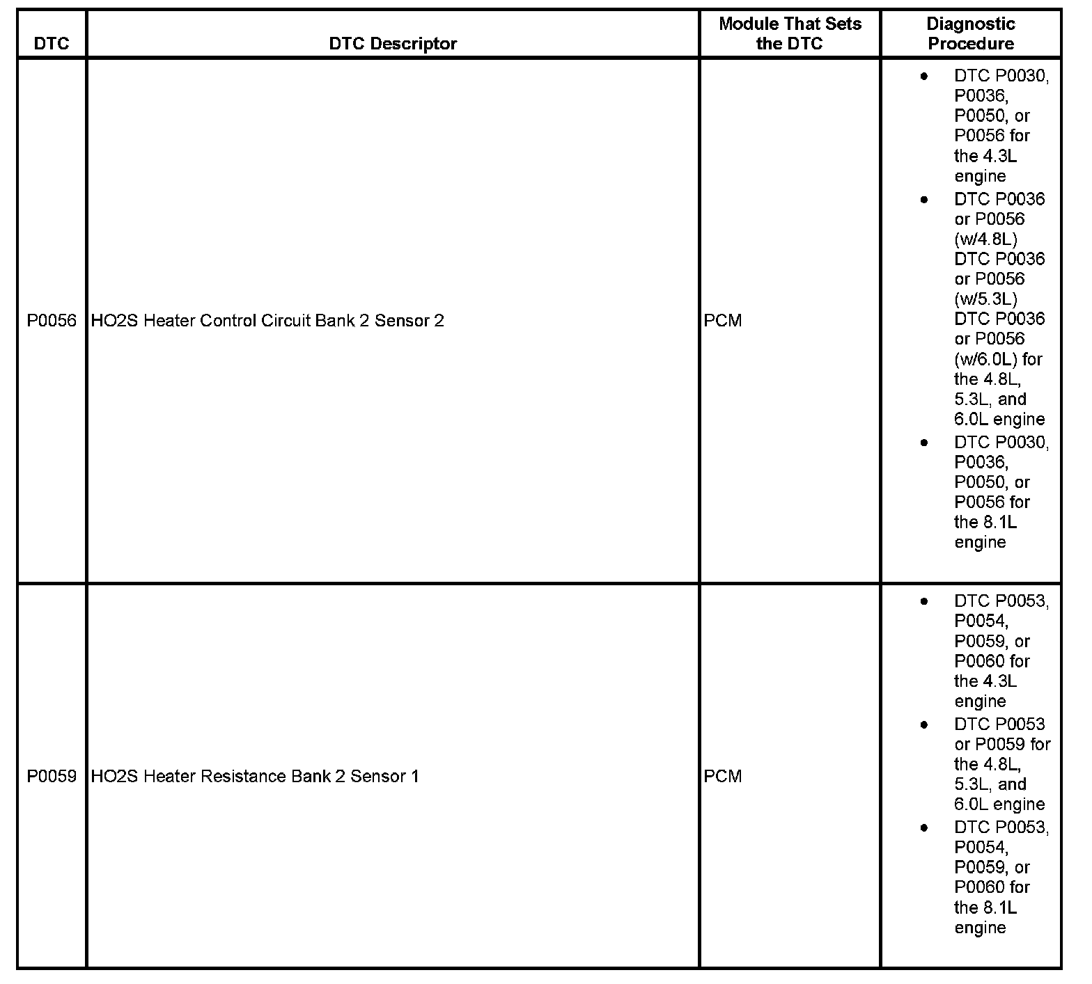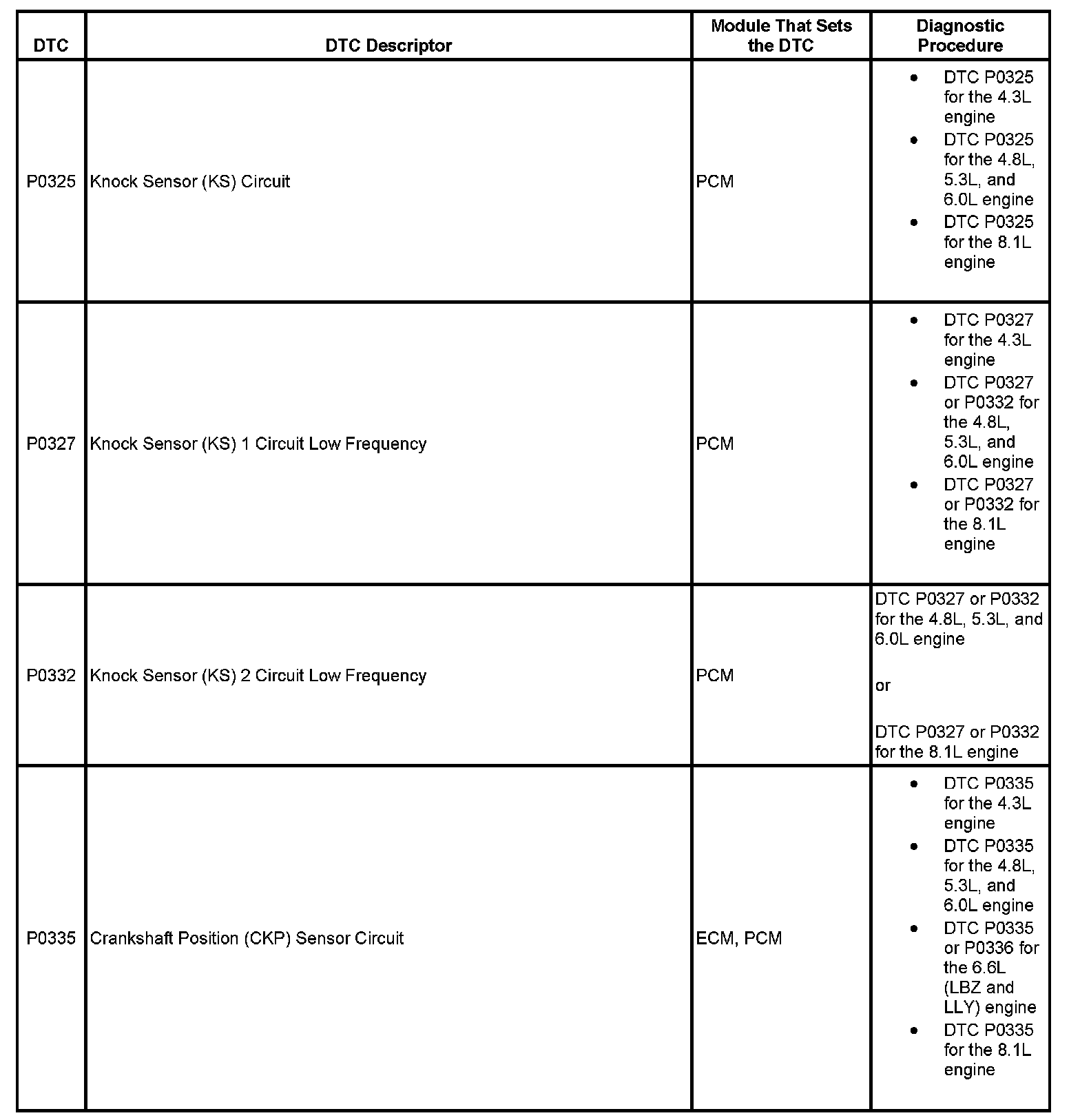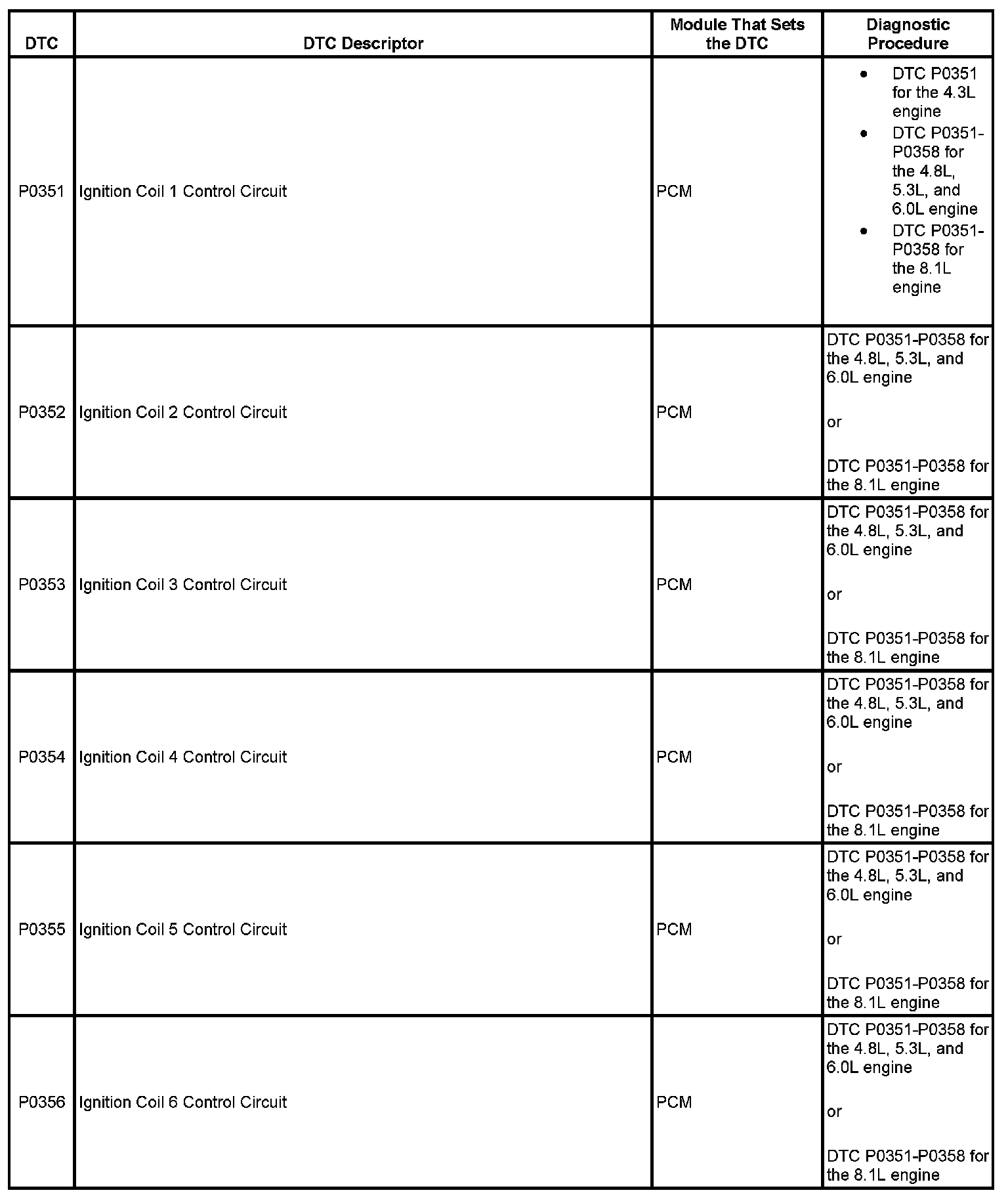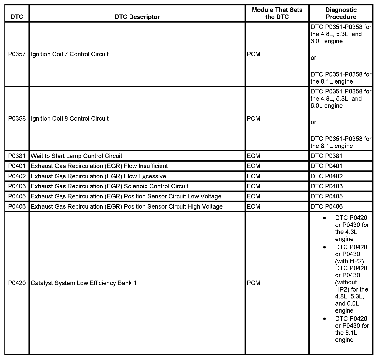 This master DTC list includes all applicable DTCs in alphanumeric order with descriptors.