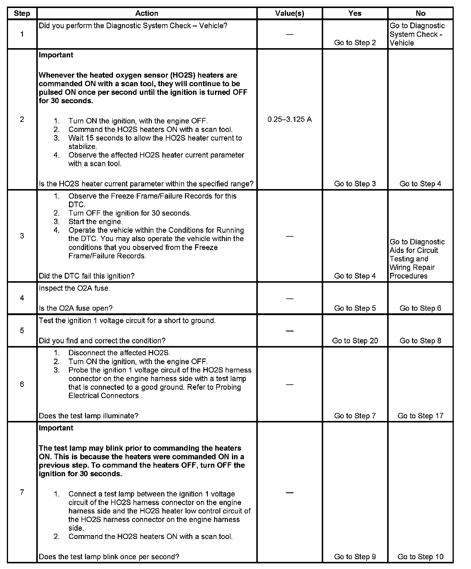 The number below refers to the step number on the diagnostic table.