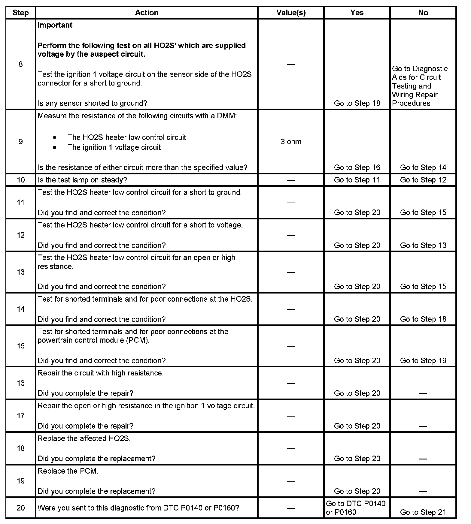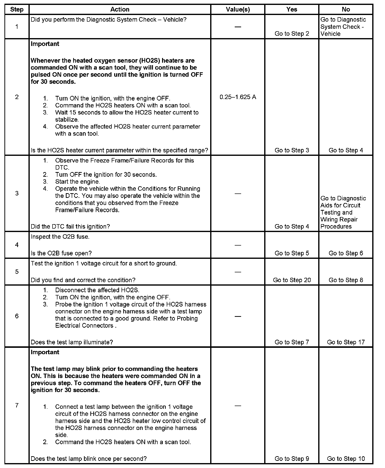 - The PCM detects that the affected HO2S Heater current parameter is greater than 1.625 amps or less than 0.25 amp.