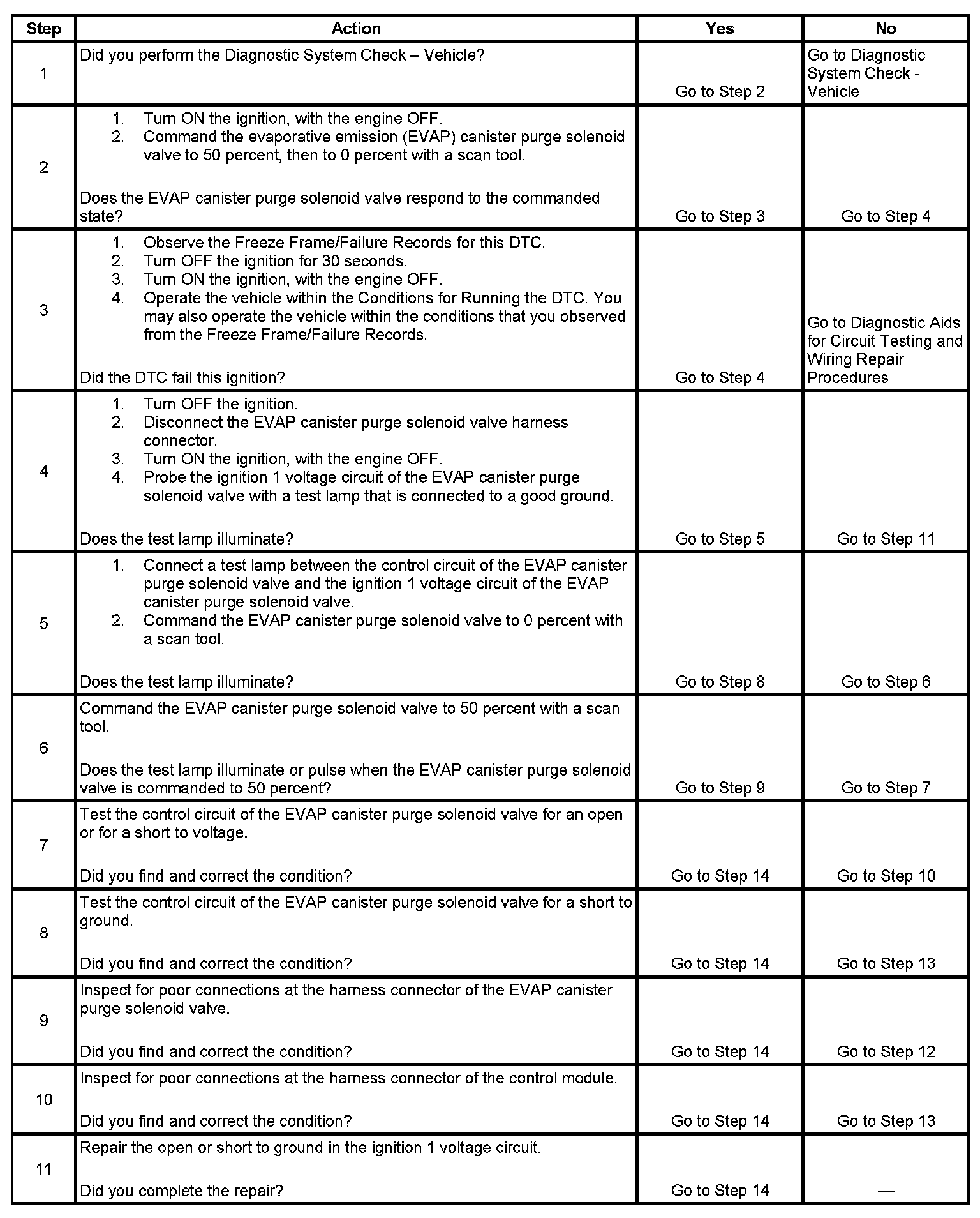 6. This step tests if a ground is constantly being applied to the EVAP canister purge solenoid valve.