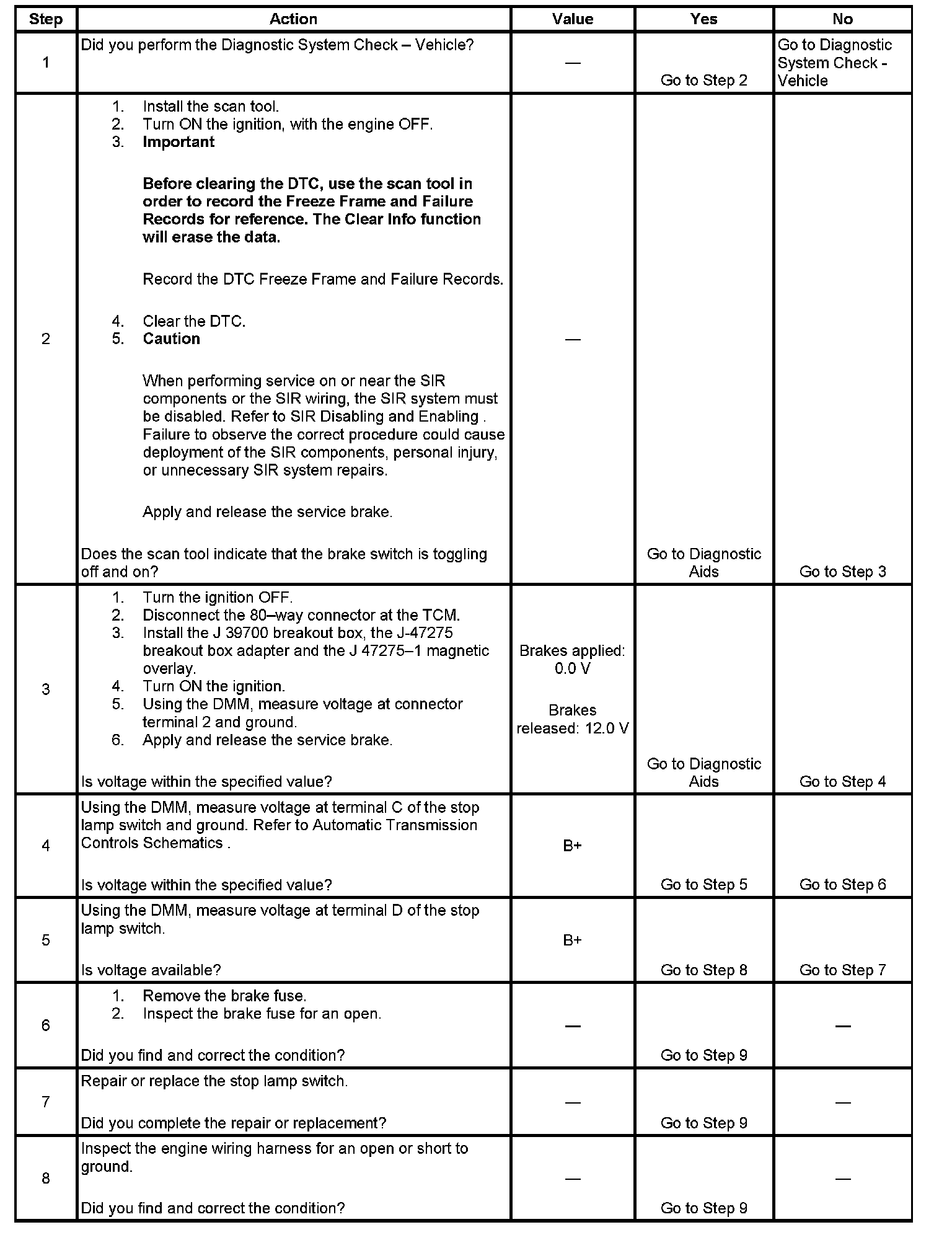 2. This step tests brake switch status.