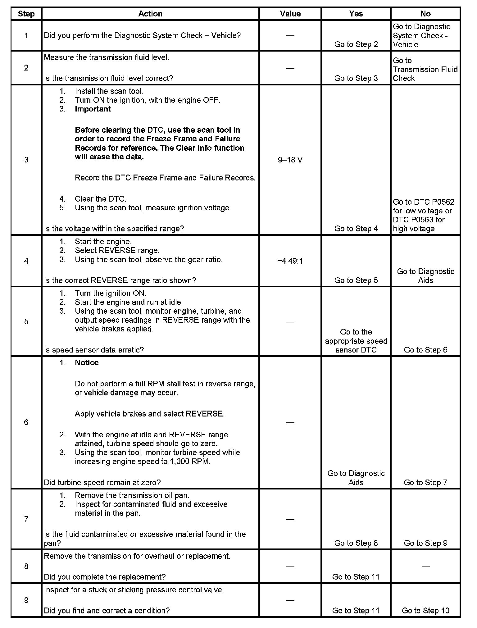 ^ Incorrect ratio code could indicate a hydraulically failed solenoid. Observe DTC information for specific solenoid.