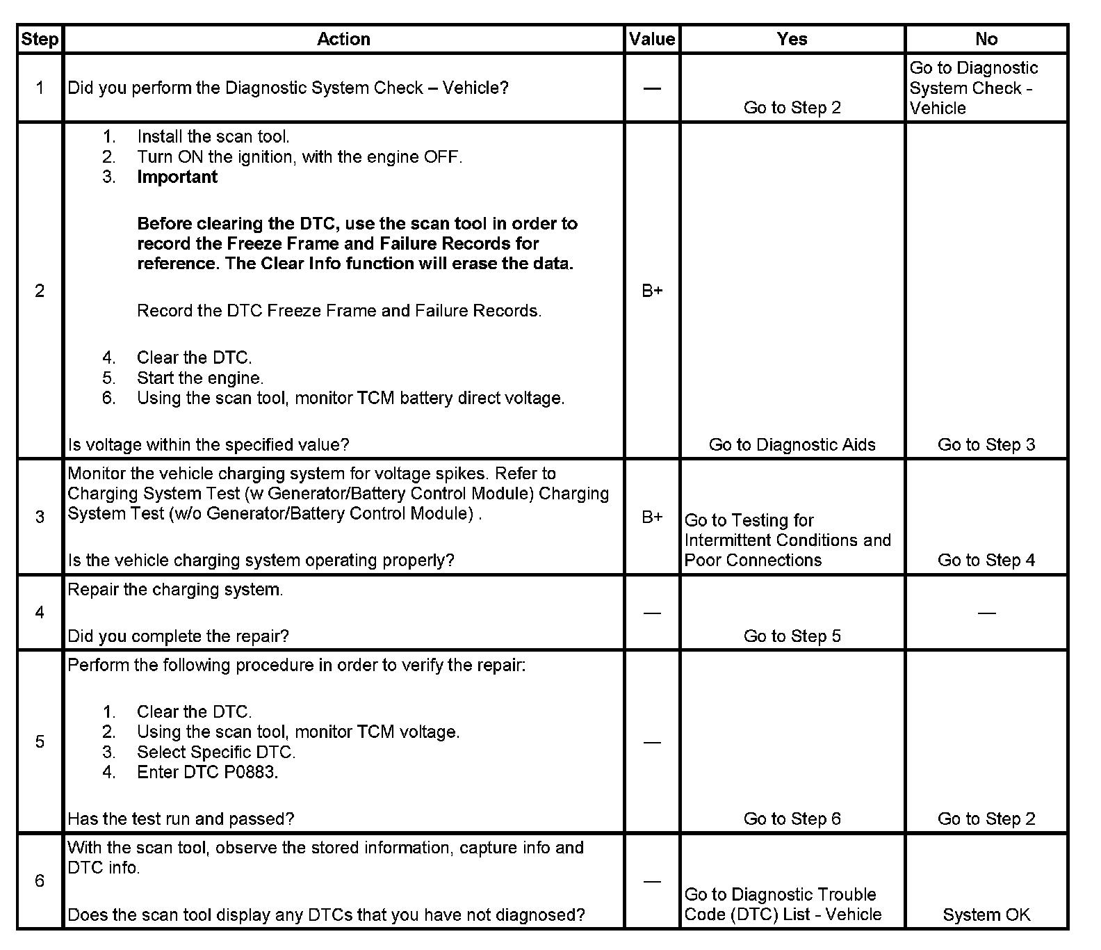 DTC P0883 sets when the TCM detects battery direct voltage greater than 18 volts for 6 out of 10 seconds.