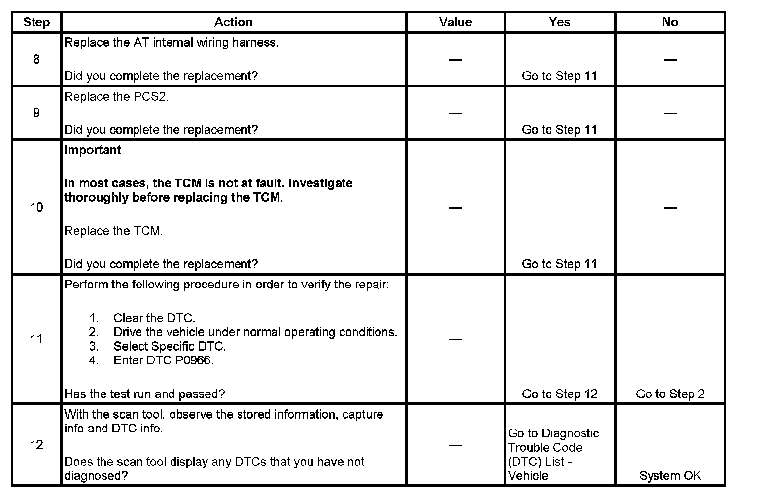 DTC P0966 sets when the TCM detects a short to ground on the PCS2 circuit for greater than 2 seconds.