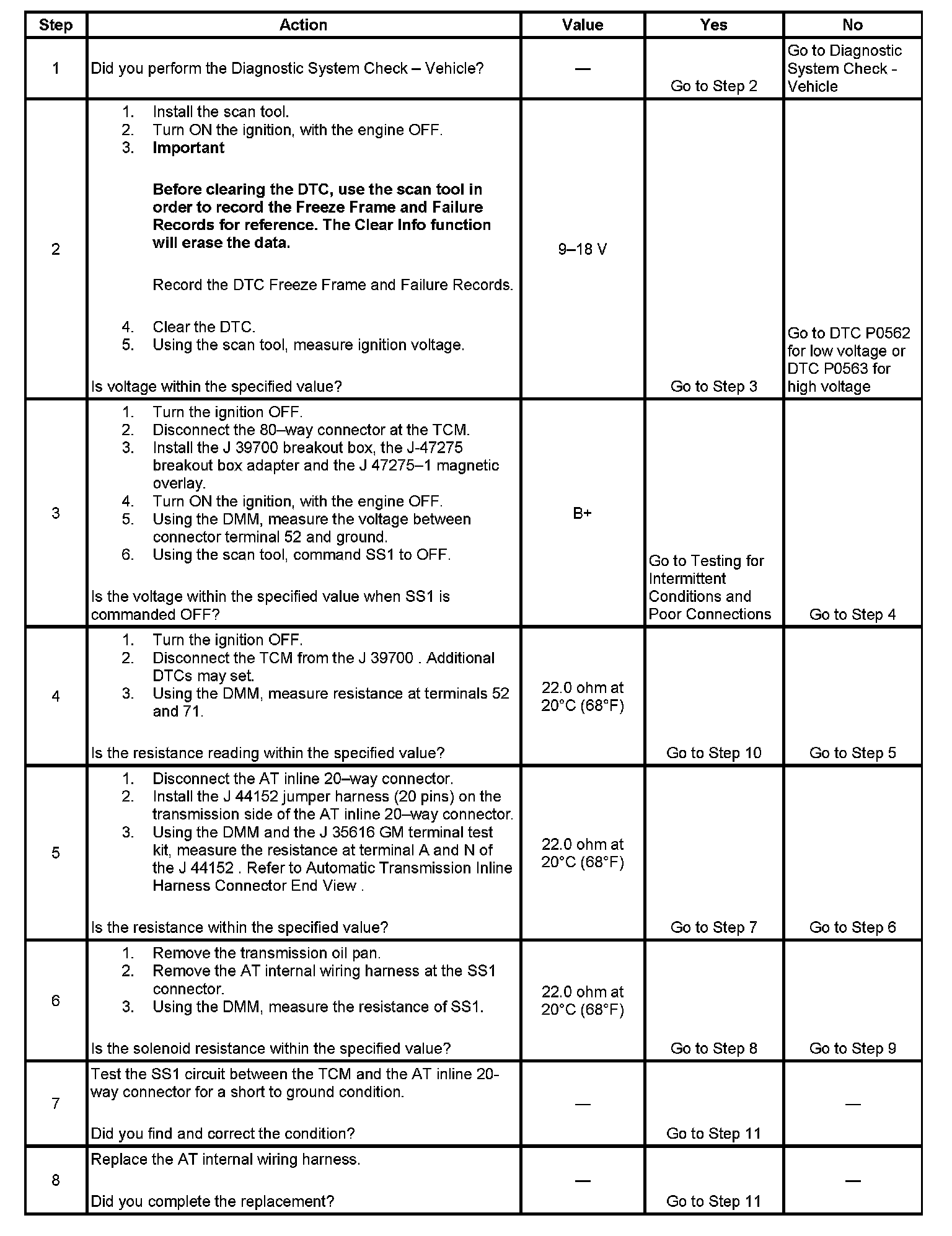 DTC P0973 Shift Solenoid 1 (SS1) Control Circuit Low