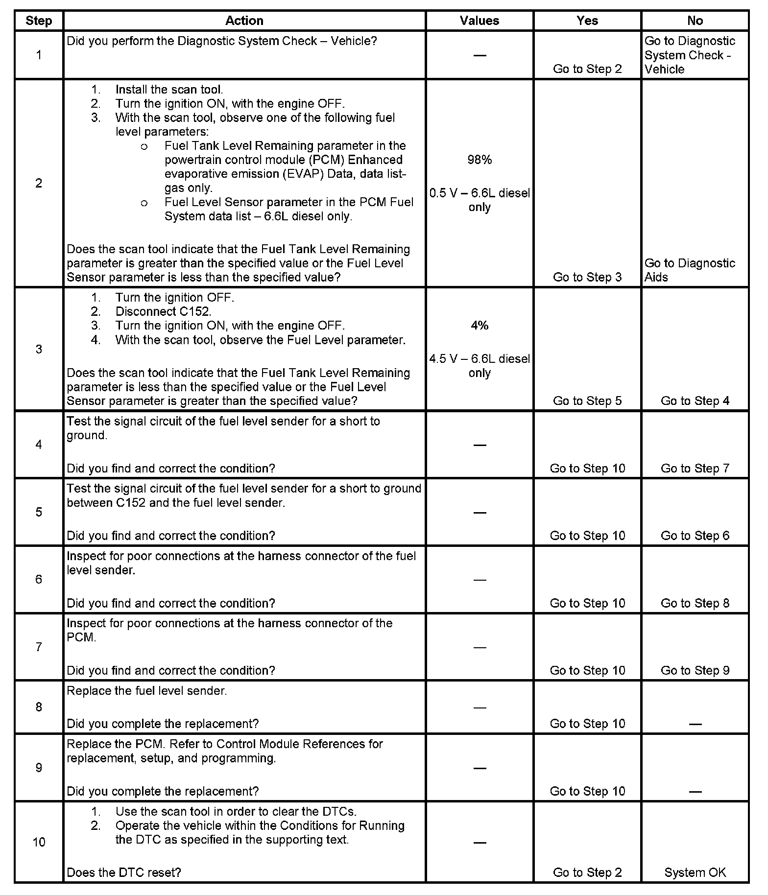 This diagnostic tests for a lower than normal secondary fuel level sender signal.