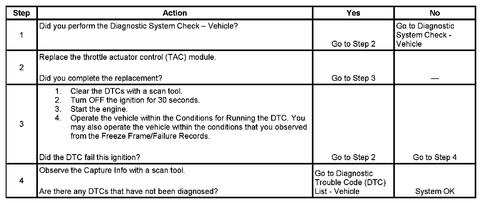 - When the TAC module detects a condition within the TAC system, more than one TAC system related DTC may set. This is due to the many redundant tests run continuously on this system. Locating and repairing an individual condition may correct more than one DTC. Disconnecting components during testing may set additional DTCs. Remember this if you review the stored information in Capture Info.