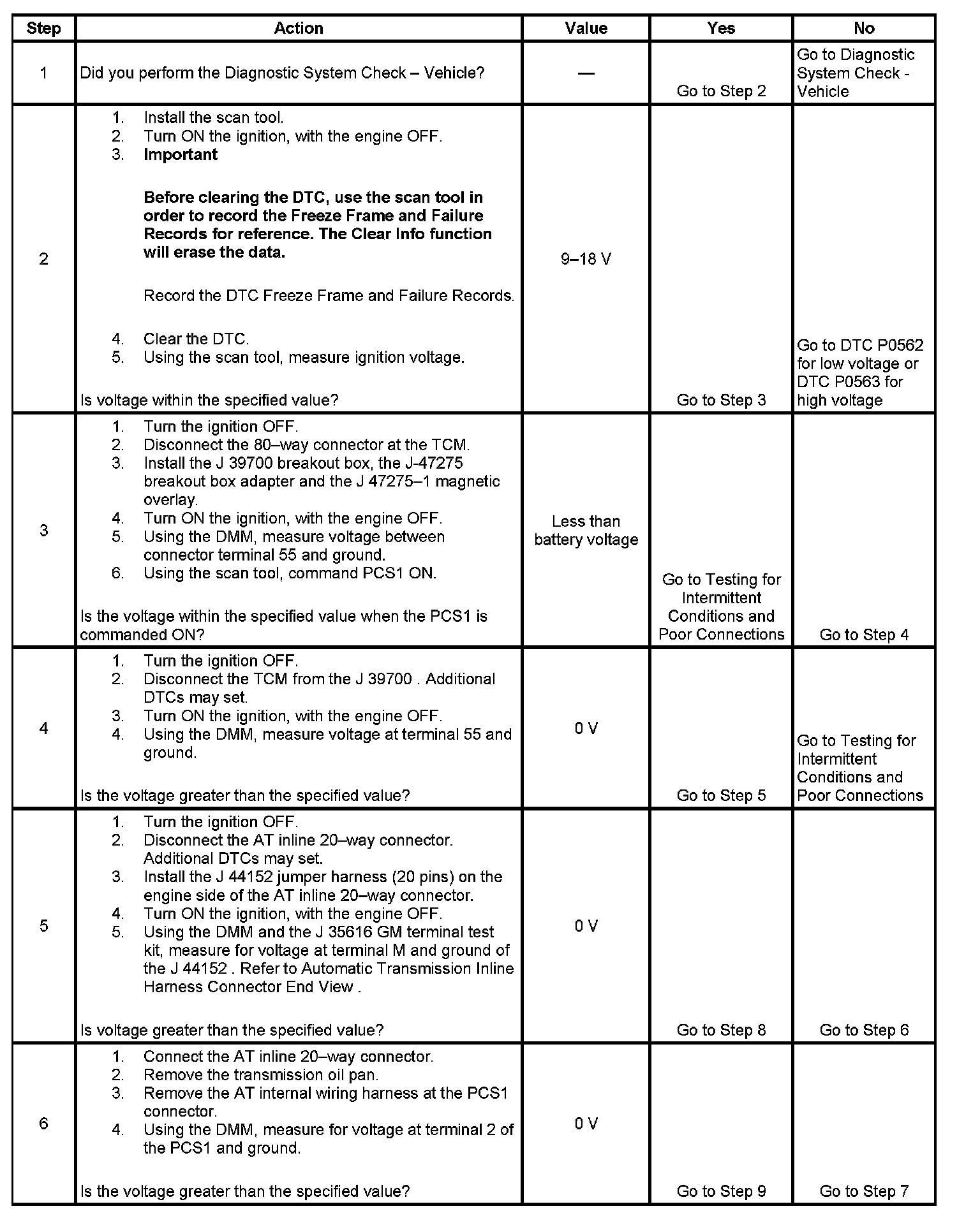 DTC P2730 Pressure Control Solenoid 1 (PCS1) Control Circuit High (A)