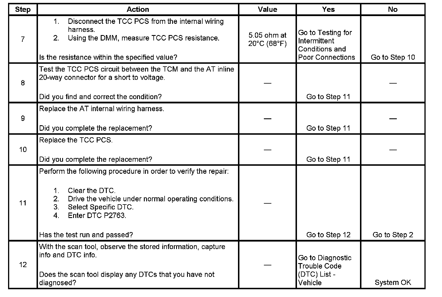 DTC P2763 sets when the TCM detects a short to voltage on the TCC PCS return circuit for greater than 6 seconds.