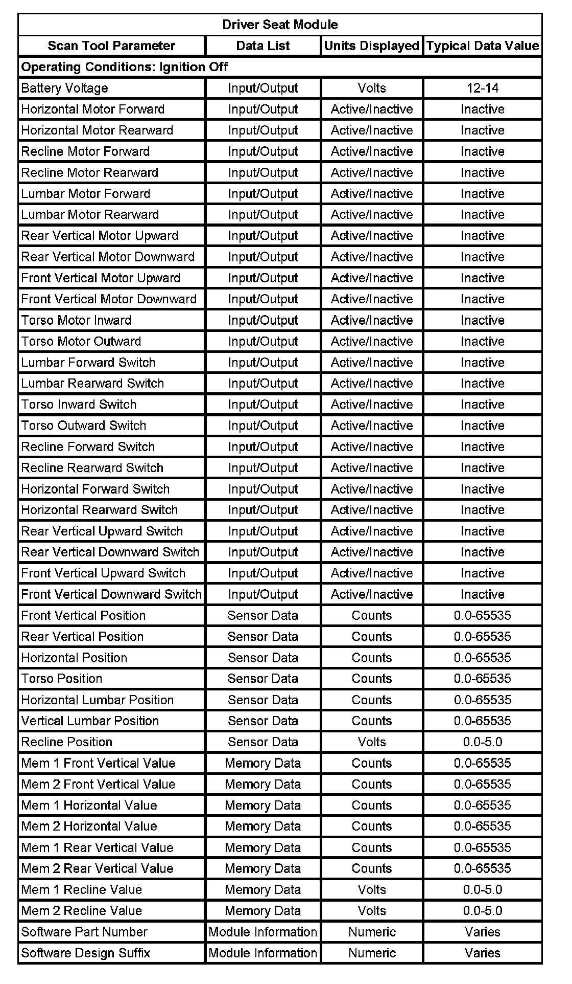 Driver Seat Module: